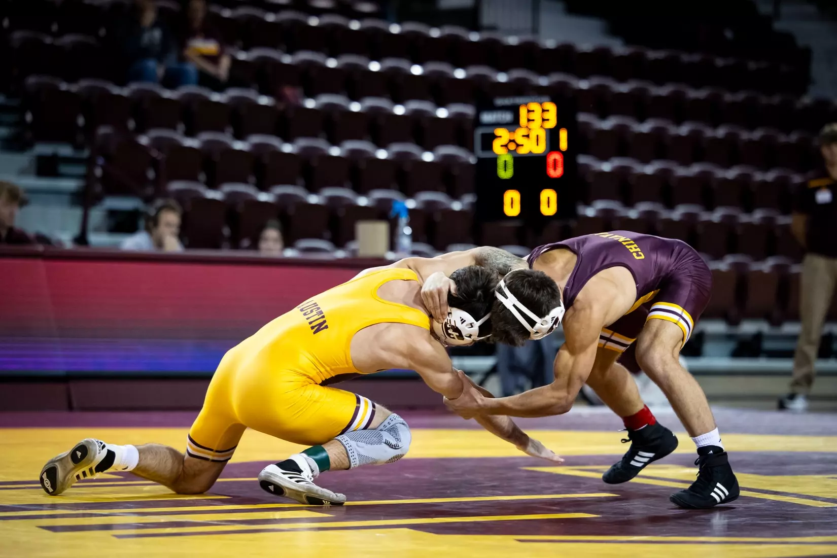 133: Andrew Austin (G) dec. Cameron Chinavare 5-2, SV, Gold 3, Maroon 0
