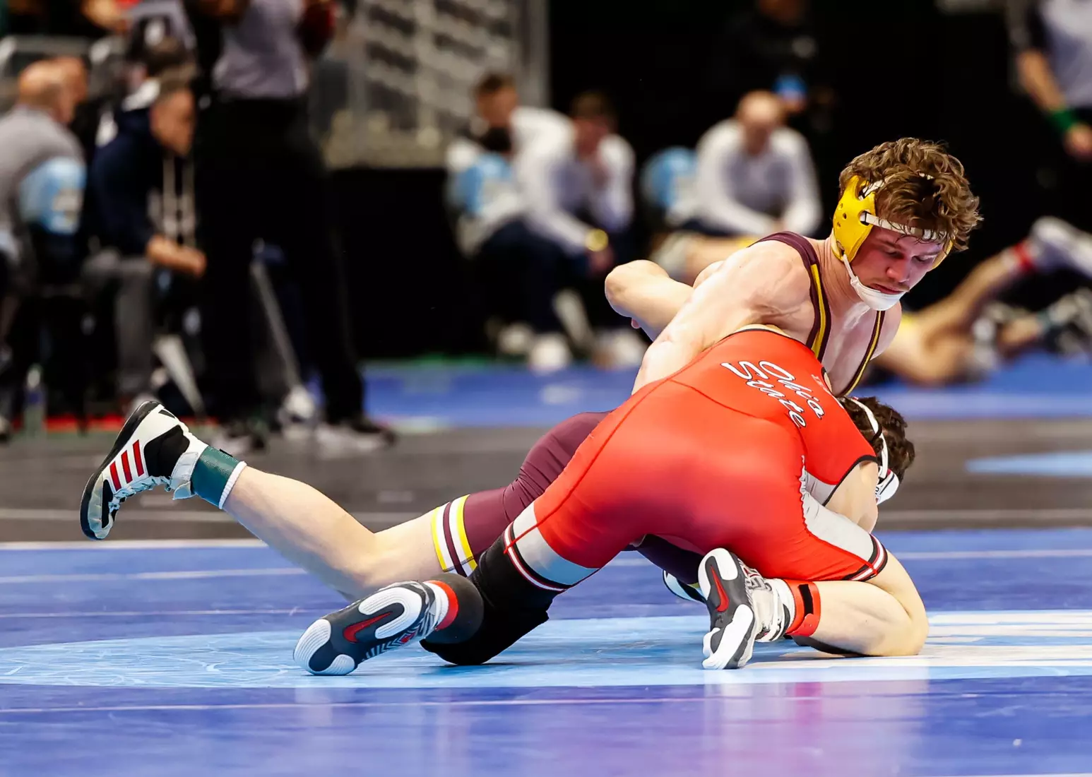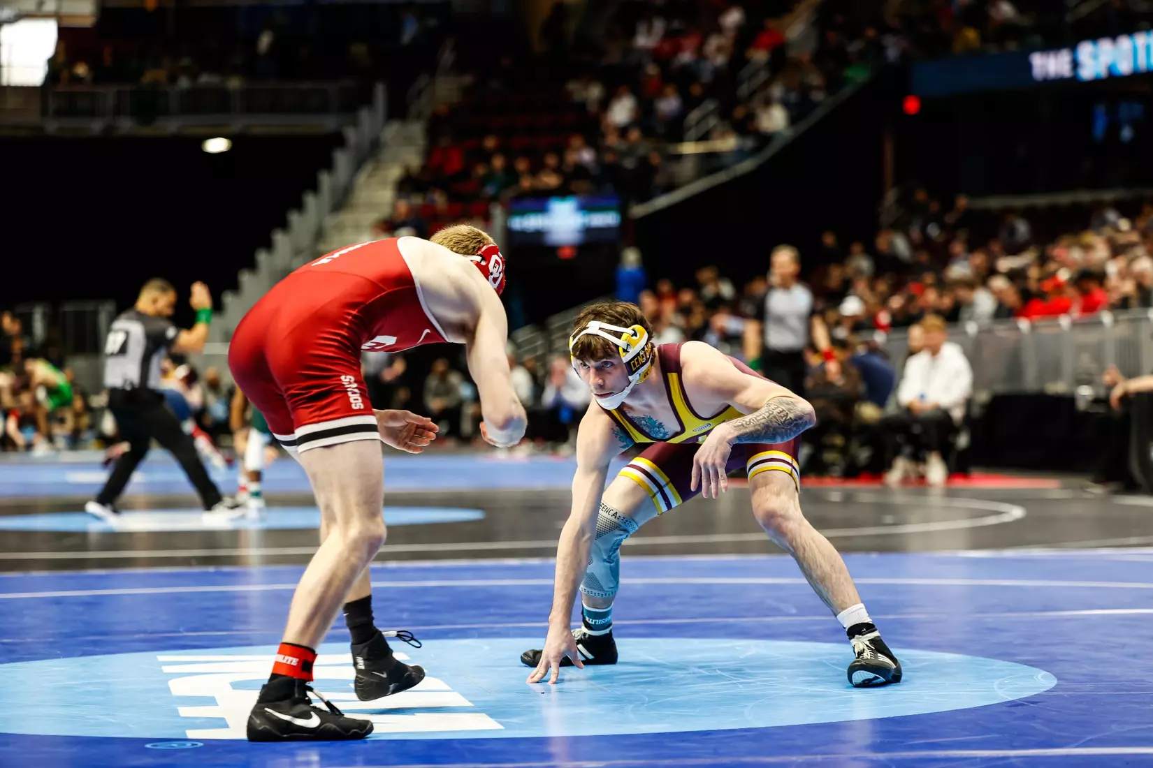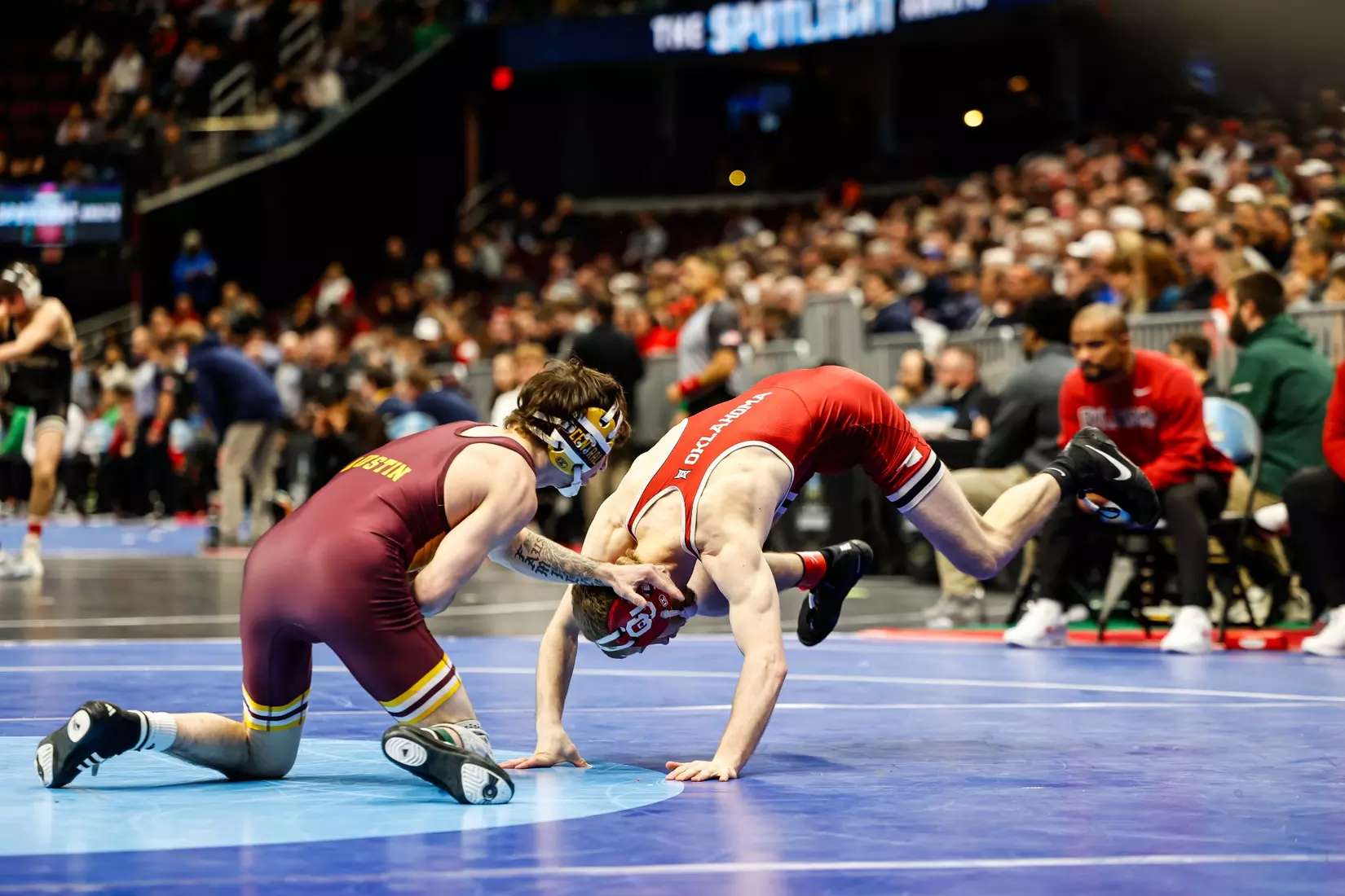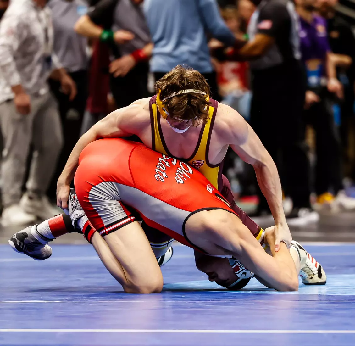 The tournament, which features 333 wrestlers in 10 weight classes, continues through Friday concludes with the championship matches on Saturday night. The top eight wrestlers in each weight class earn All-America honors.