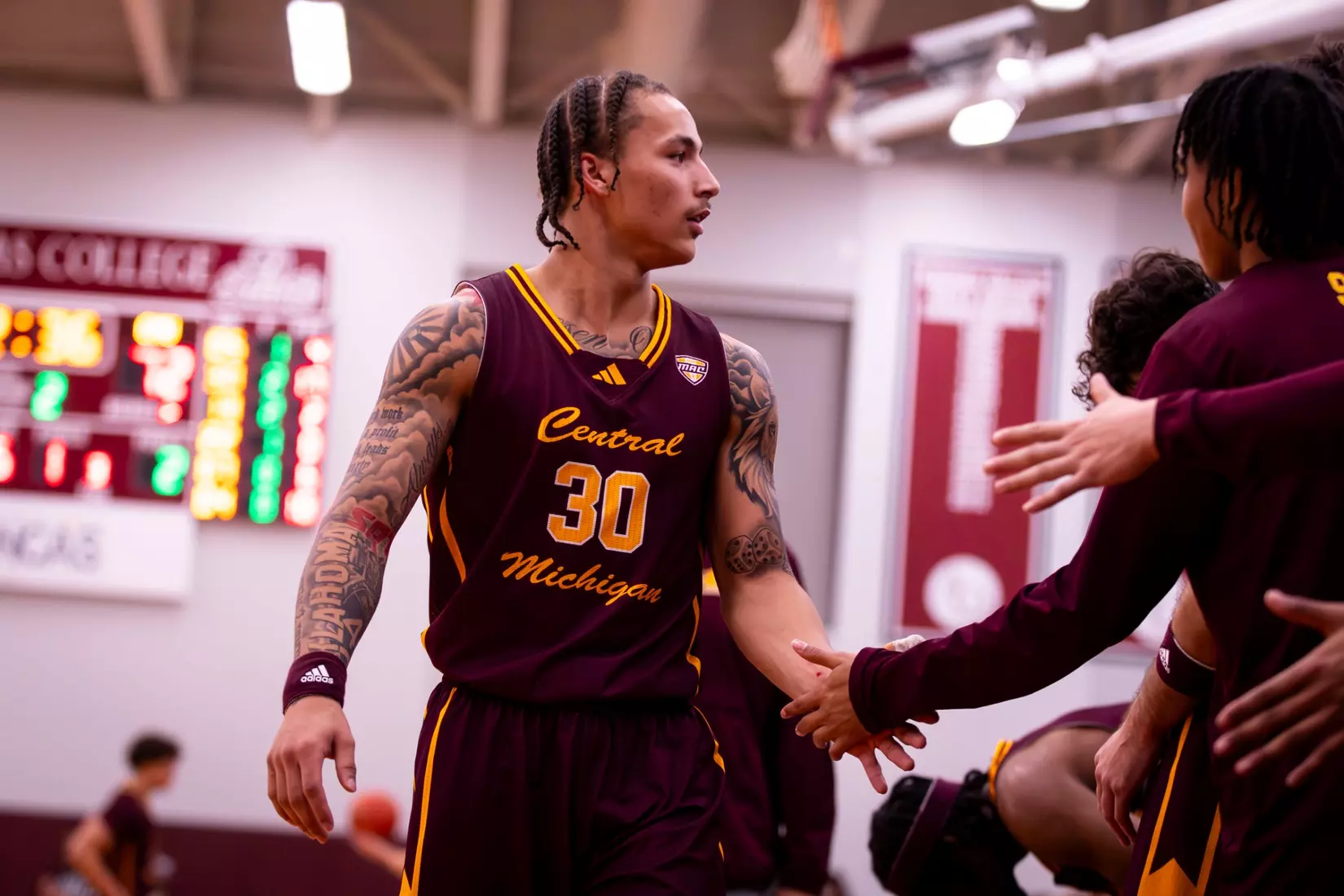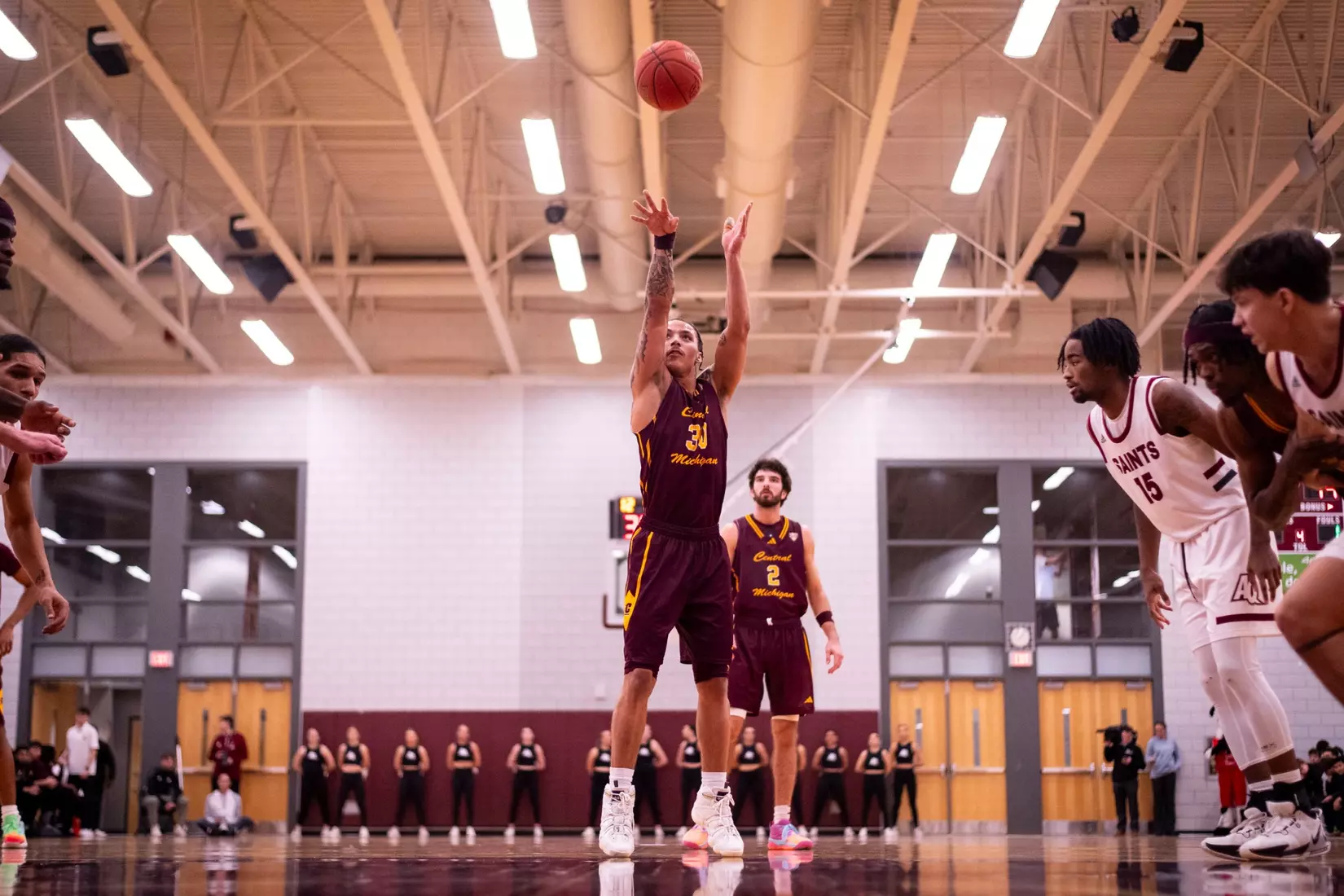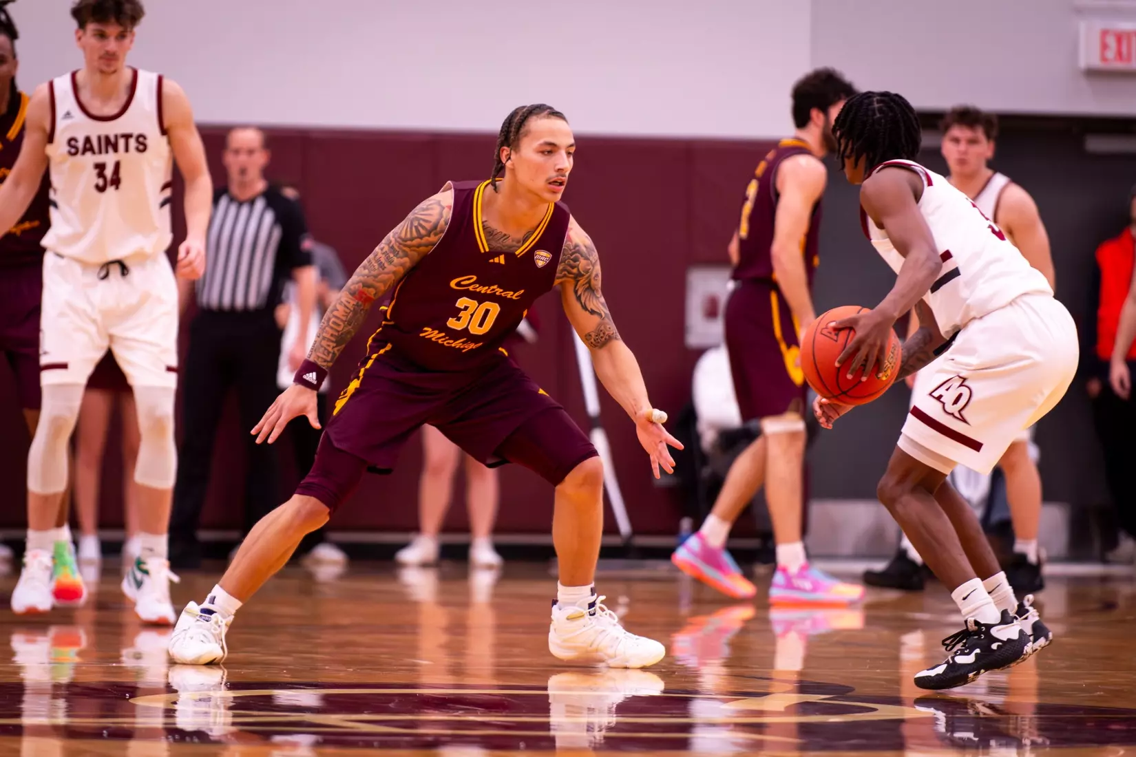 GRAND RAPIDS, Mich.—Grand Rapids native Kyler VanderJagt and point guard Anthony Pritchard led six double figure scorers as they both registered a game-high 18 points in leading Central Michigan to a 93-69 men's basketball win at Aquinas Thursday evening at the Sturrus Recreation Center.