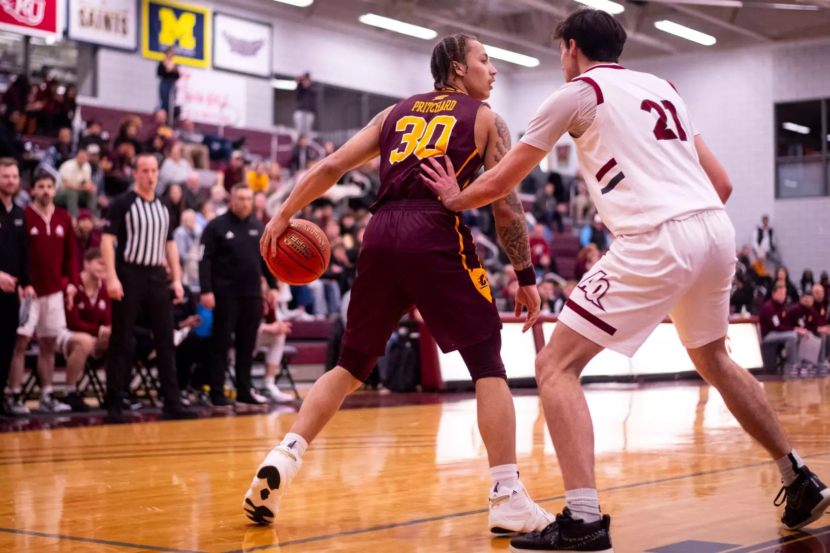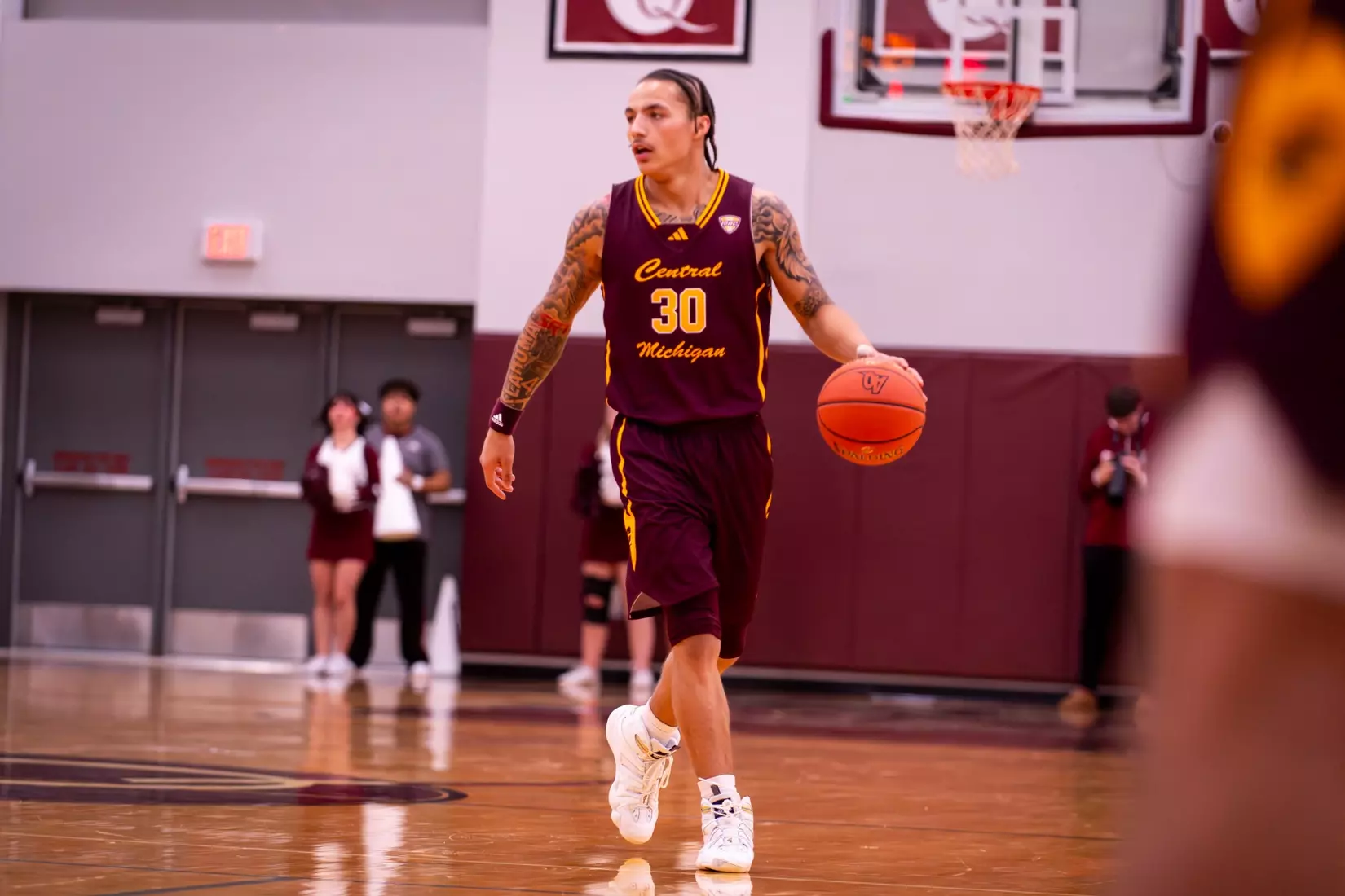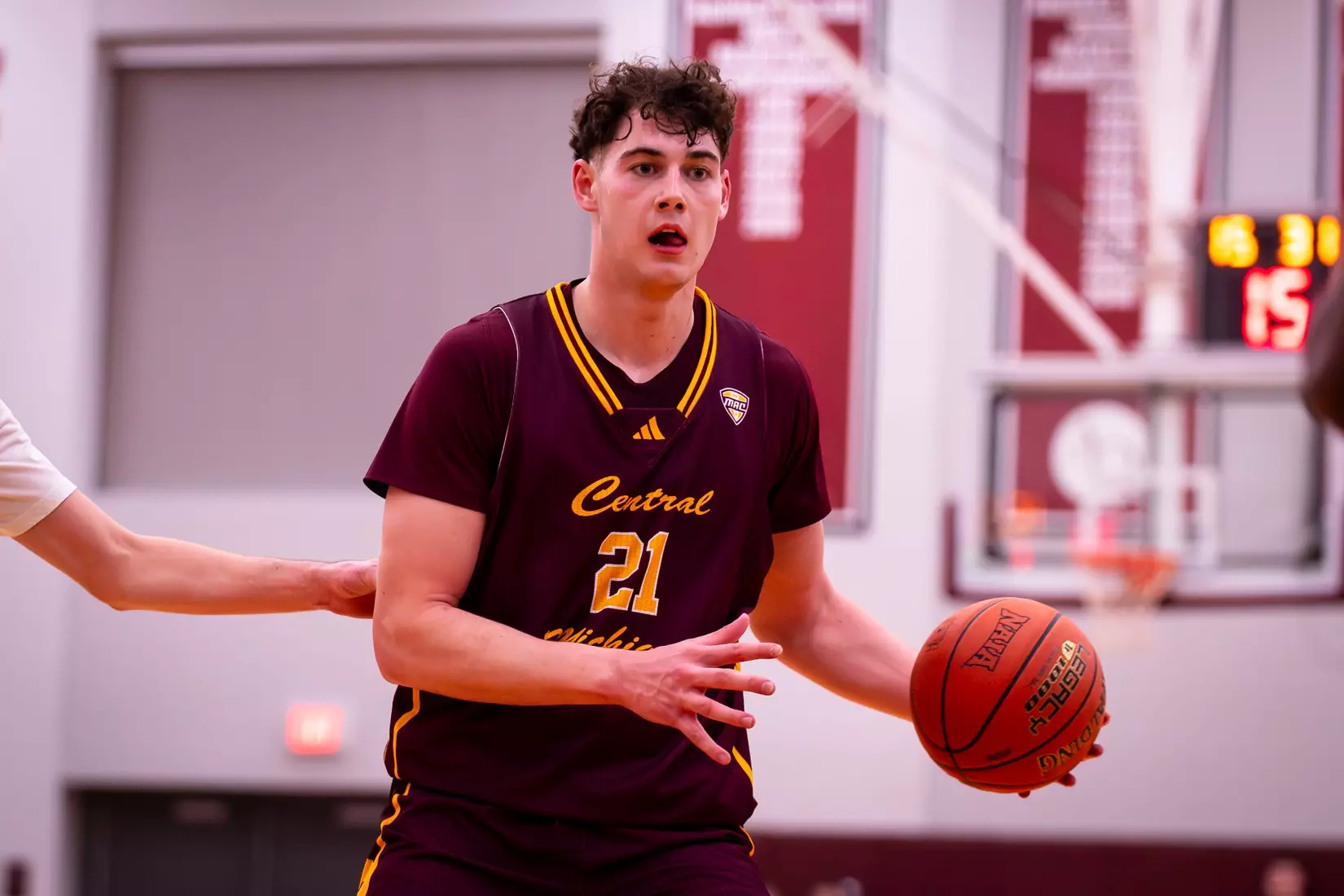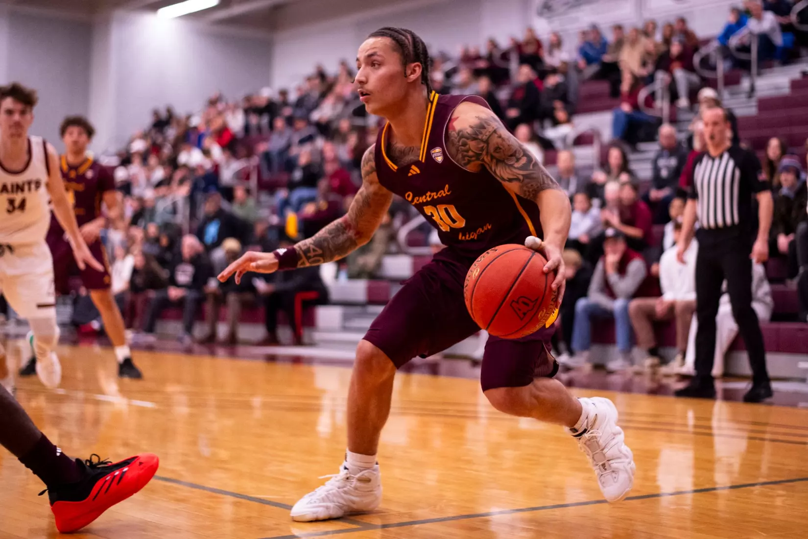 GRAND RAPIDS, Mich.—Grand Rapids native Kyler VanderJagt and point guard Anthony Pritchard led six double figure scorers as they both registered a game-high 18 points in leading Central Michigan to a 93-69 men's basketball win at Aquinas Thursday evening at the Sturrus Recreation Center.