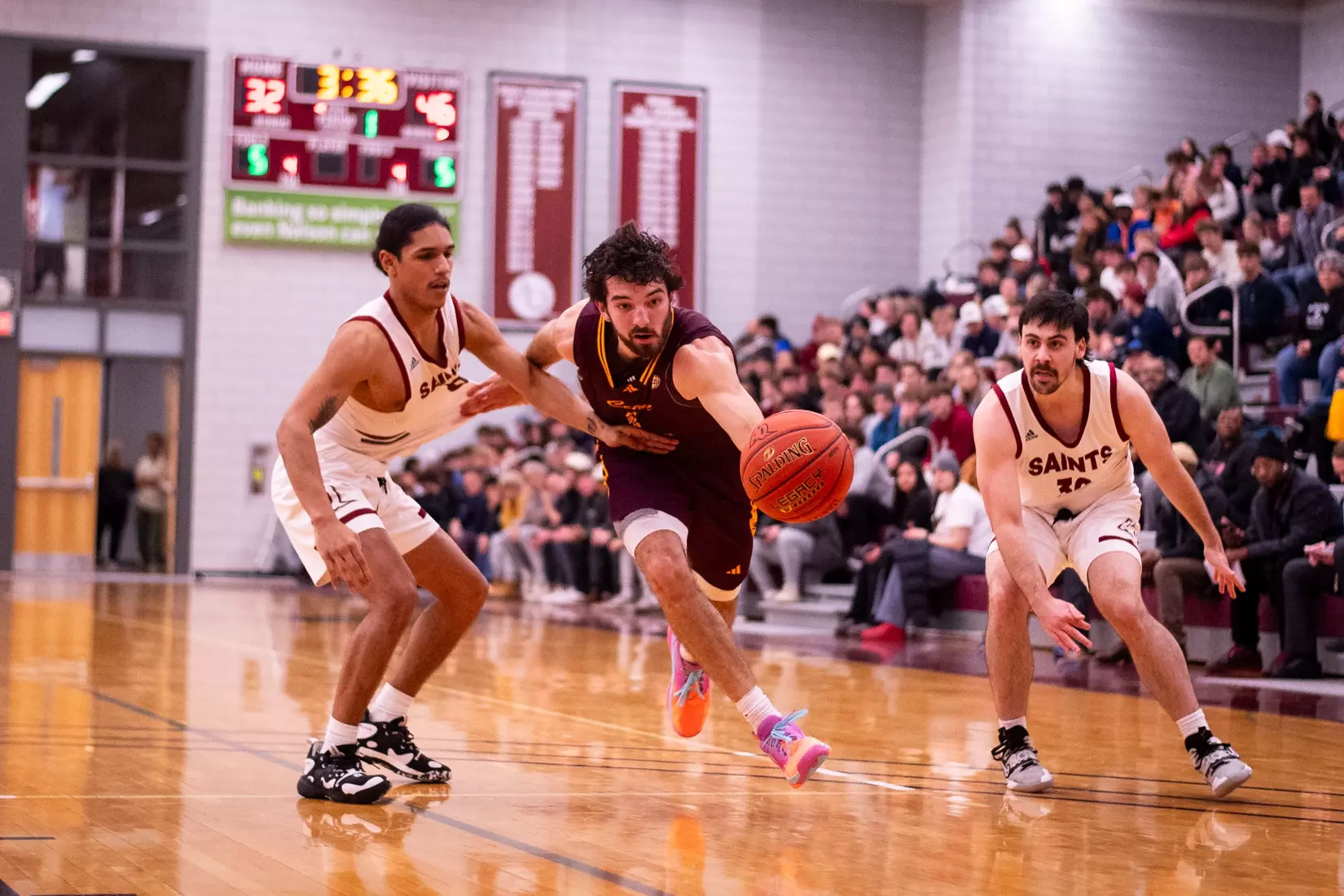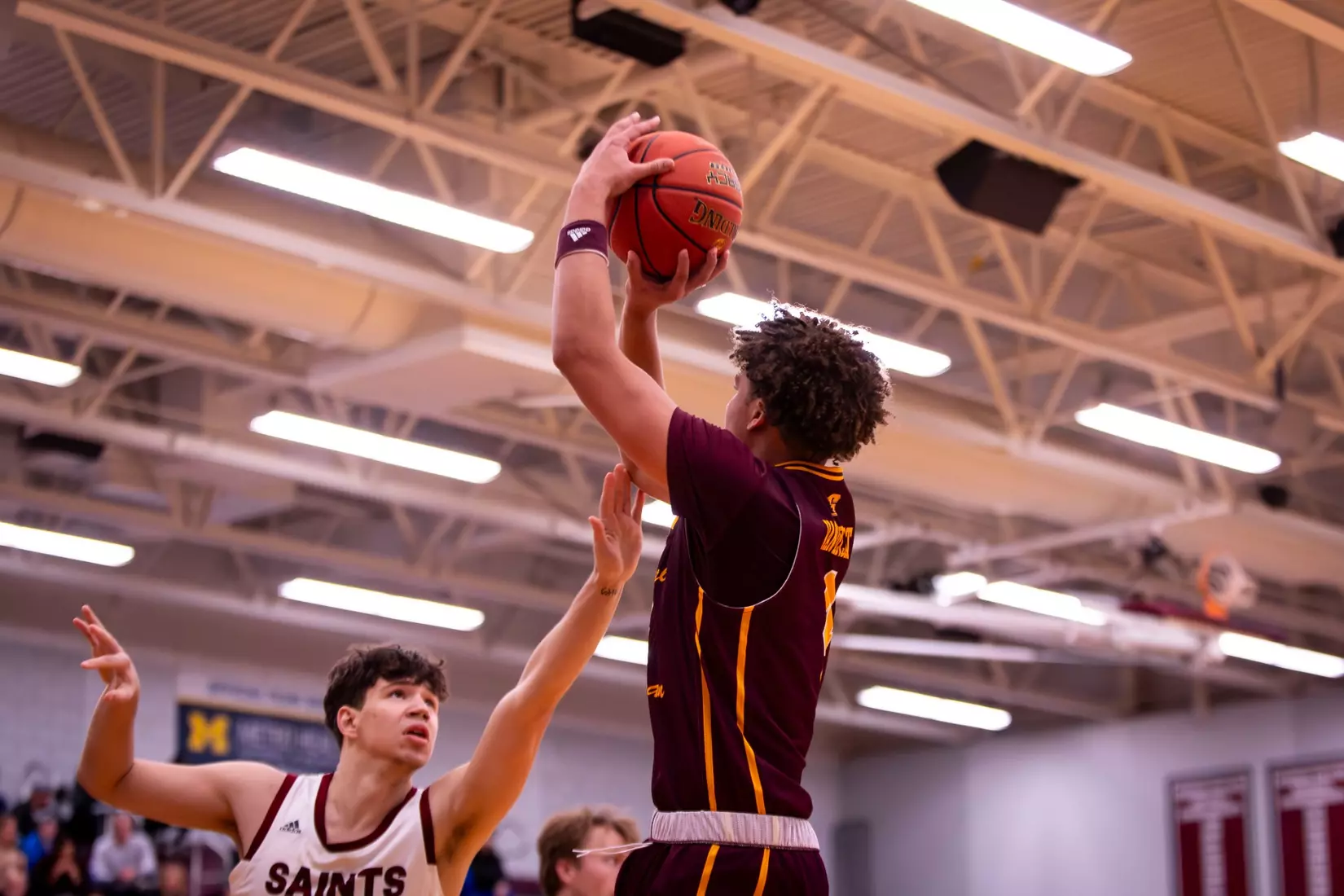 Aquinas remained in the game with 10 3-pointers. Three Saints reached double figures including McGee with 12 points, Jones with 11, and Howard with 10.