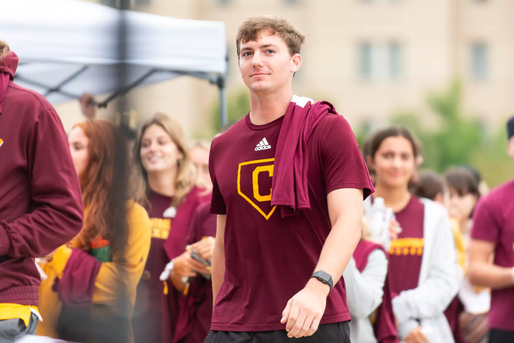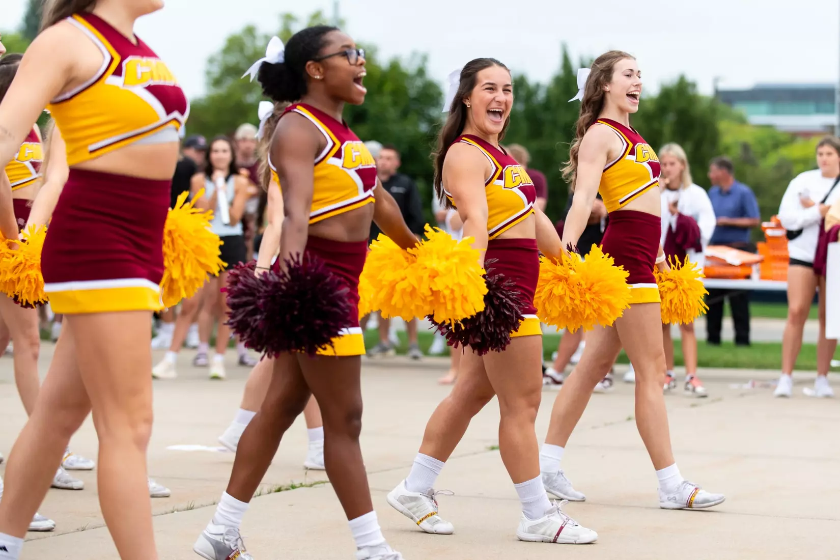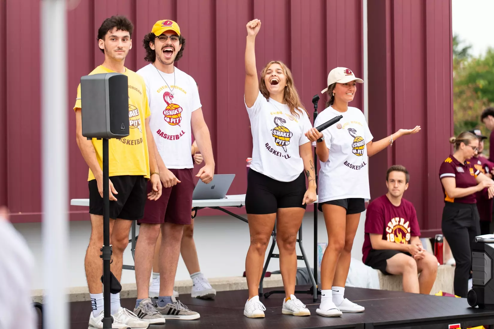 Members of the lacrosse, men's golf, baseball, women's golf, softball, gymnastics, men's basketball, and women's basketball teams spoke to the crowd urging fans to attend their upcoming athletic events. The Snake Charmers, leaders of the Snake Pit, also spoke about their group. CMU cheerleaders and dance team members performed in-game routines.