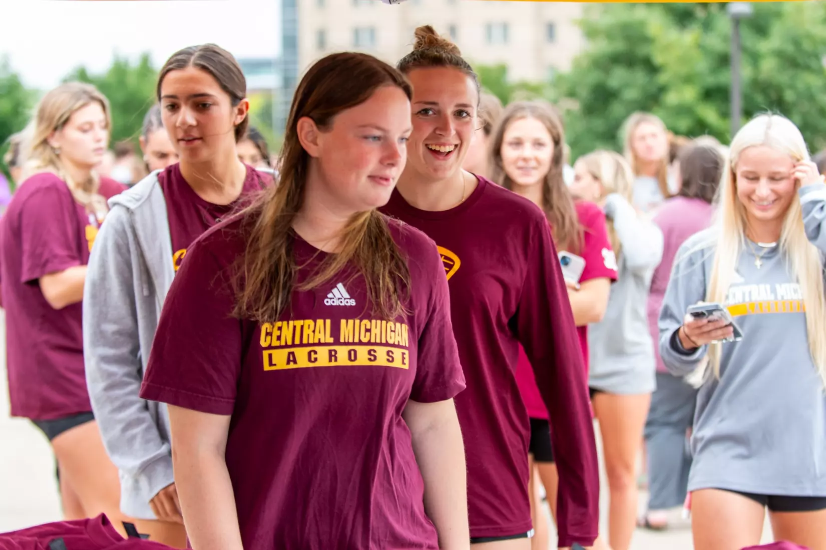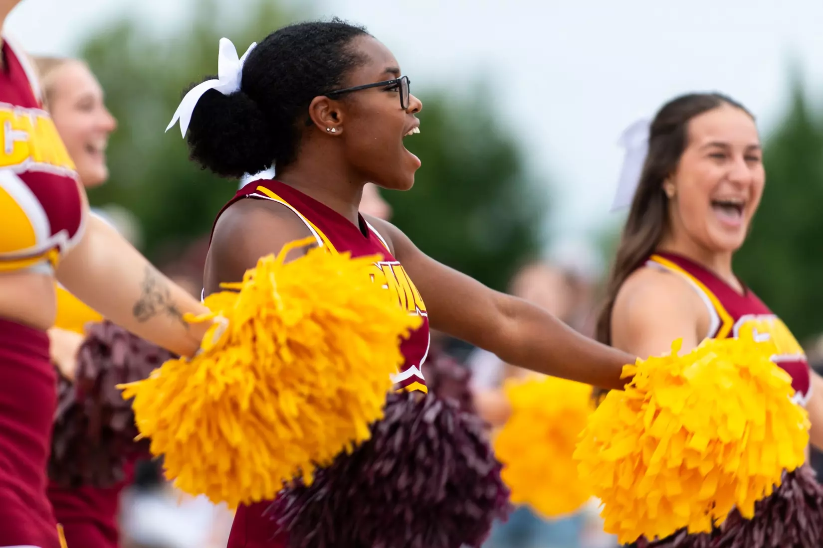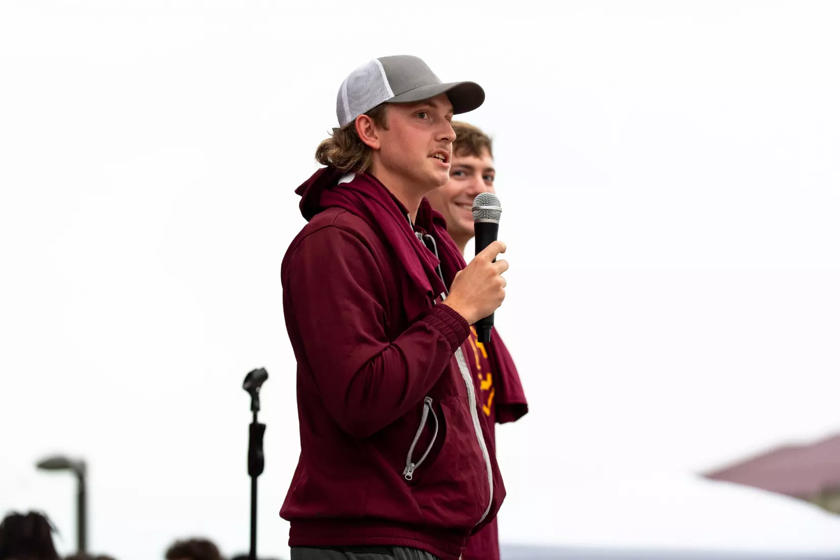 Members of the lacrosse, men's golf, baseball, women's golf, softball, gymnastics, men's basketball, and women's basketball teams spoke to the crowd urging fans to attend their upcoming athletic events. The Snake Charmers, leaders of the Snake Pit, also spoke about their group. CMU cheerleaders and dance team members performed in-game routines.