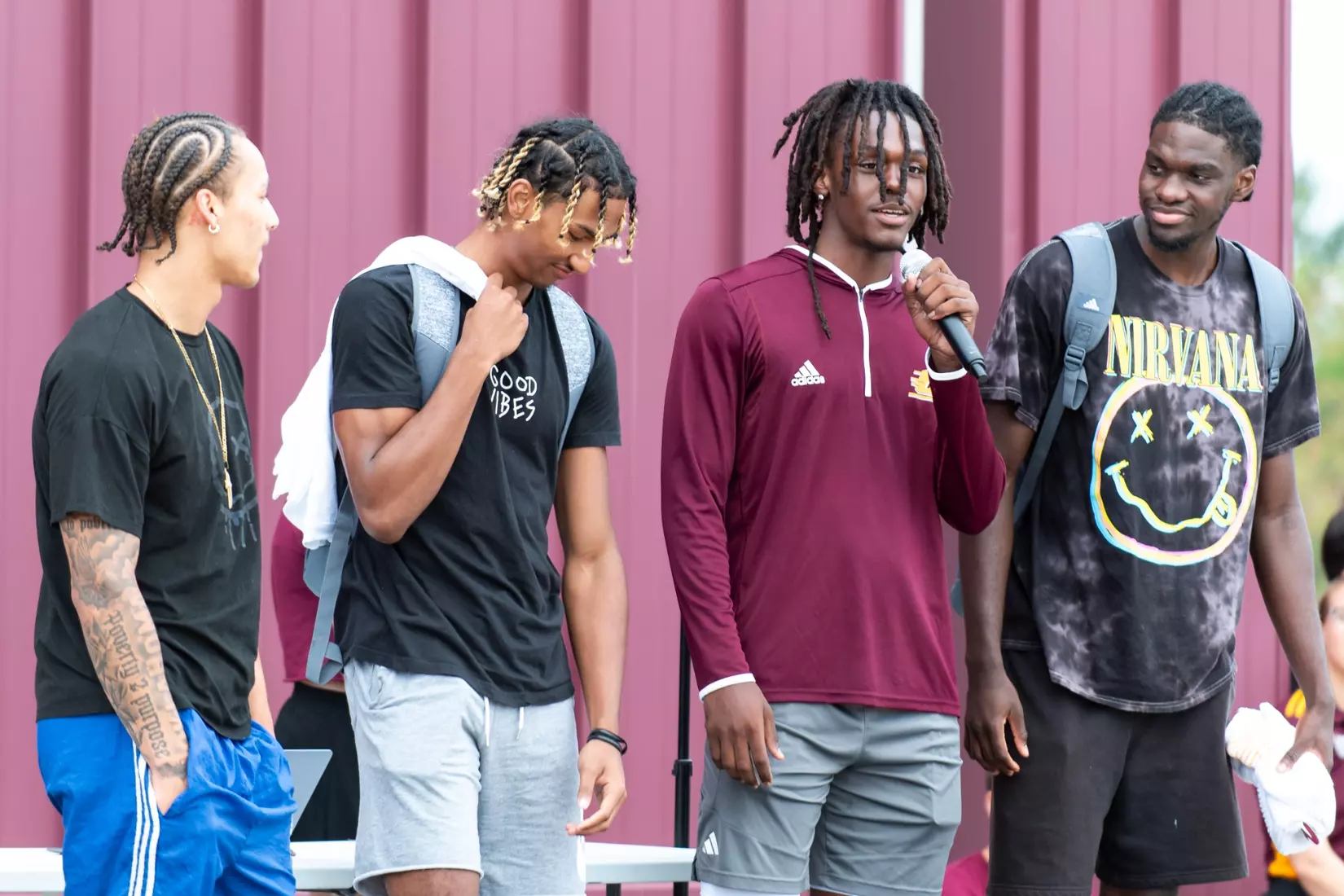 Ice cream, tacos and pizza were served to the assembled crowd, which included students, student-athletes, faculty, administrators, and community members. Various yard games, inflatables and display tables were set up in the grass outside the Kulhavi Center.