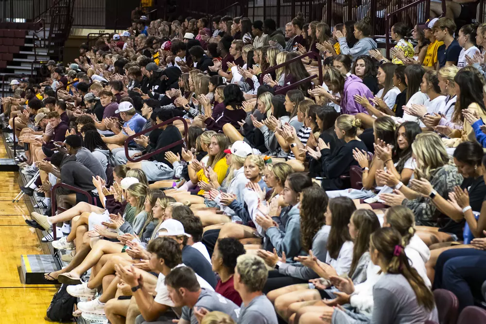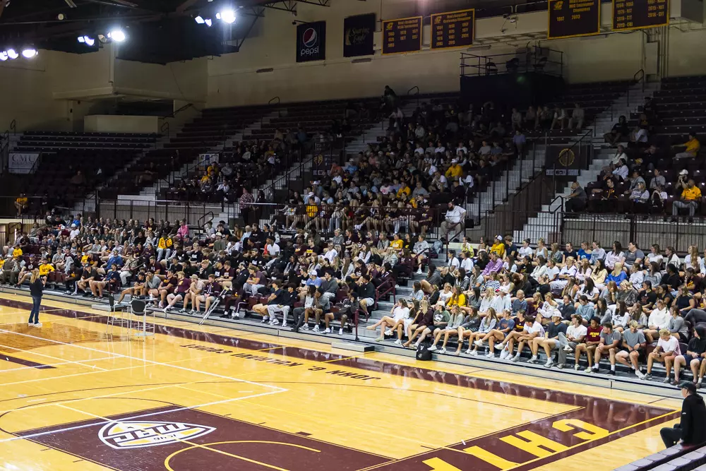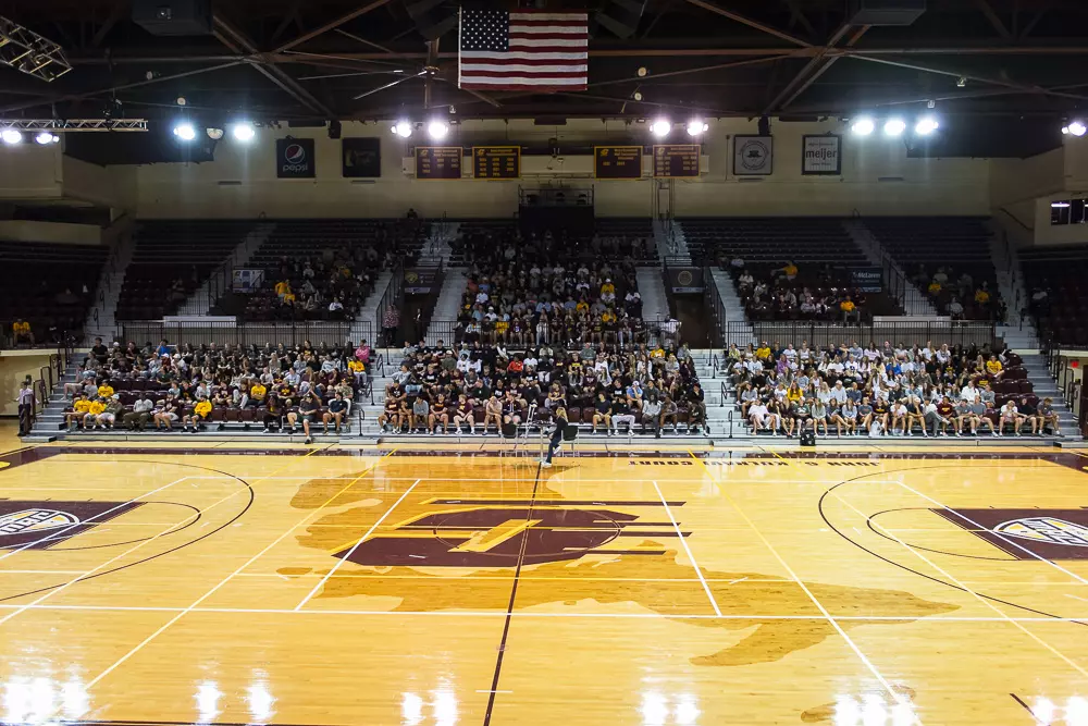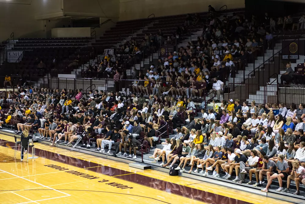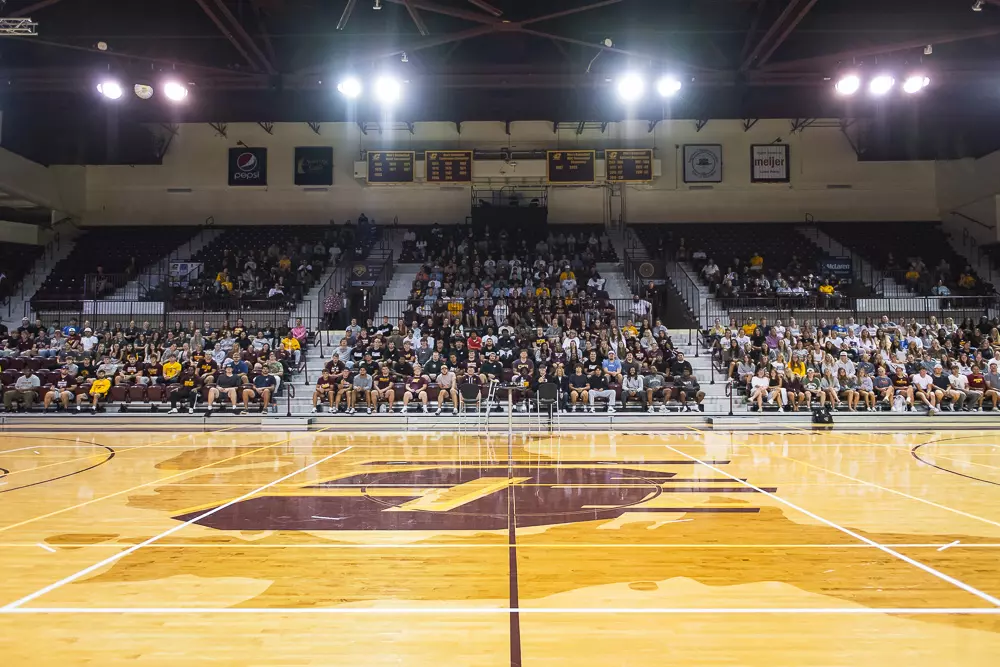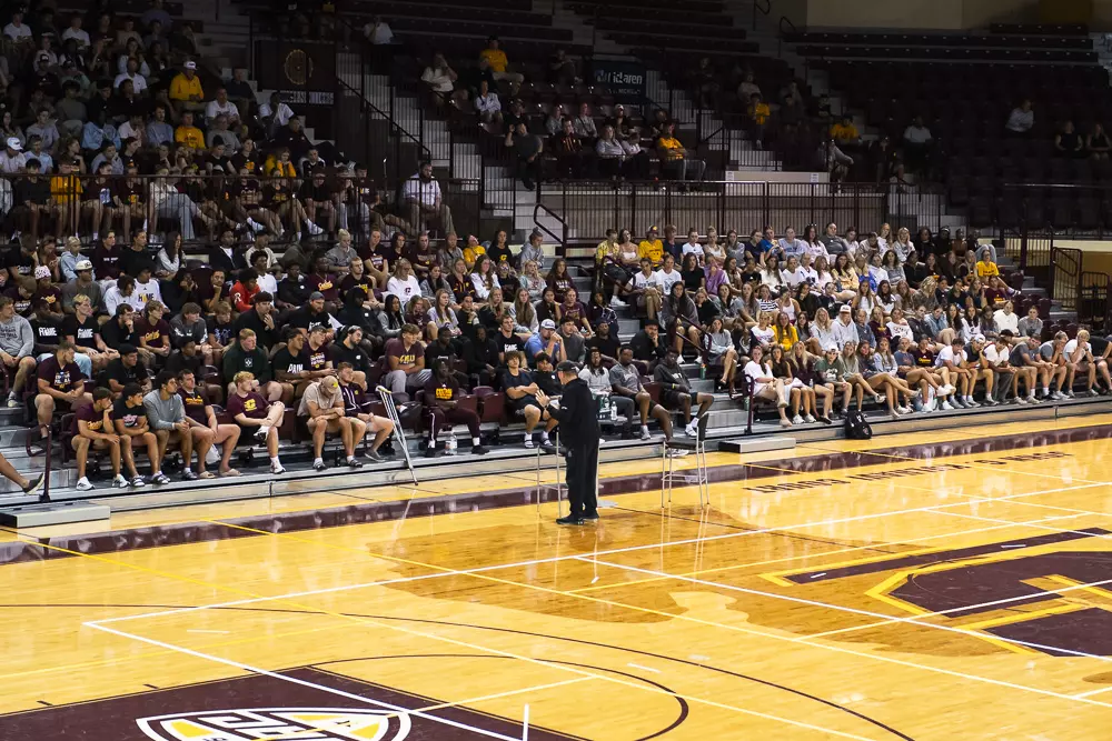Monday night, Mark and Kym Hilinski visited McGuirk Arena to share the story of their middle son Tyler, a Washington State quarterback, who died by suicide in January 2018. The Hilinskis spoke to the entire group of Central Michigan student-athletes. They have established a foundation Hilinski's Hope, which promotes mental fitness for student-athletes and to tell the story of their son. The impactful and heartbreaking story featured video and photos. Their message to student-athletes: it's okay to seek help and please seek help, you are not alone.