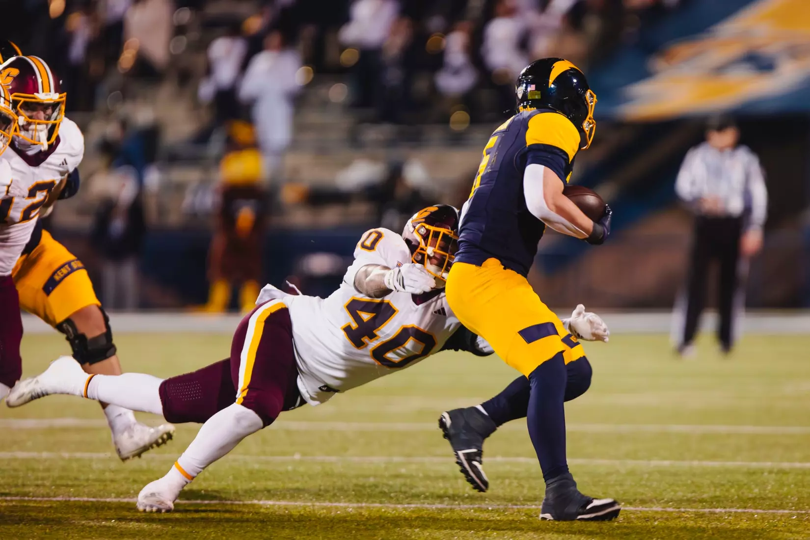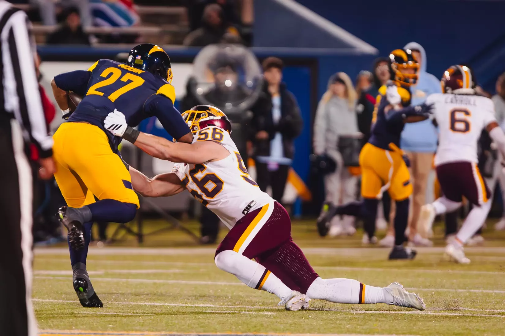 Jordan Kwiatkowski spearheaded a strong CMU defense with 14 tackles – one shy of his career high. The senior middle linebacker made 4.5 tackles-for-loss and forced a fumble on the Golden Flashes' second possession of the game. CMU took over at the Kent State 34-yard line and later scored to extend the lead to 14-0.