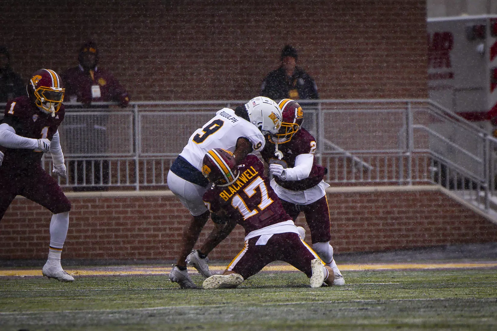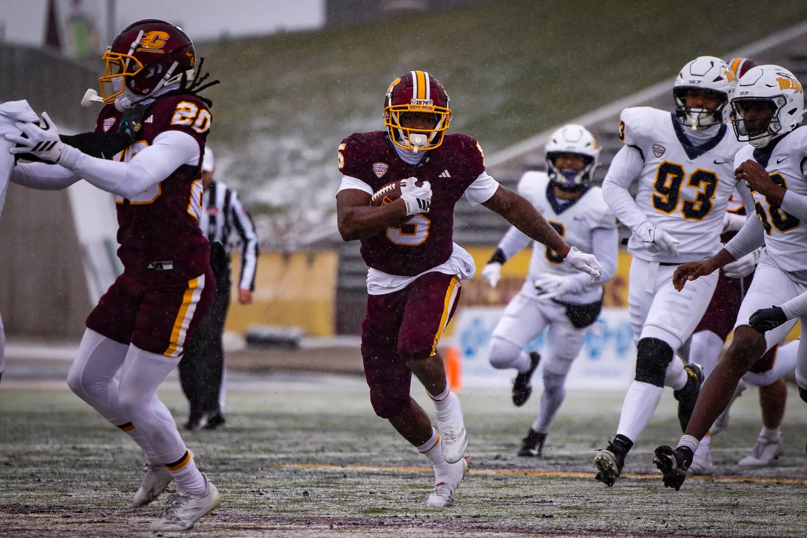 The temperature at kickoff was 30 degrees and both offenses struggled to get on track. CMU got a 28-yard field goal from Cade Graham just before halftime for a 3-0 lead.