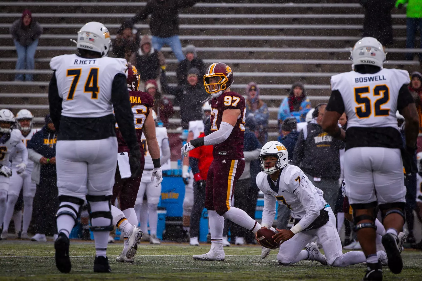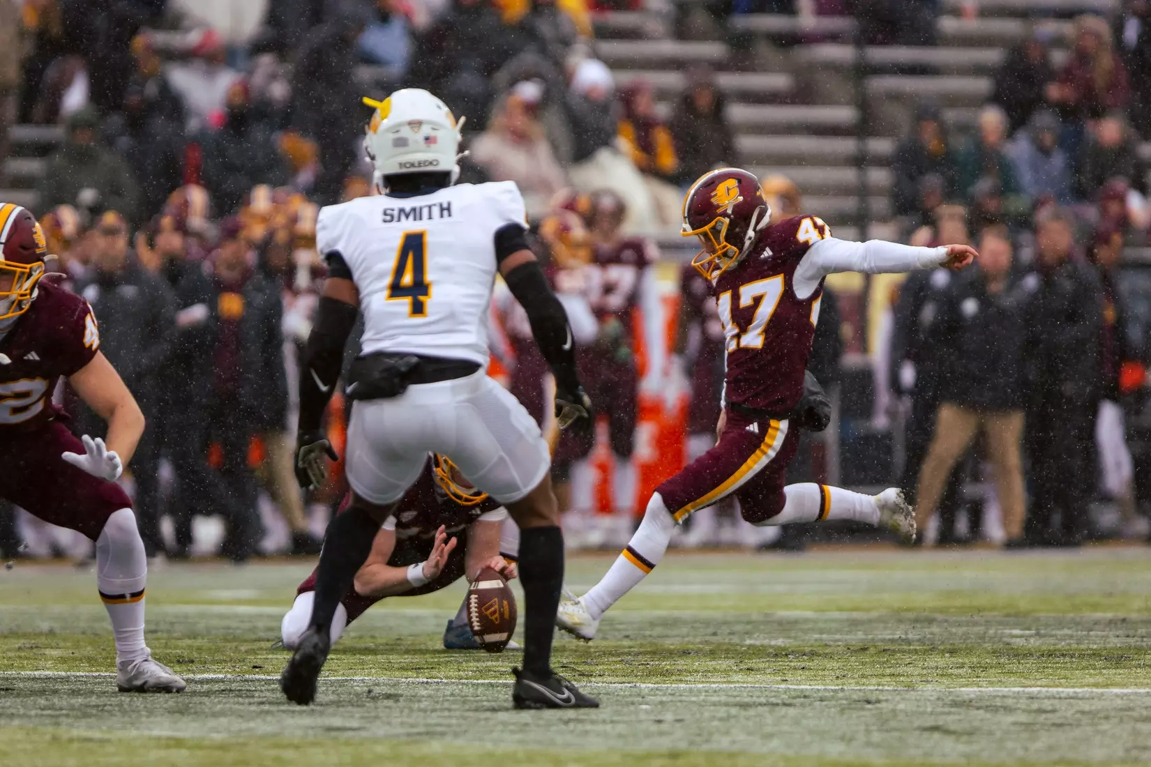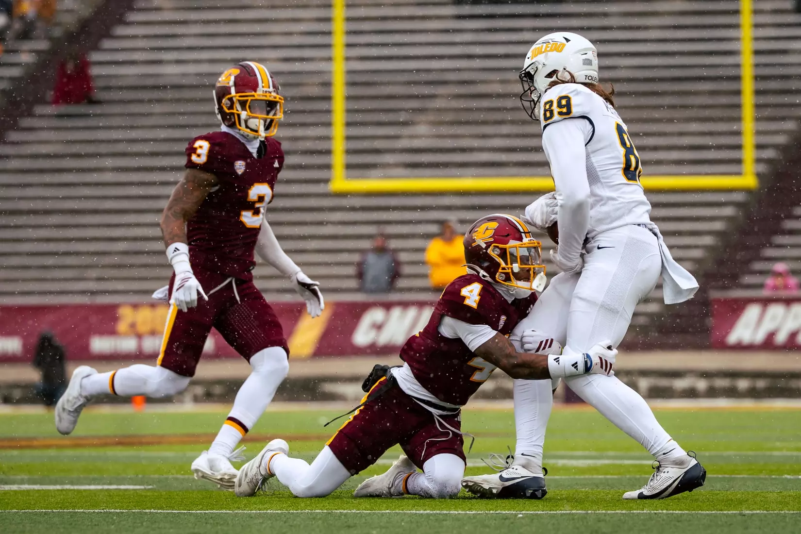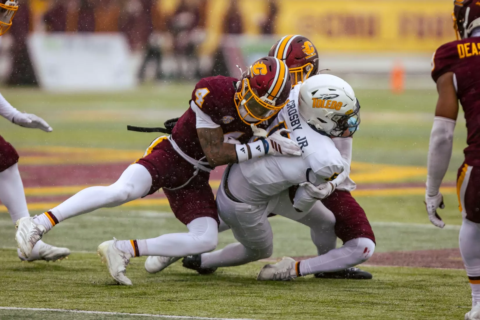 Toledo entered the game sporting the MAC's No. 1 offense and its No. 1 defense. The Chippewas moved the ball effectively, at times, but failed to convert on four fourth-down chances – usually a staple of the CMU offense – and was forced to play from behind.