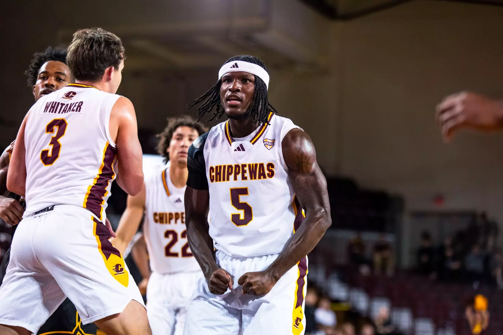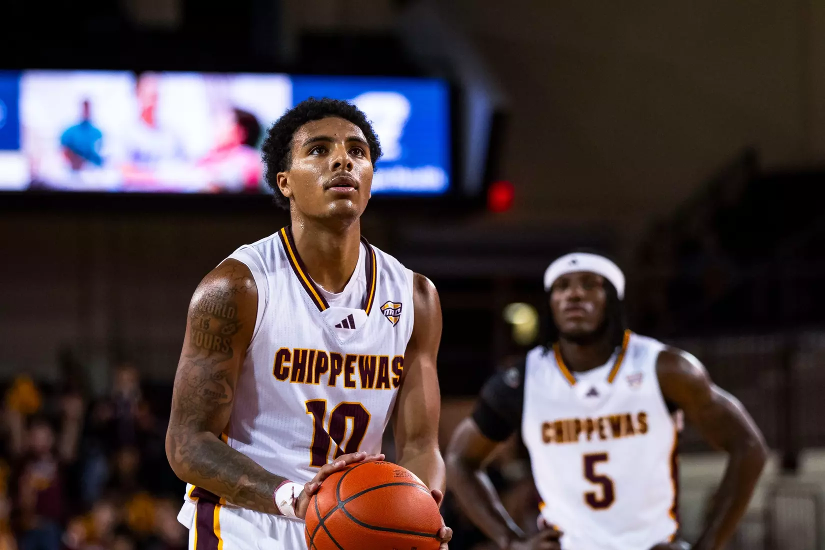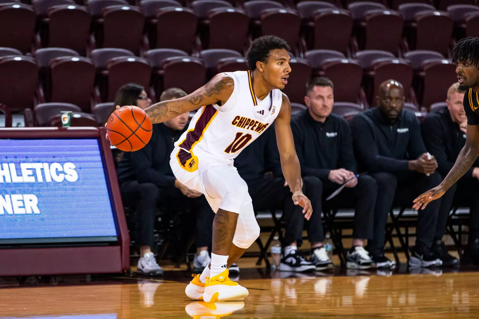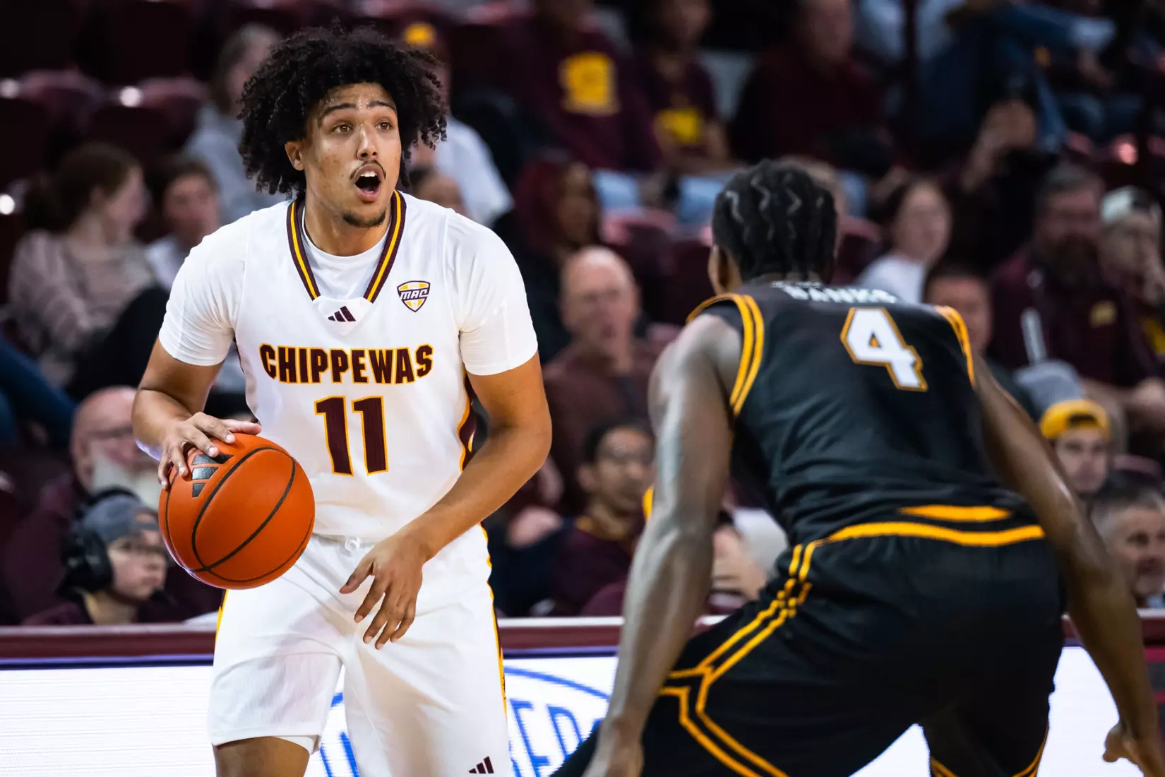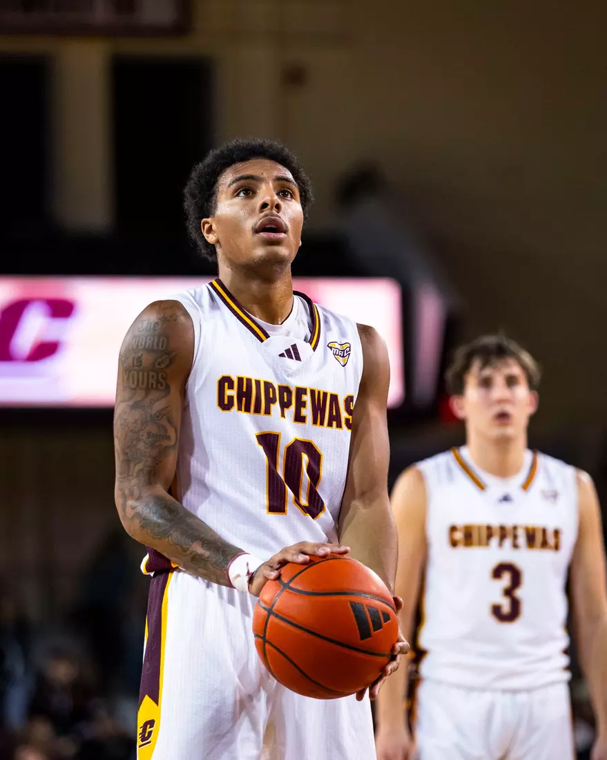 The Chippewas started Adley, Brooks, and McIntire at guard, Nathan Claerbaut at center, and Keenan Garner at forward.