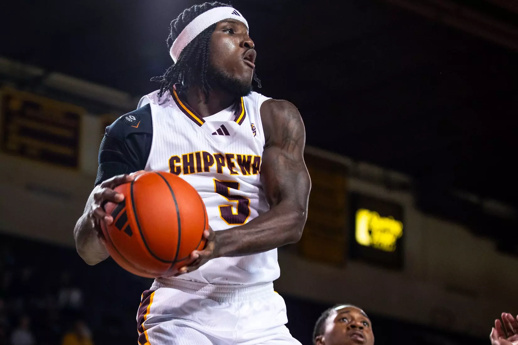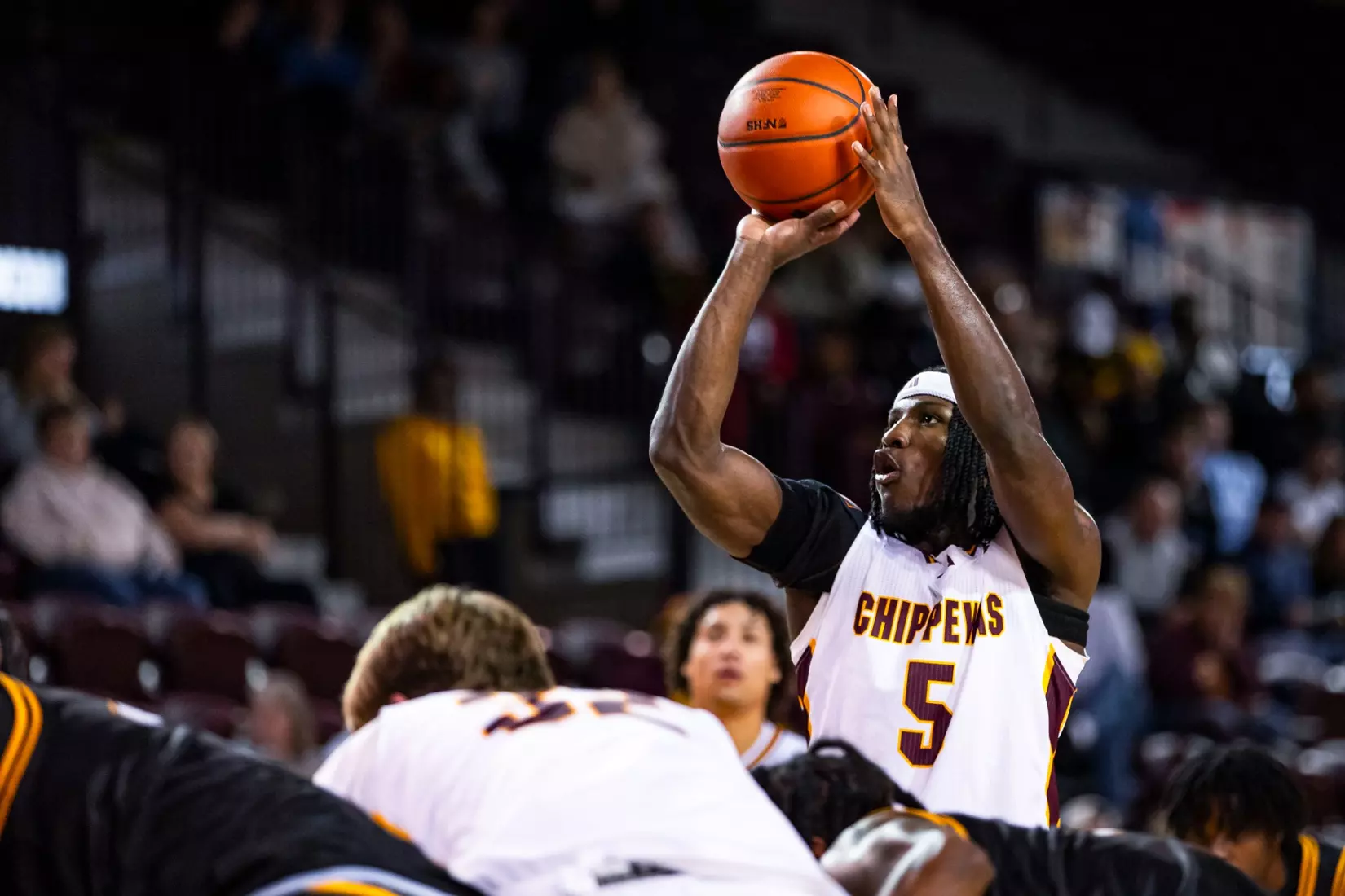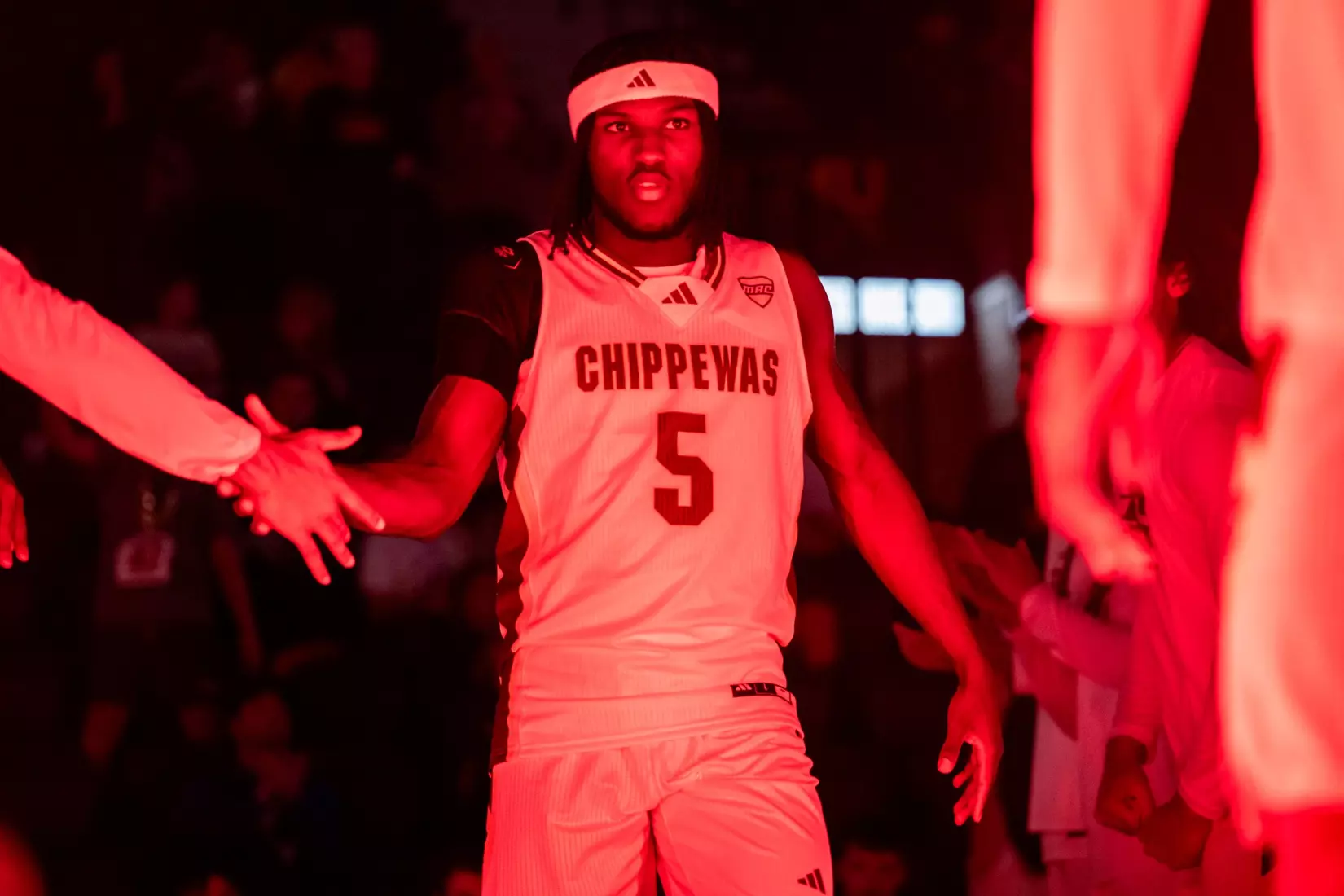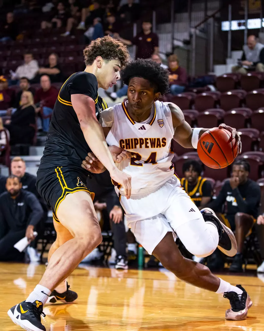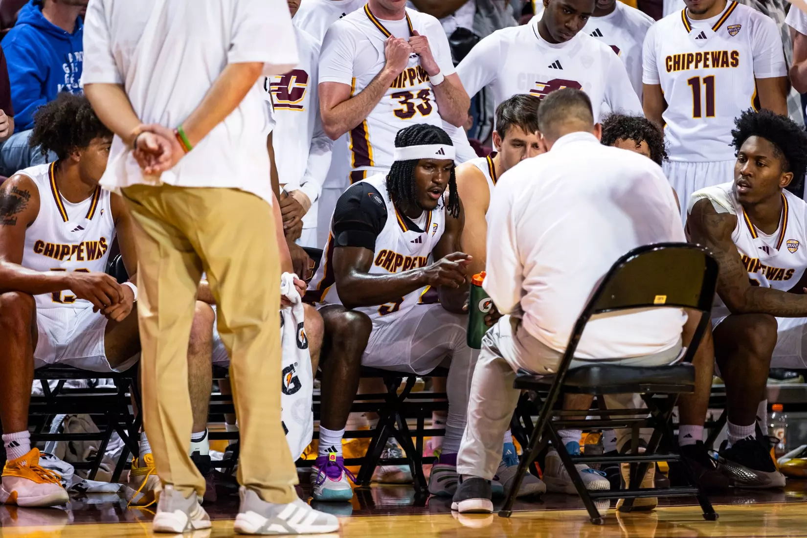 The Chippewas started Adley, Brooks, and McIntire at guard, Nathan Claerbaut at center, and Keenan Garner at forward.