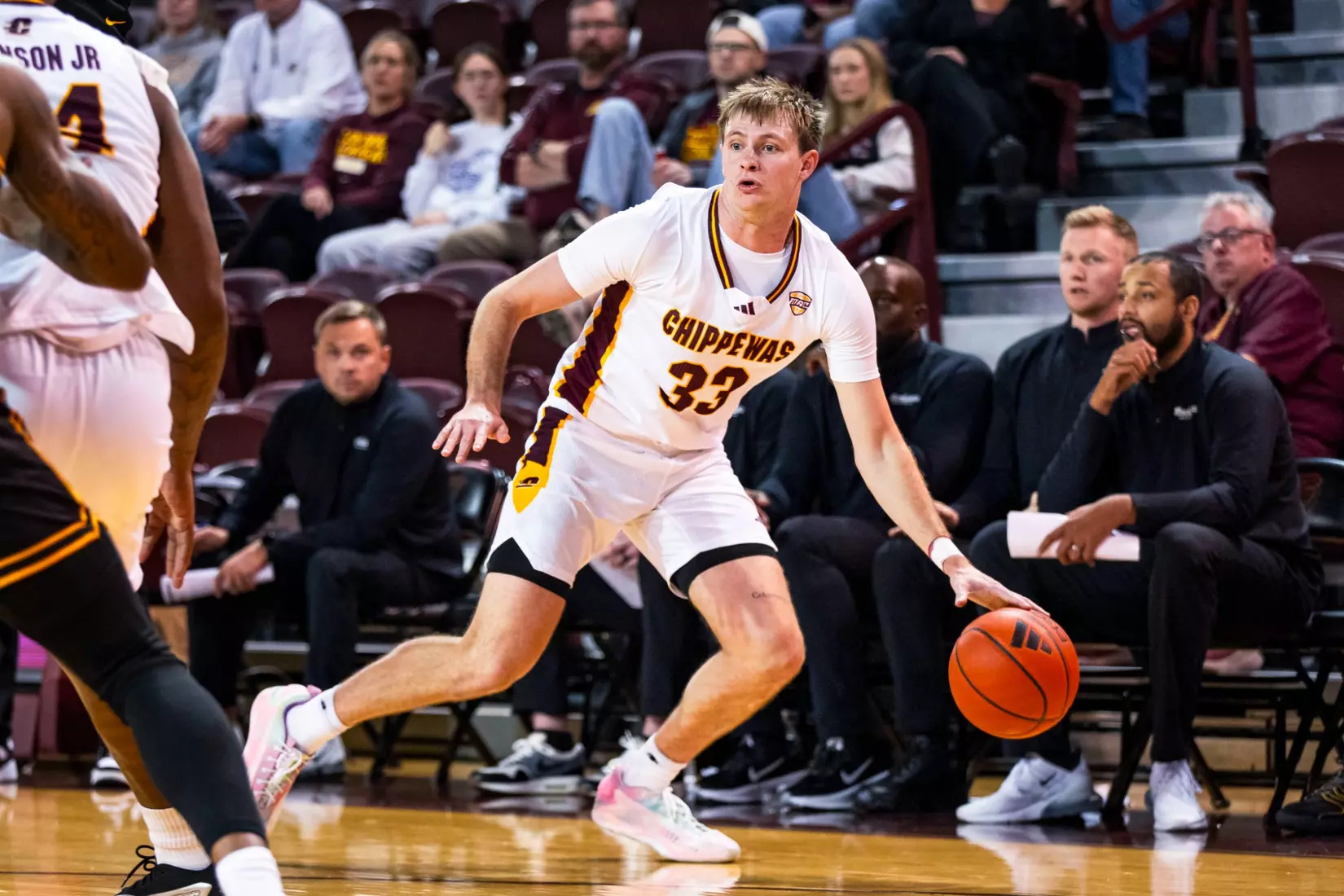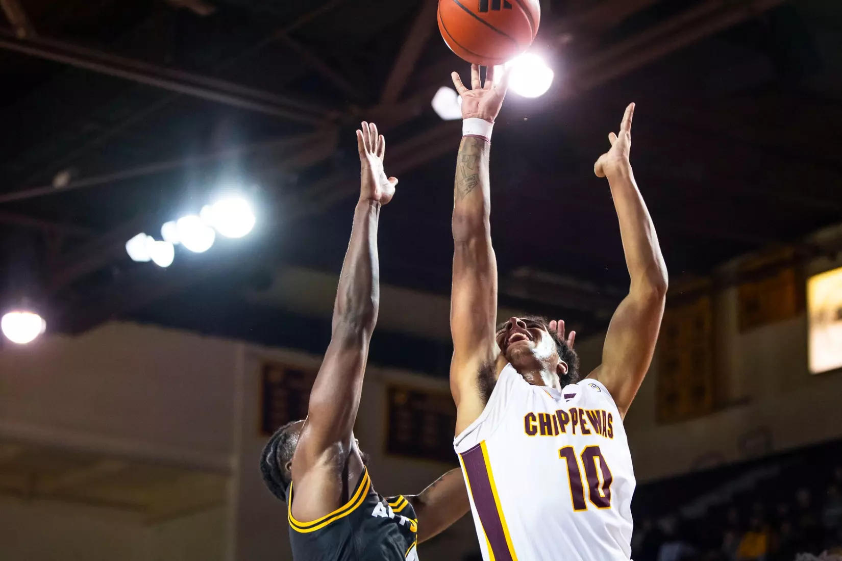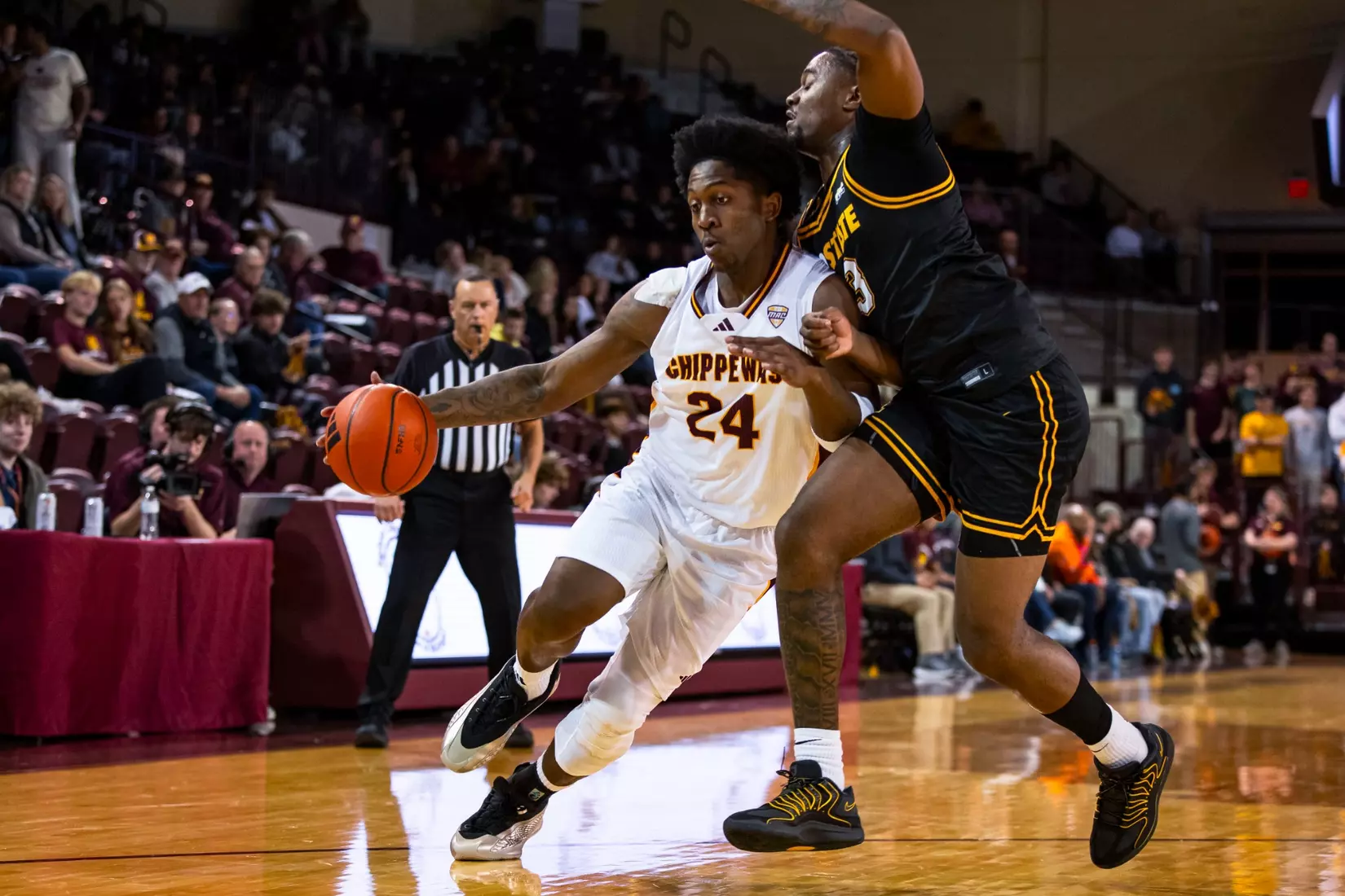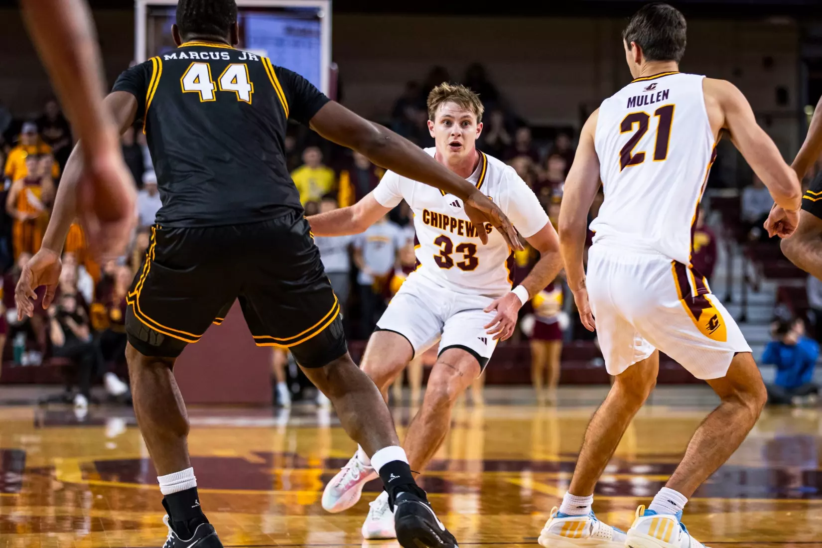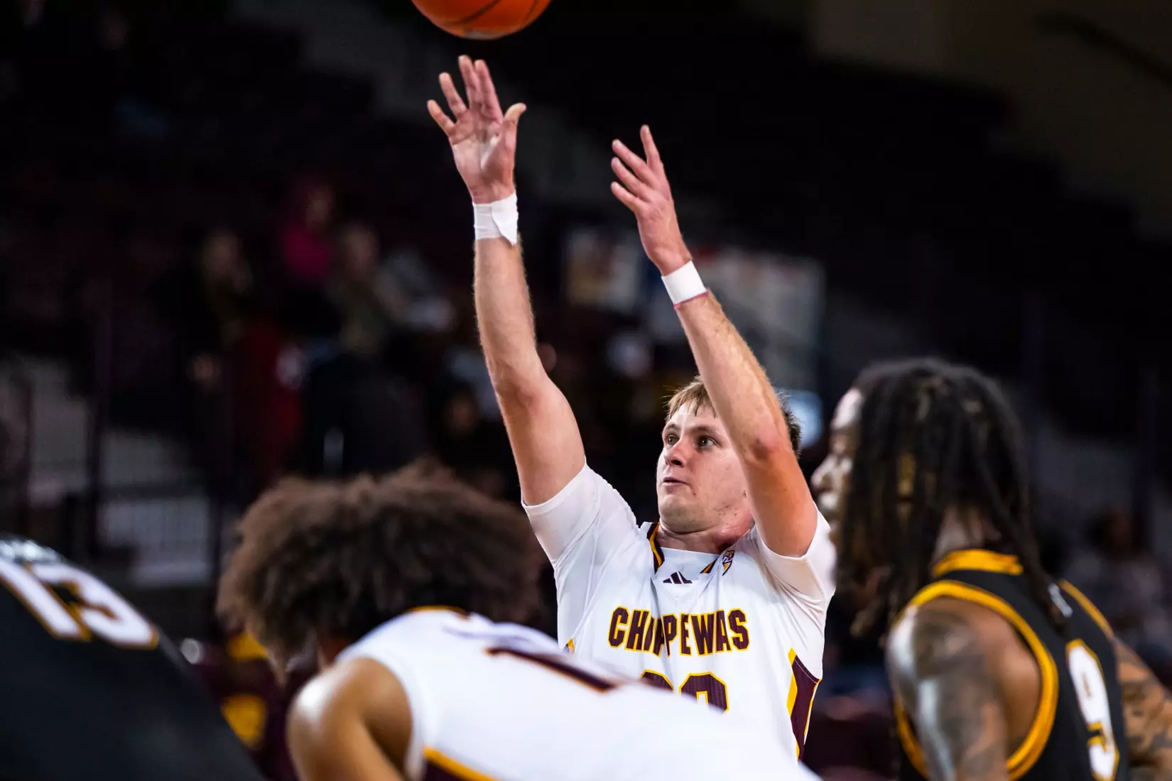 The Chippewas started Adley, Brooks, and McIntire at guard, Nathan Claerbaut at center, and Keenan Garner at forward.