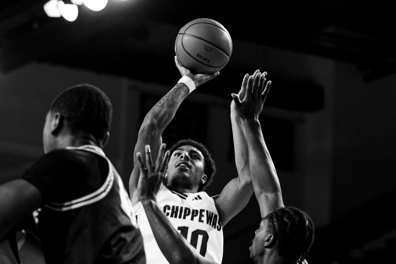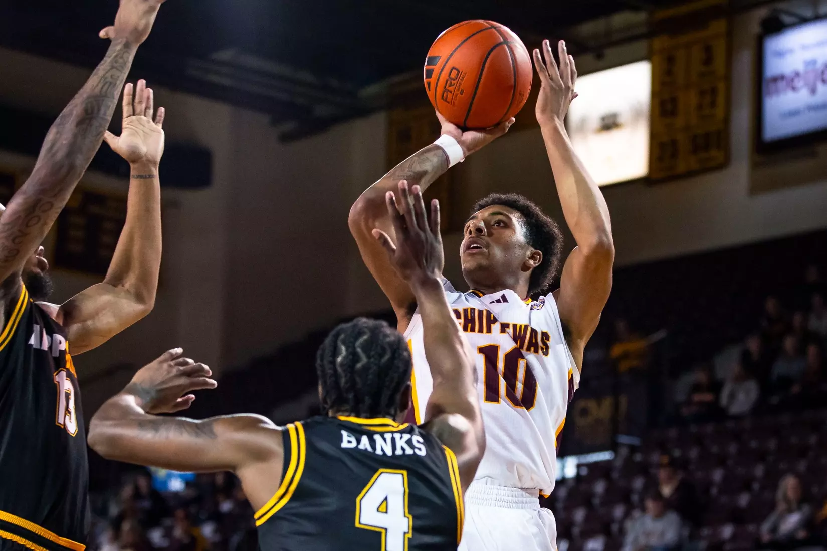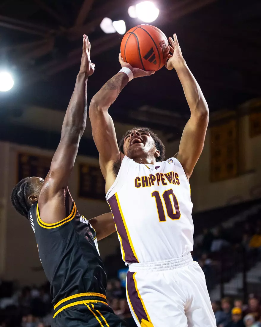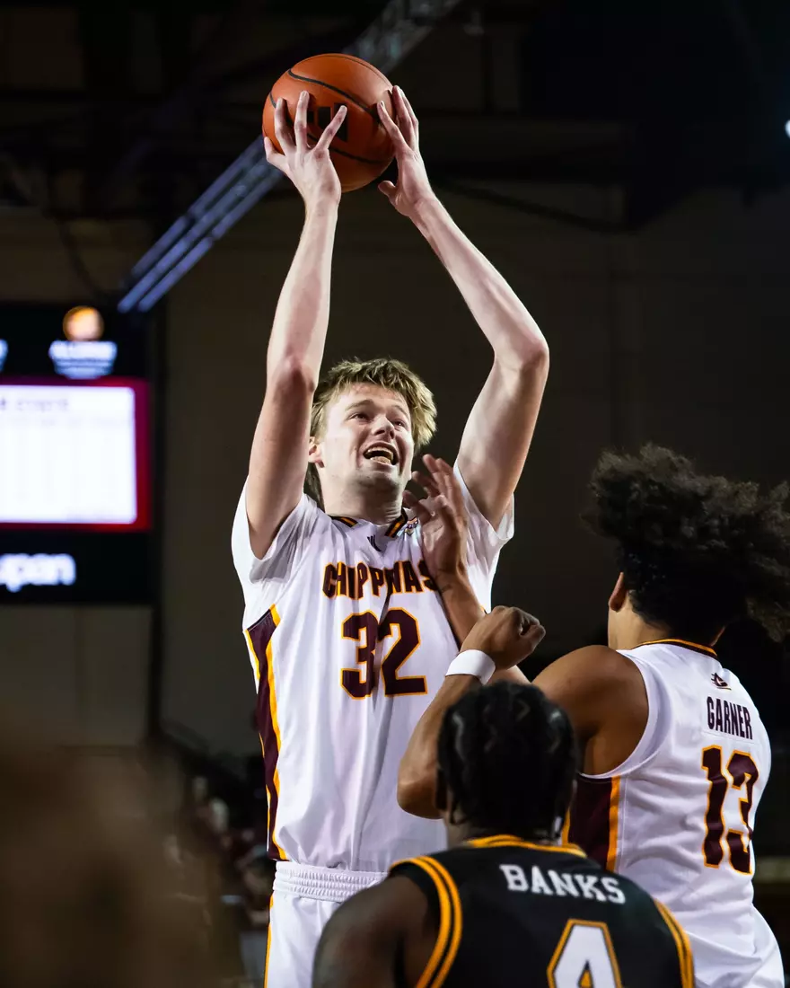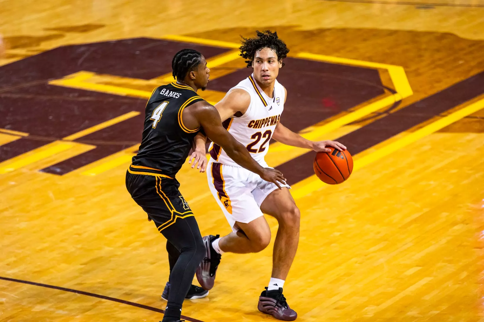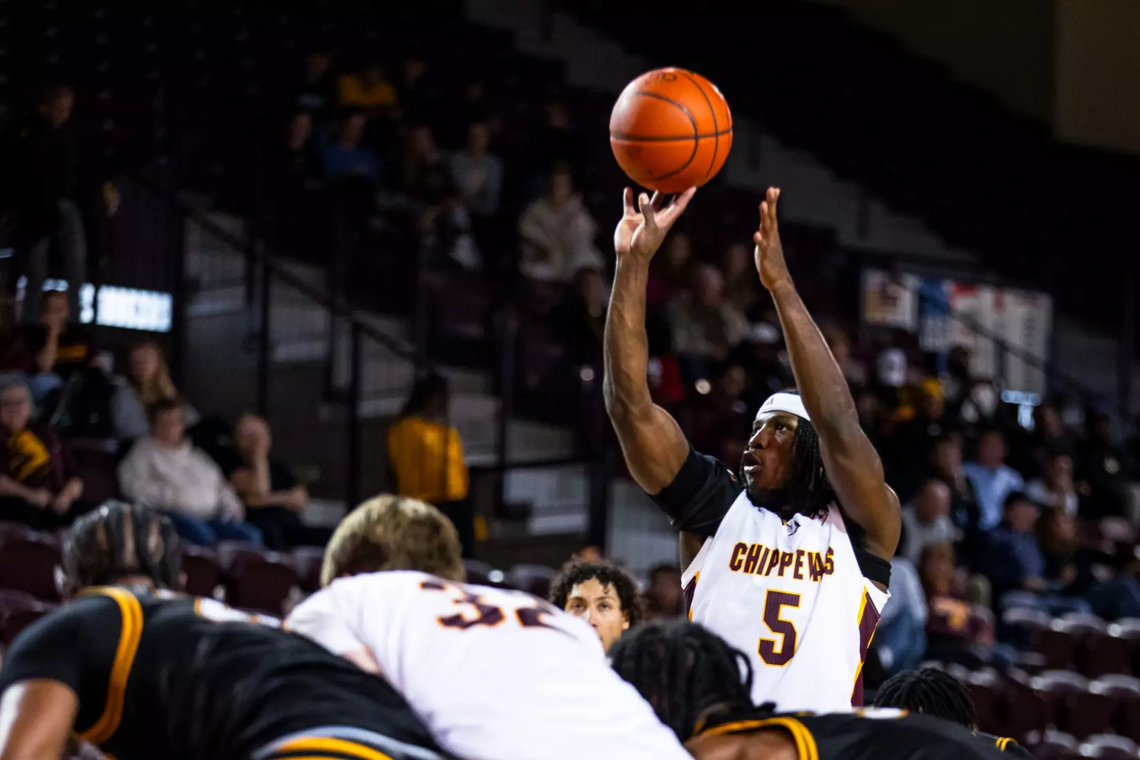 The Chippewas started Adley, Brooks, and McIntire at guard, Nathan Claerbaut at center, and Keenan Garner at forward.