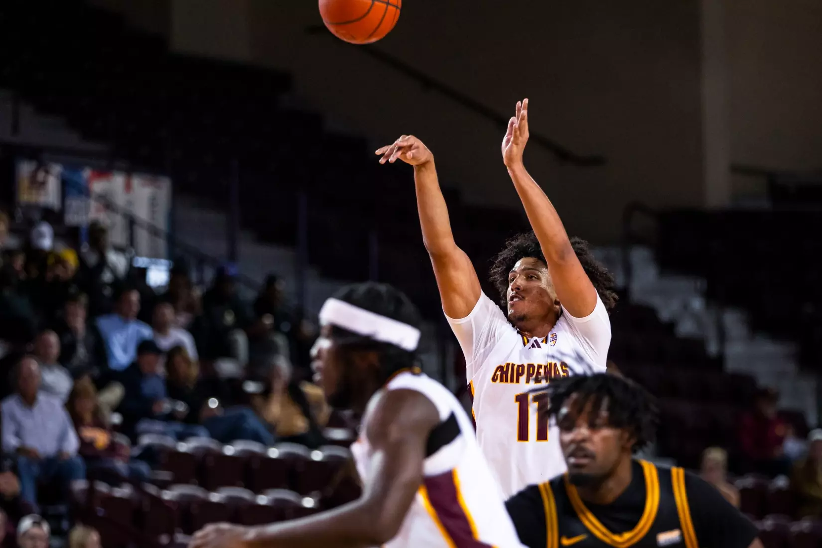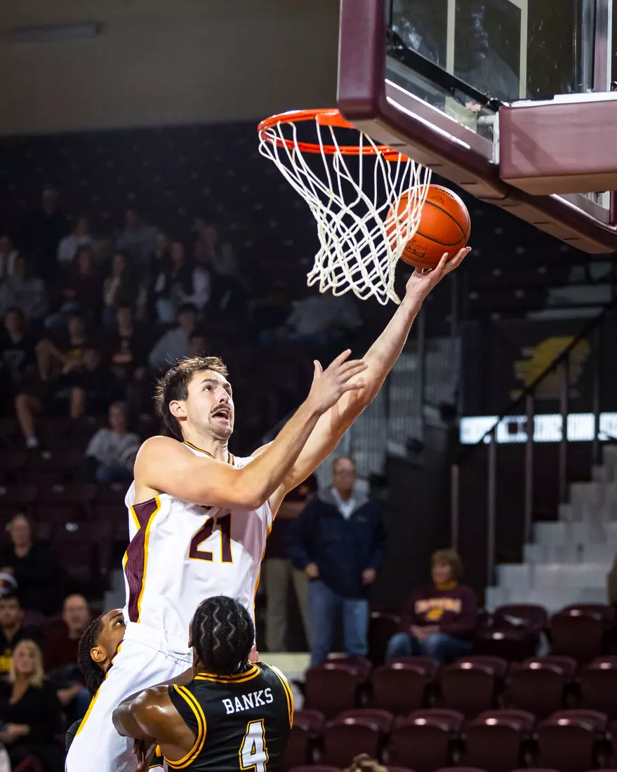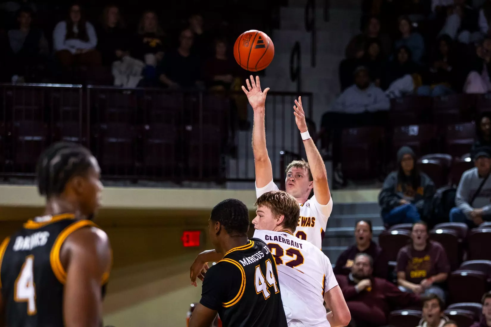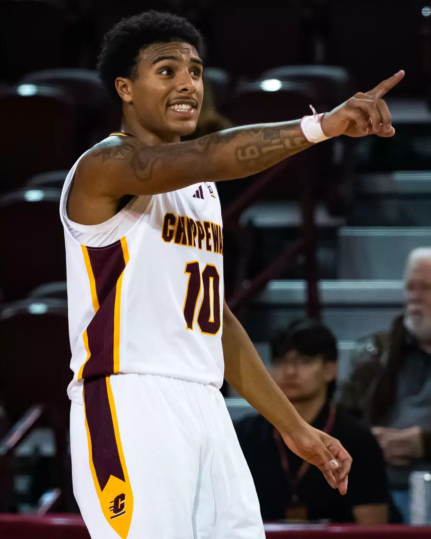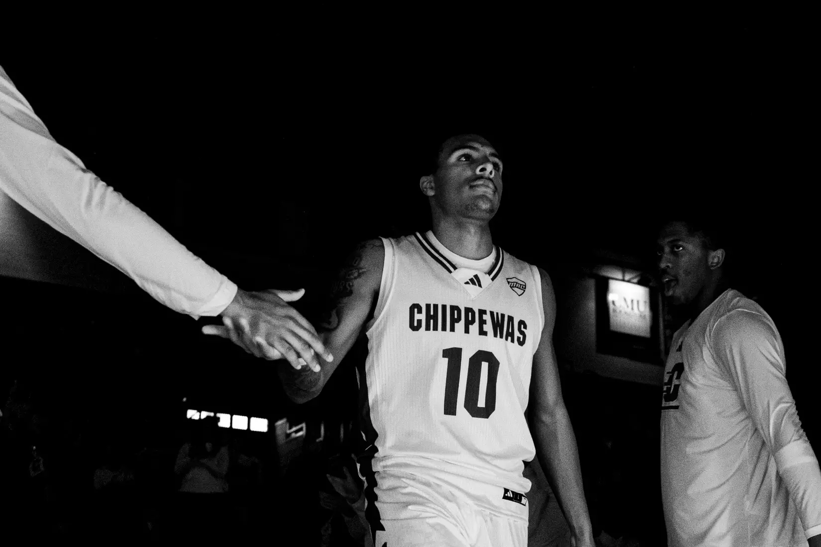 The Chippewas started Adley, Brooks, and McIntire at guard, Nathan Claerbaut at center, and Keenan Garner at forward.