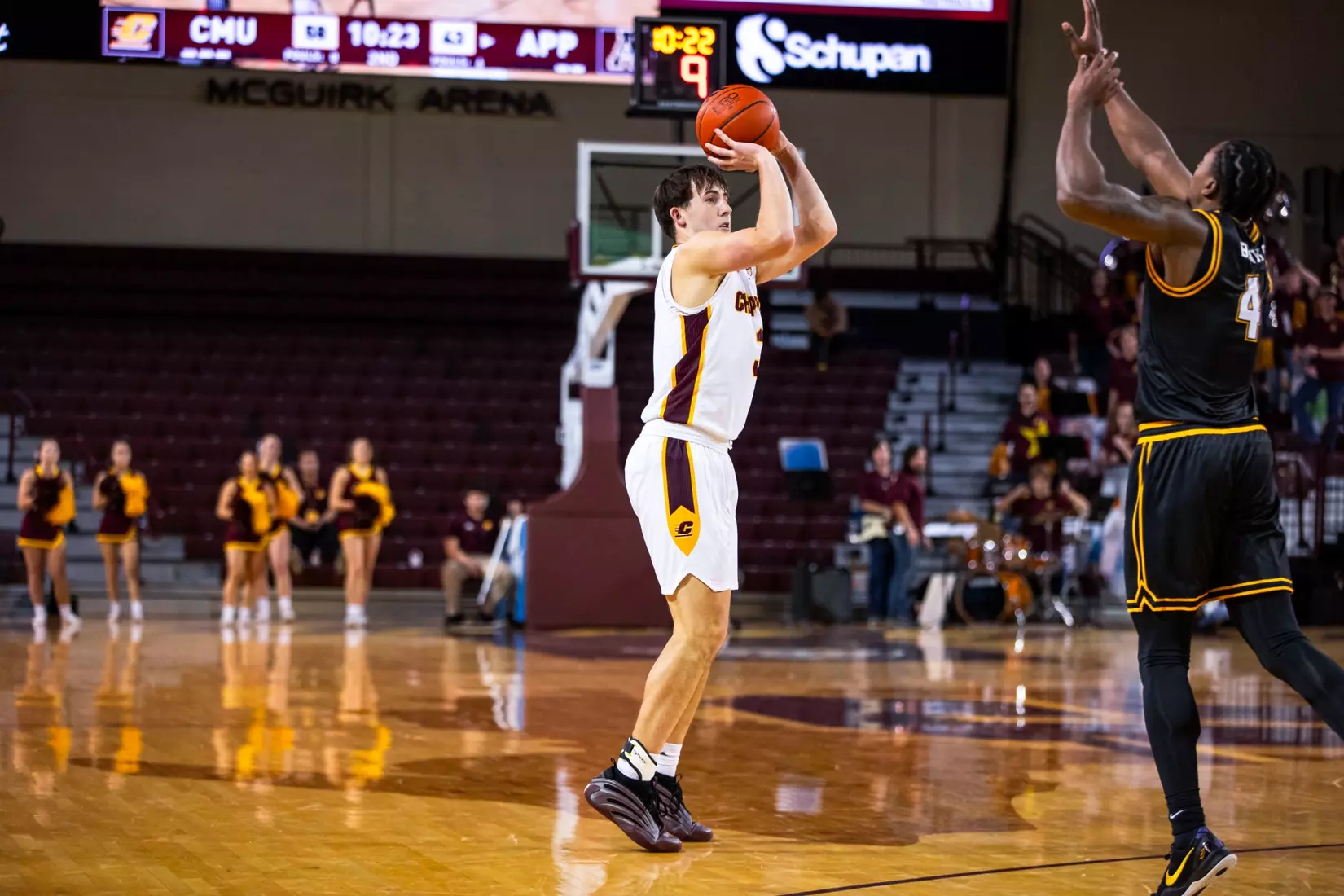 MOUNT PLEASANT, Mich.—Tamario Adley scored a game-high 22 points and Logan McIntire hit a game-high four 3-pointers and finished with 14 points as Central Michigan built an early first half lead and never looked back in claiming an 82-66 season opening victory over Appalachian State Monday night at McGuirk Arena. The contest was being played as part of the MAC/SBC Challenge.