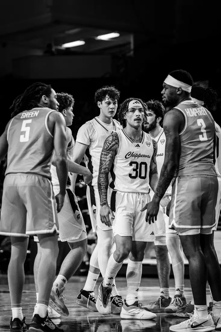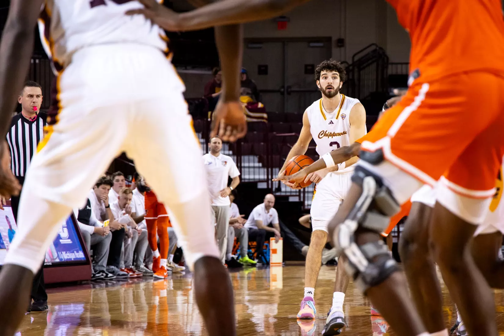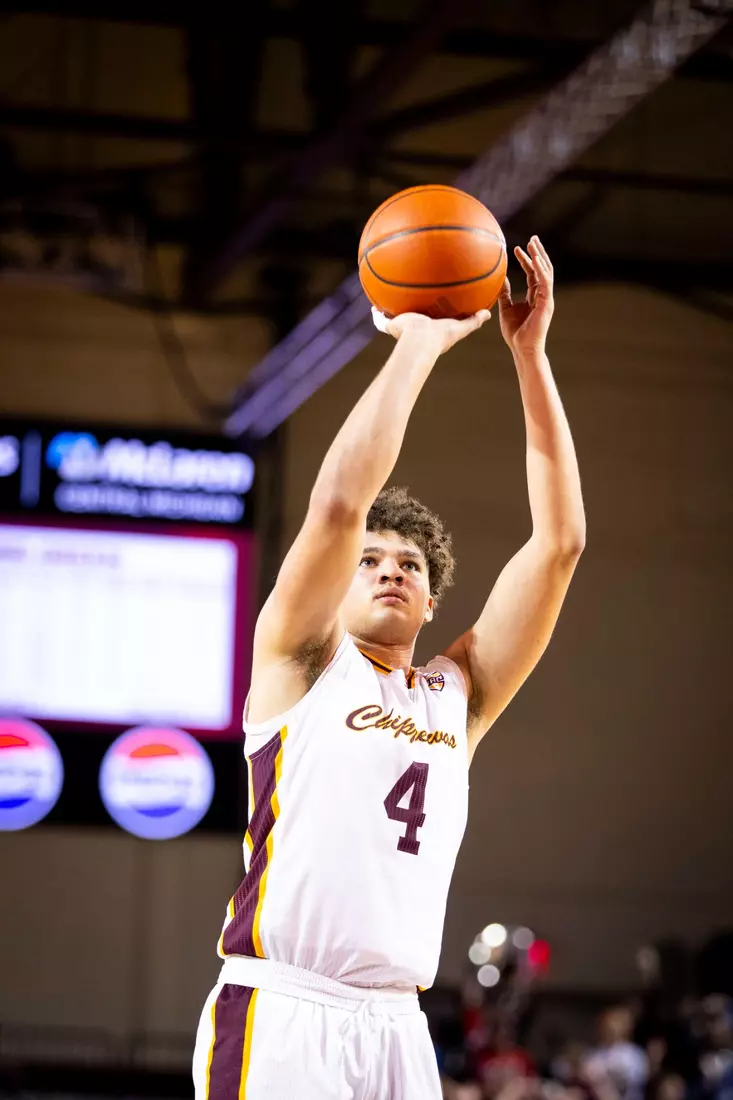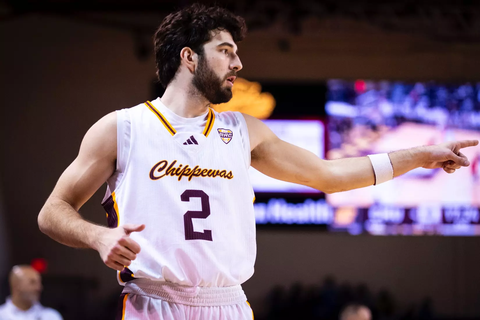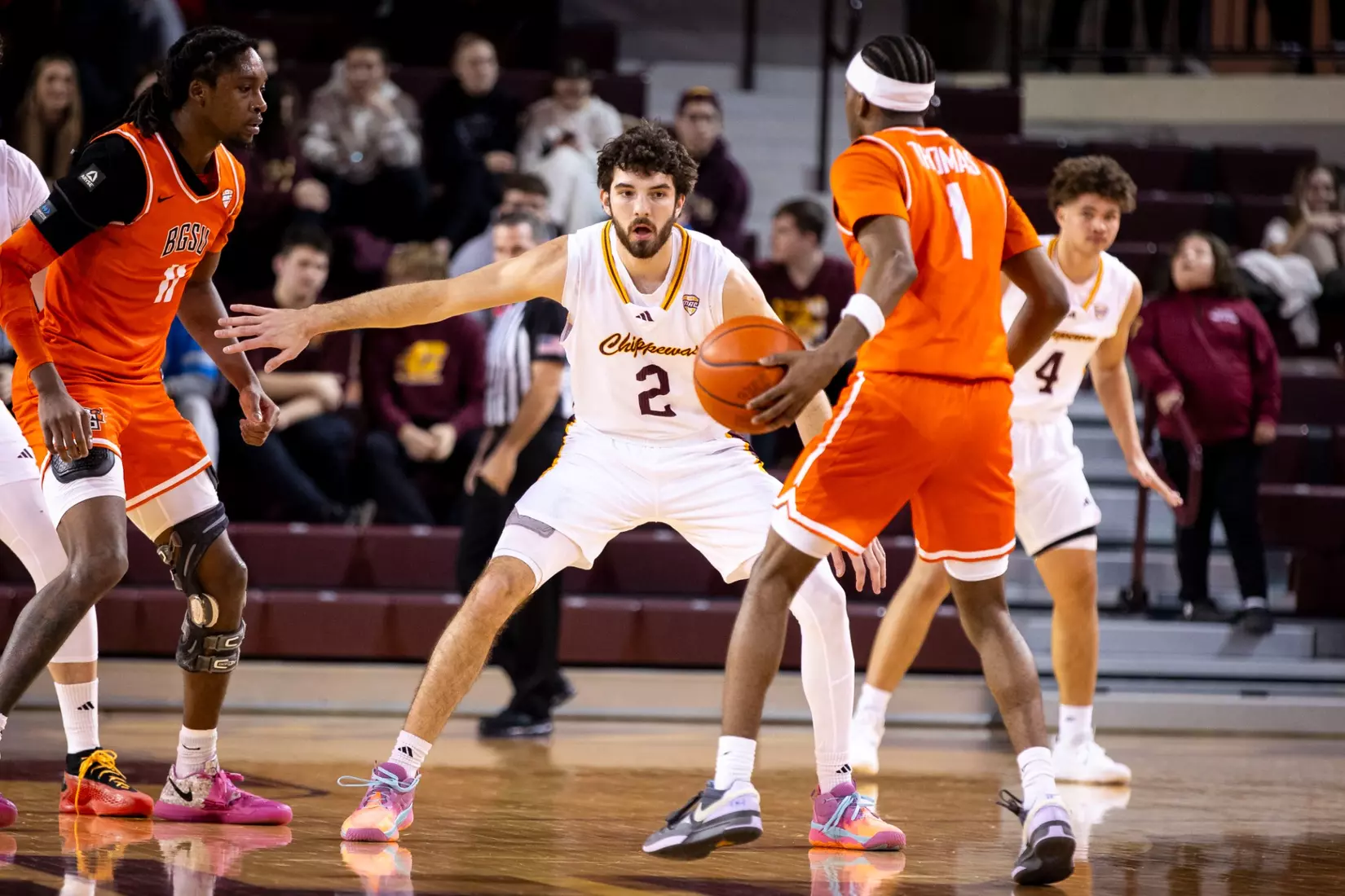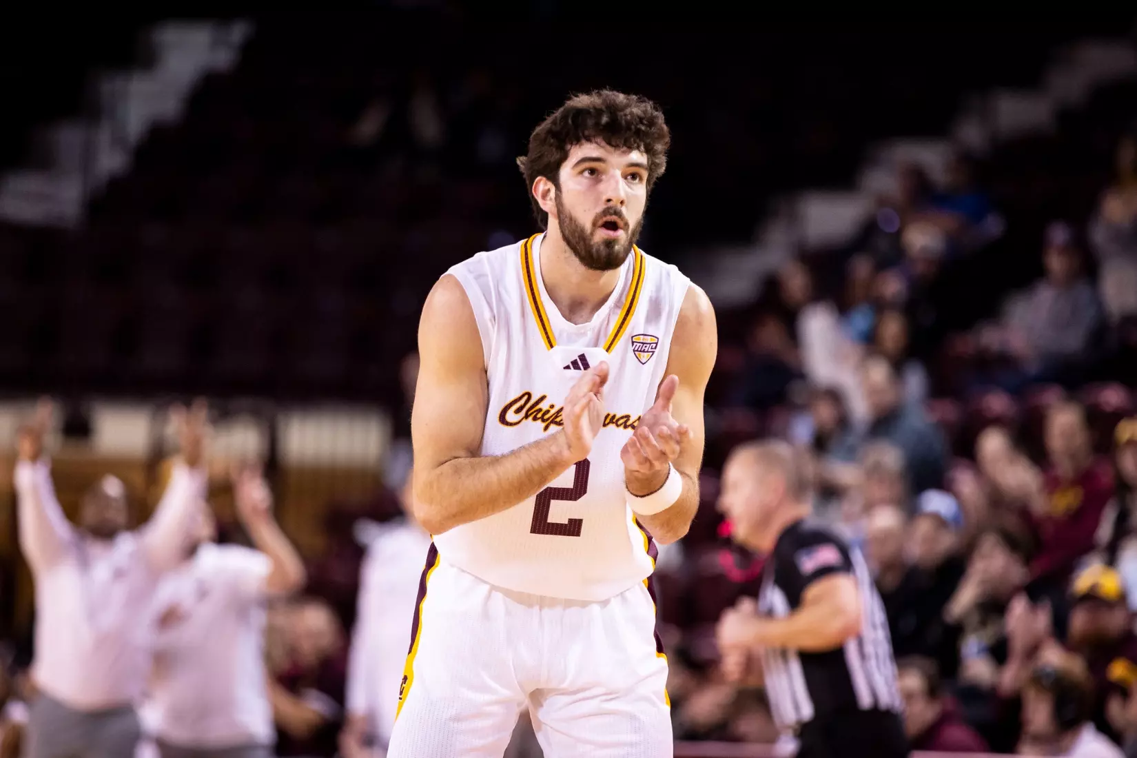 After a back-and-forth first 10 minutes, Central Michigan took the lead for the rest of the half and built a commanding 49-33 halftime lead while shooting 60 percent from the floor. CMU used an 8-0 run to take a 20-12 lead at the 11:28 mark. Cayden Vasko drained a 3-pointer for a 17-12 lead with 12:42 left in the first half, then Quentin Heady finished off a 3-ponit play. The Chippewas pushed their lead back to eight points at 23-15 on a 3-pointer by Kyler VanderJagt.