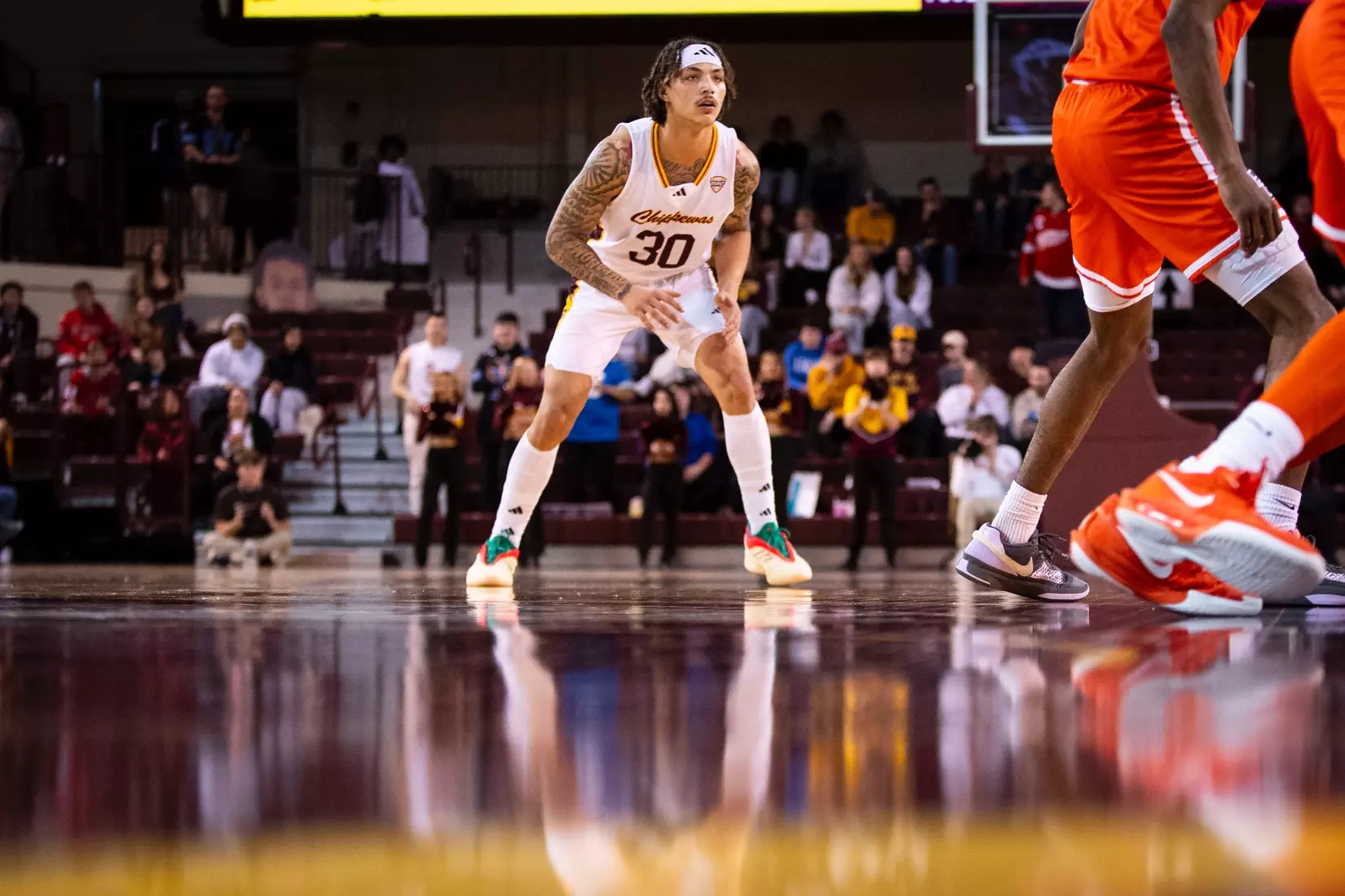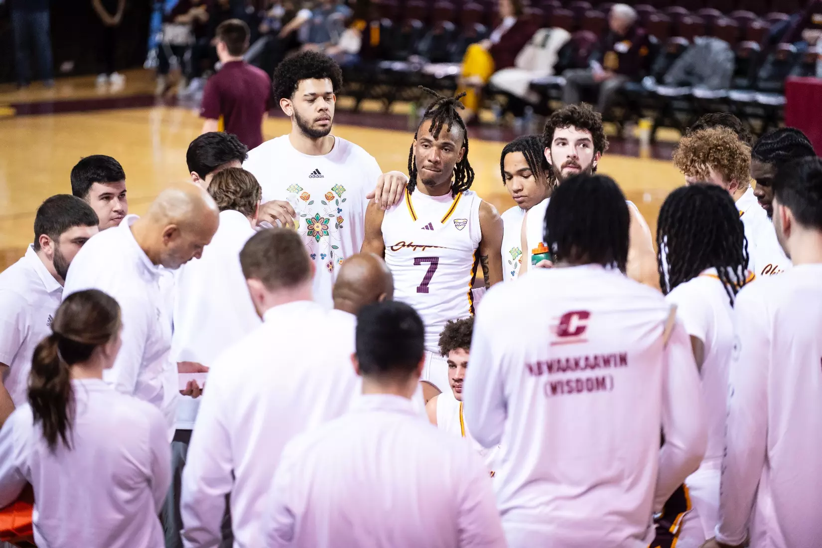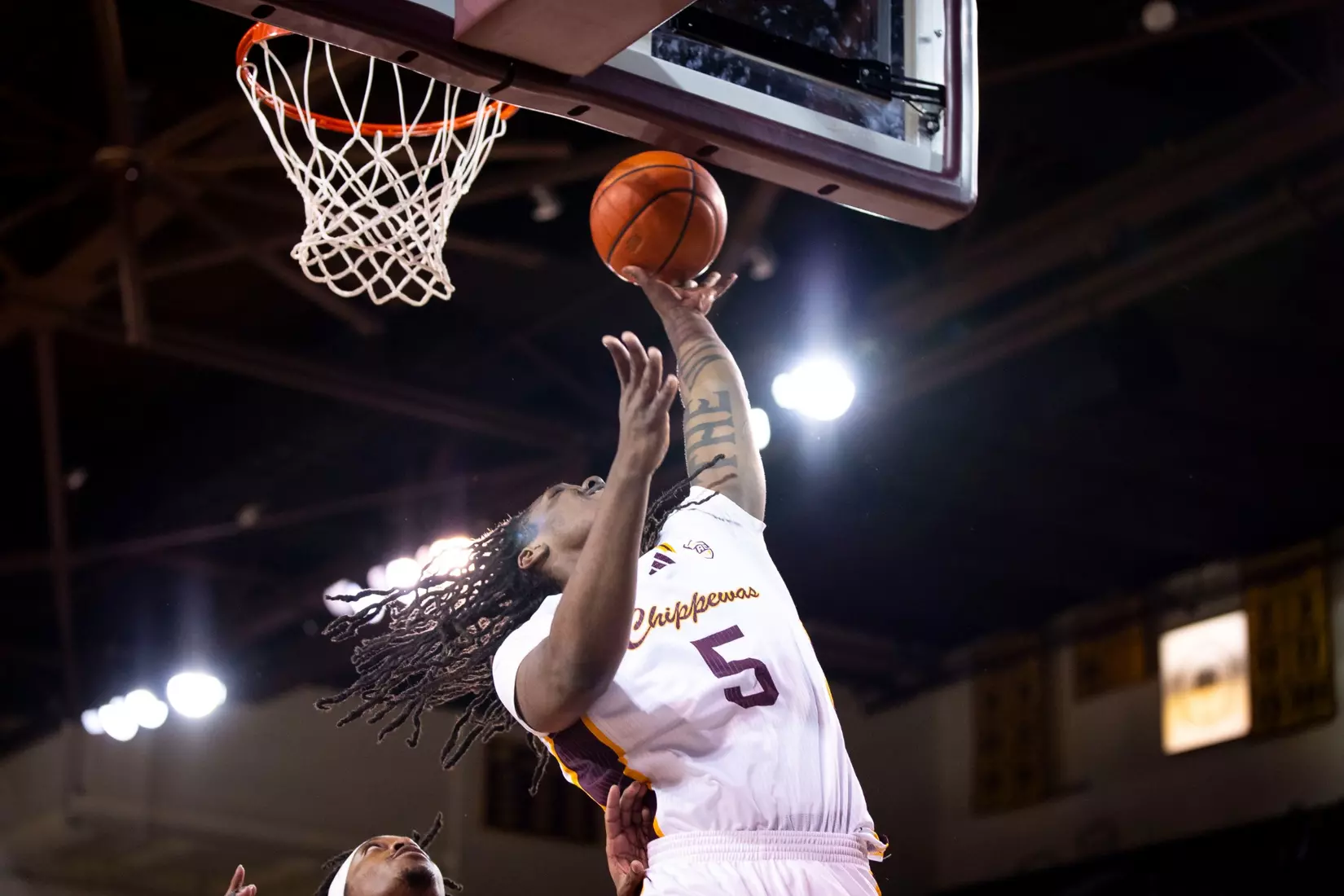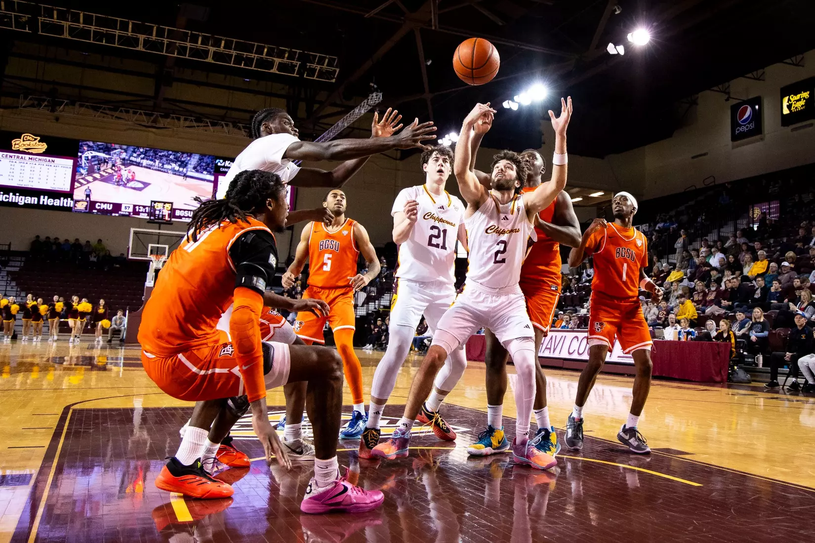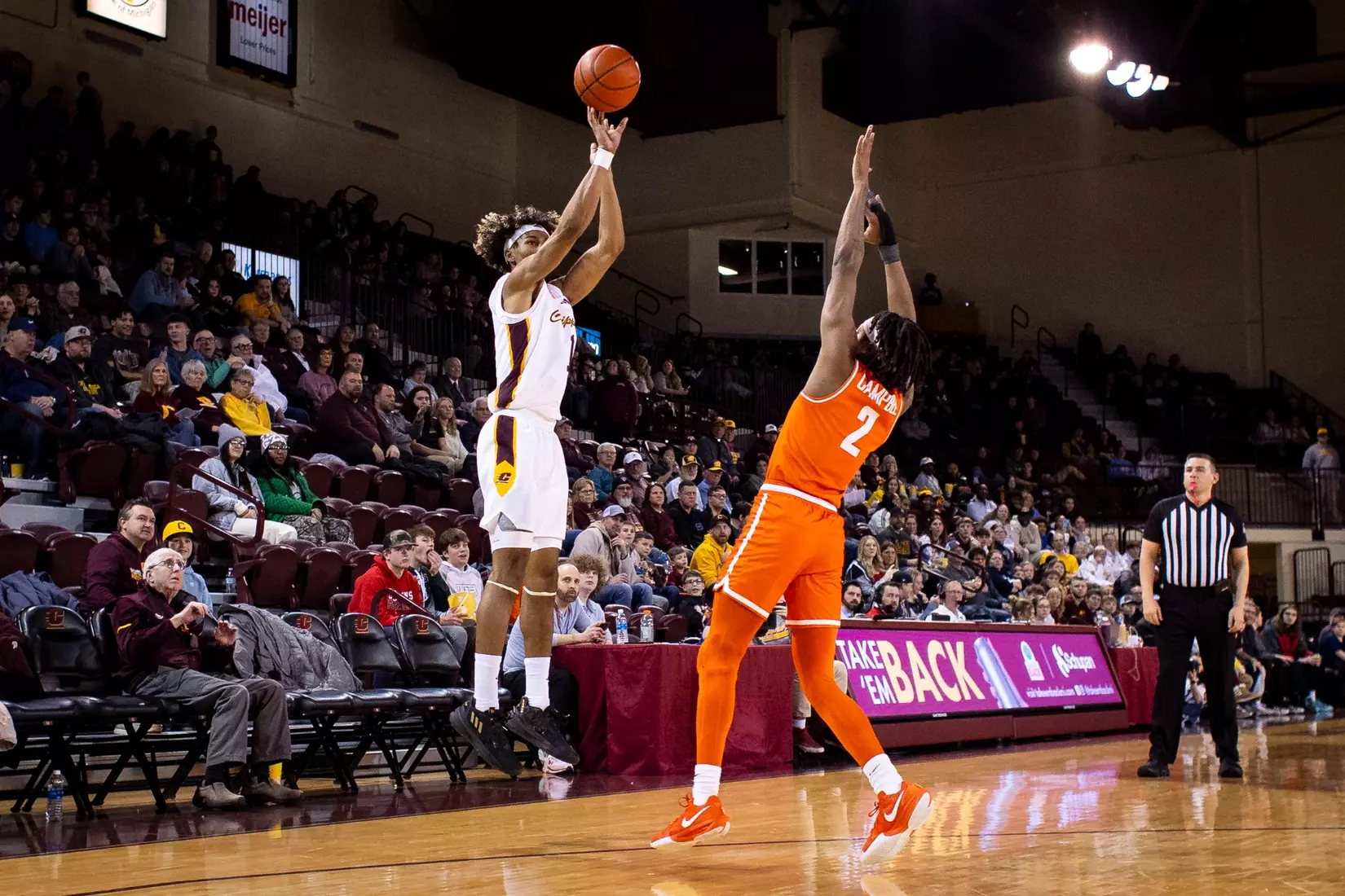 After a back-and-forth first 10 minutes, Central Michigan took the lead for the rest of the half and built a commanding 49-33 halftime lead while shooting 60 percent from the floor. CMU used an 8-0 run to take a 20-12 lead at the 11:28 mark. Cayden Vasko drained a 3-pointer for a 17-12 lead with 12:42 left in the first half, then Quentin Heady finished off a 3-ponit play. The Chippewas pushed their lead back to eight points at 23-15 on a 3-pointer by Kyler VanderJagt.