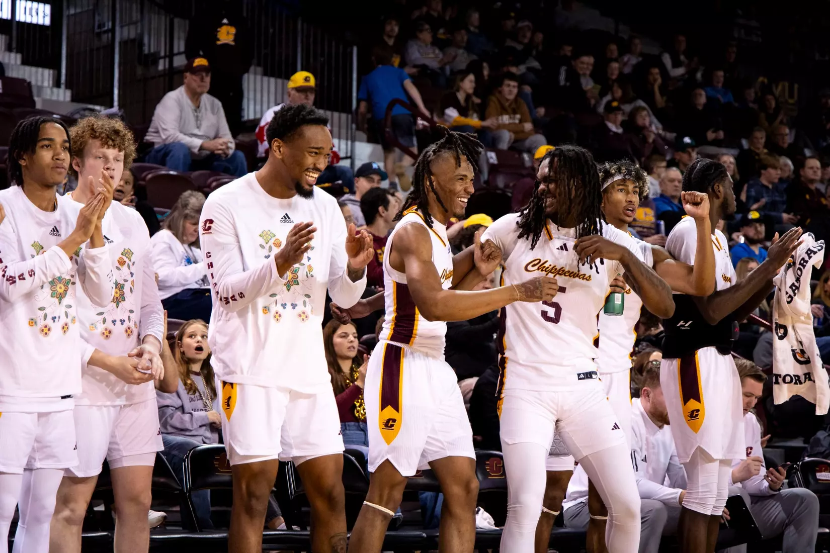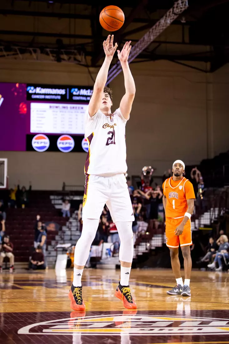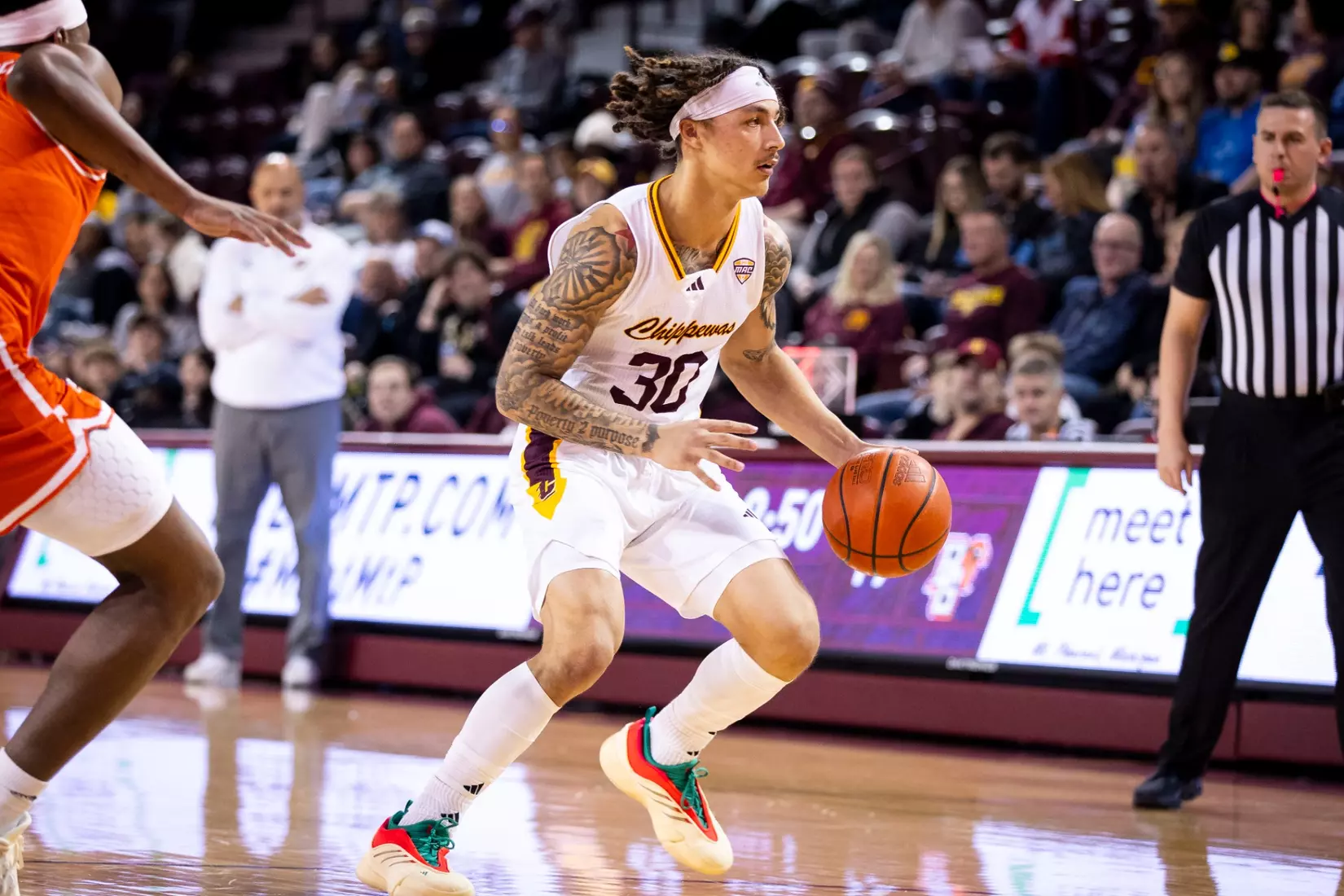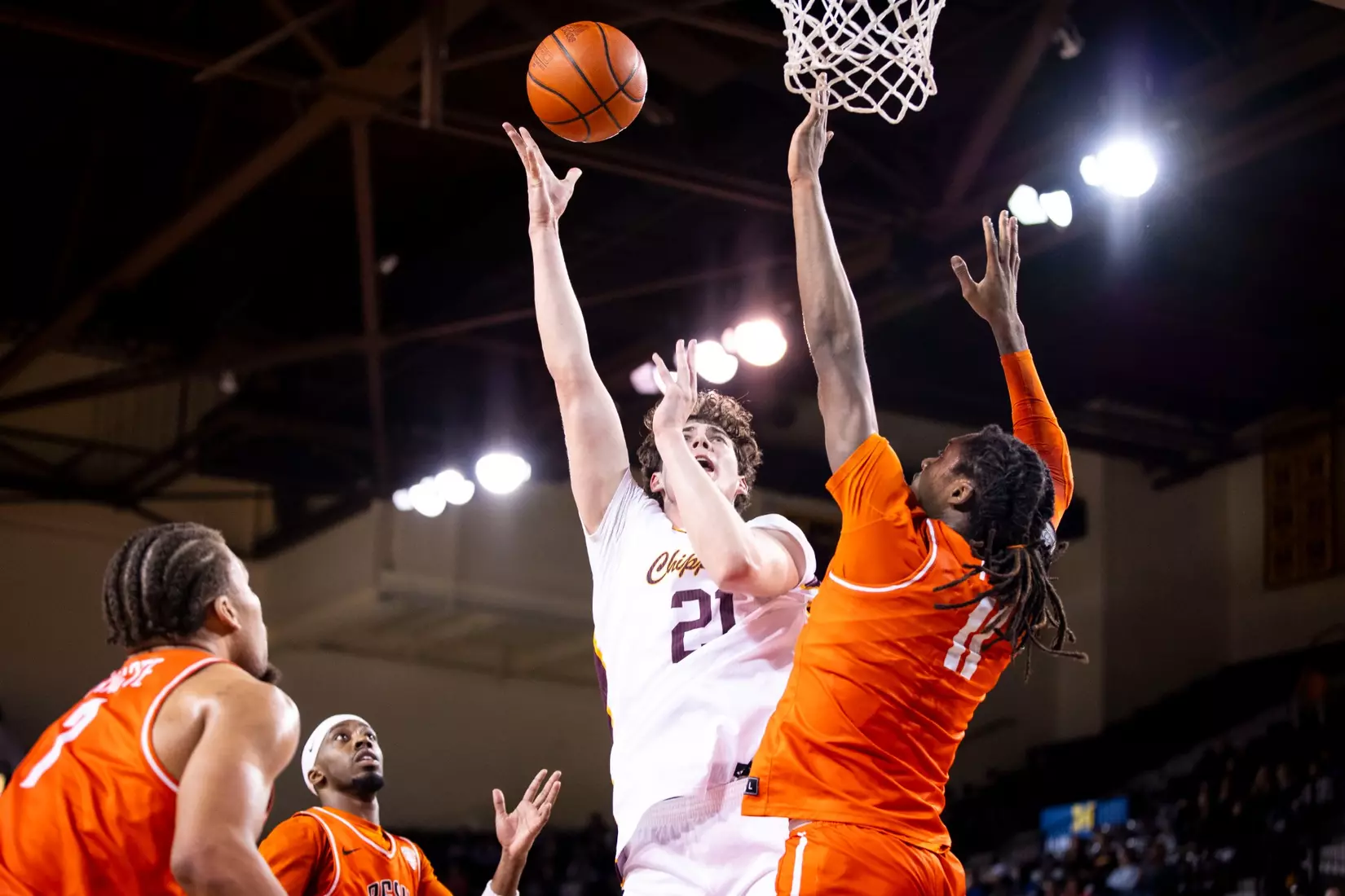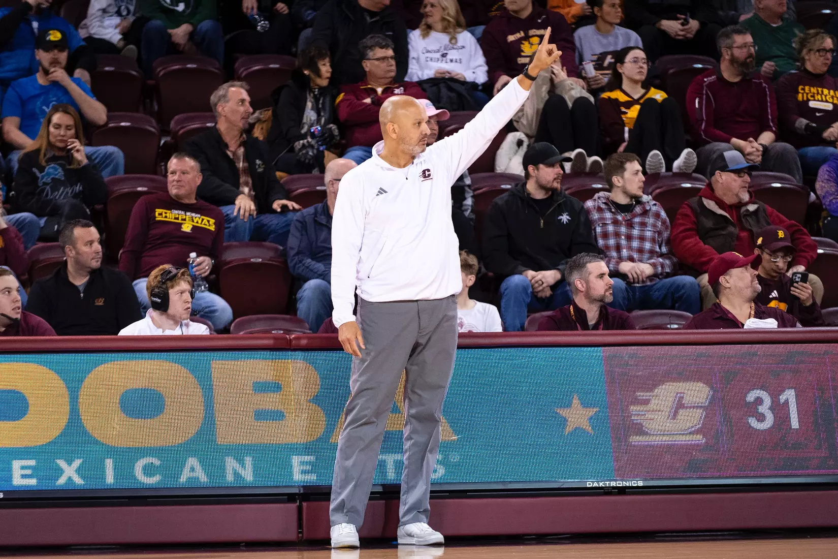 After a back-and-forth first 10 minutes, Central Michigan took the lead for the rest of the half and built a commanding 49-33 halftime lead while shooting 60 percent from the floor. CMU used an 8-0 run to take a 20-12 lead at the 11:28 mark. Cayden Vasko drained a 3-pointer for a 17-12 lead with 12:42 left in the first half, then Quentin Heady finished off a 3-ponit play. The Chippewas pushed their lead back to eight points at 23-15 on a 3-pointer by Kyler VanderJagt.