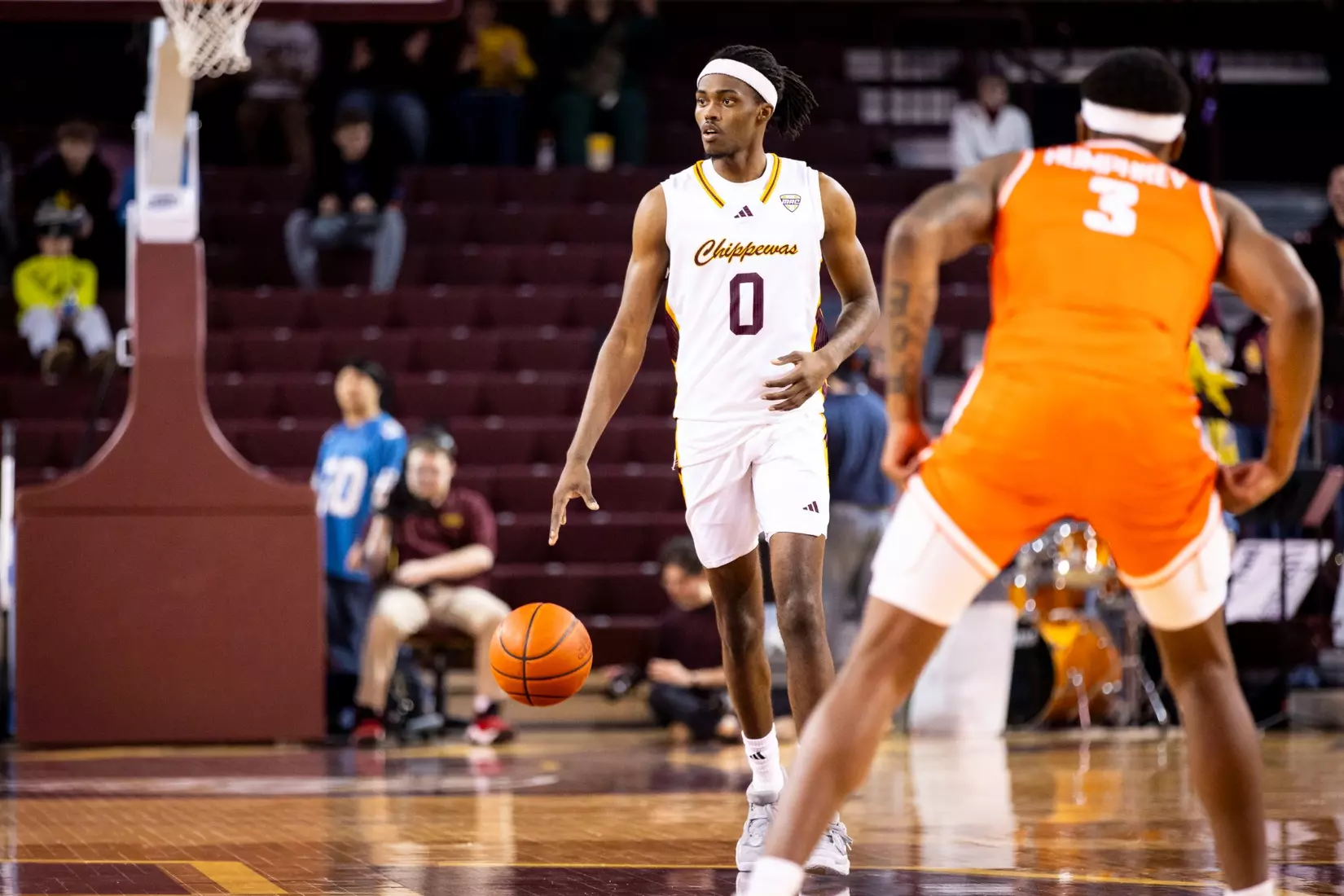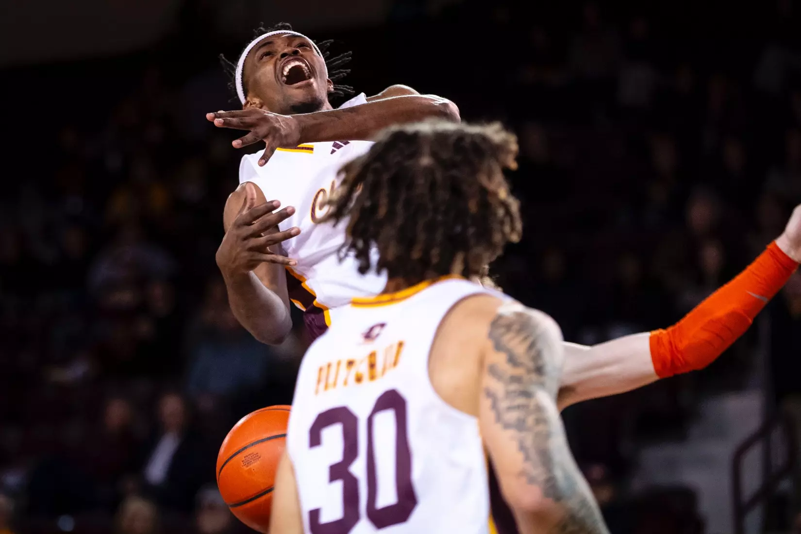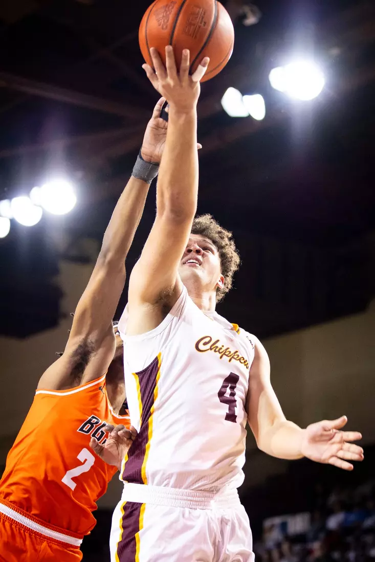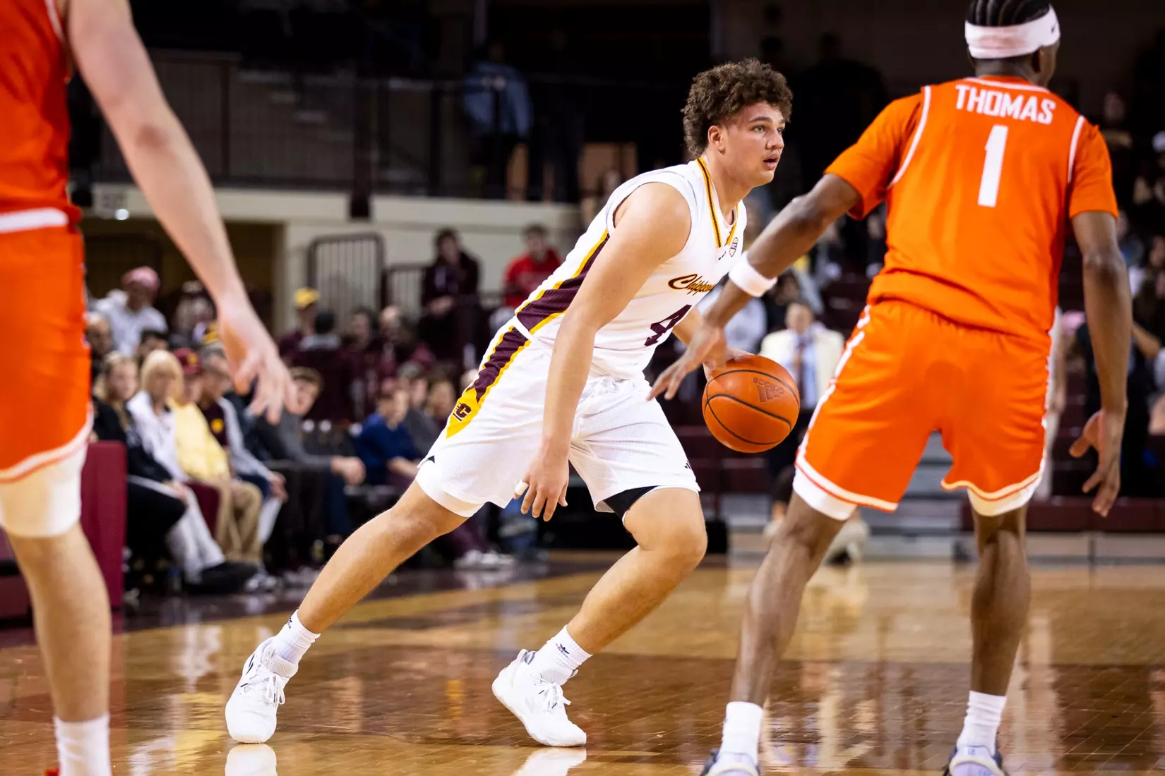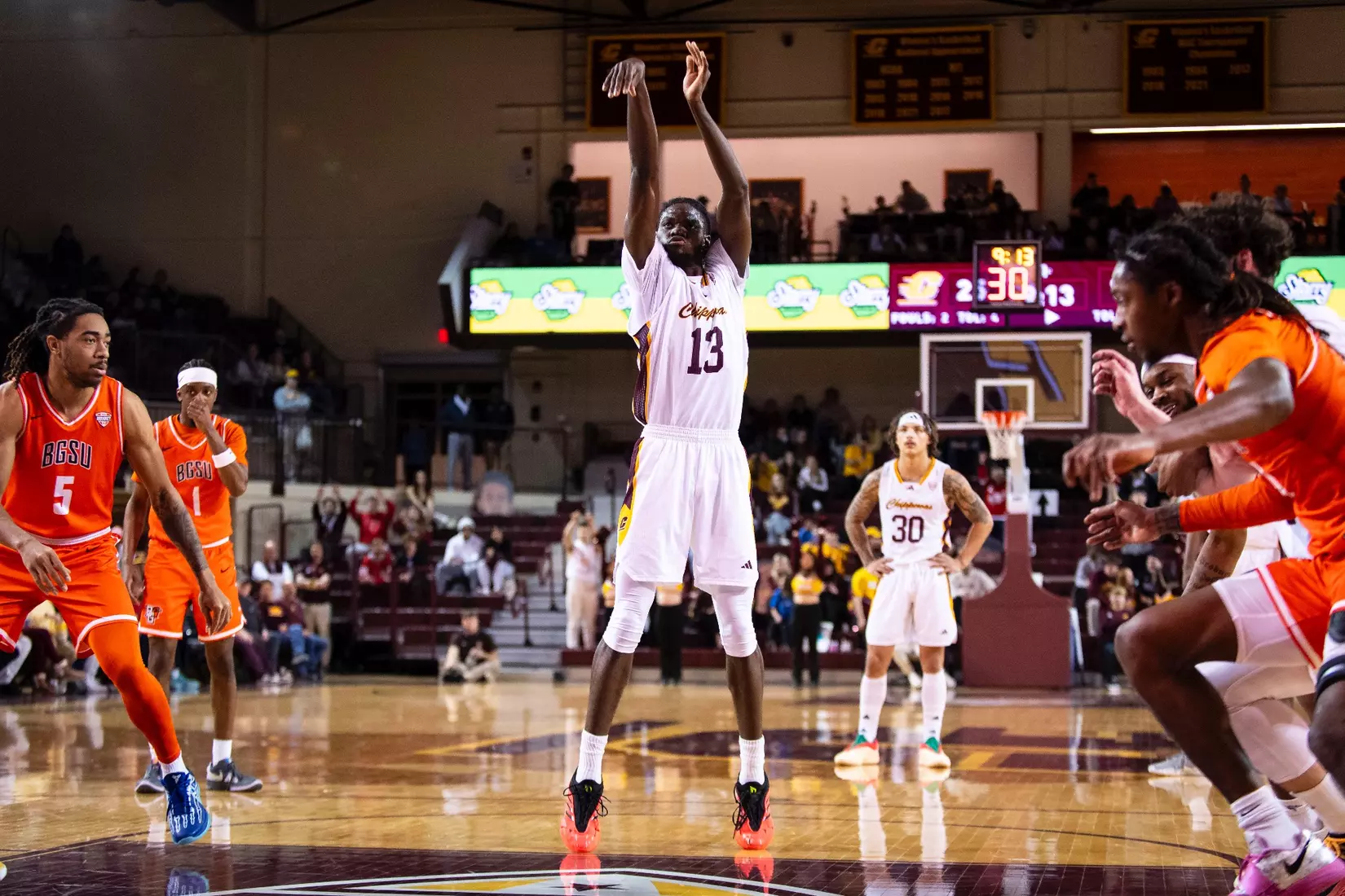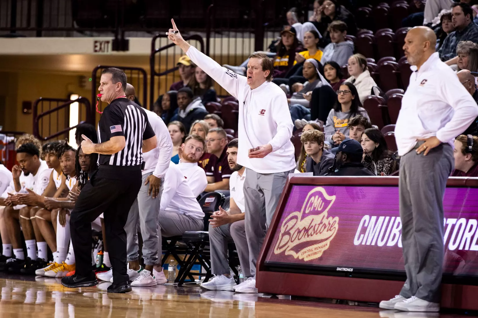 After a back-and-forth first 10 minutes, Central Michigan took the lead for the rest of the half and built a commanding 49-33 halftime lead while shooting 60 percent from the floor. CMU used an 8-0 run to take a 20-12 lead at the 11:28 mark. Cayden Vasko drained a 3-pointer for a 17-12 lead with 12:42 left in the first half, then Quentin Heady finished off a 3-ponit play. The Chippewas pushed their lead back to eight points at 23-15 on a 3-pointer by Kyler VanderJagt.