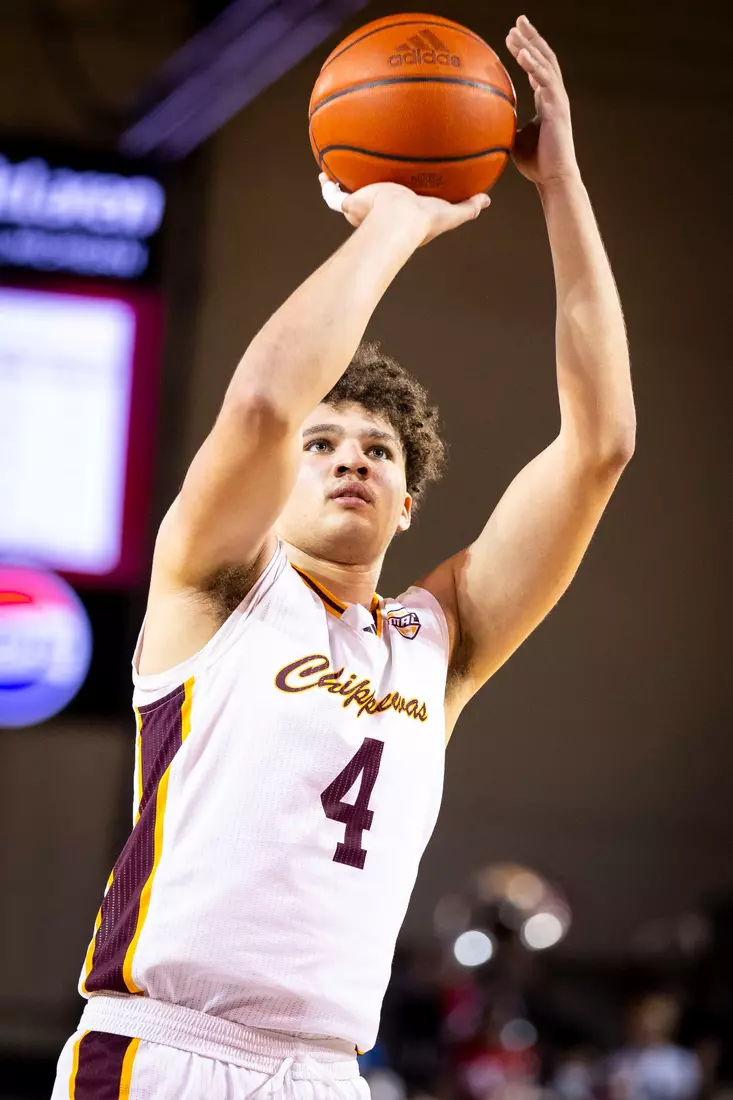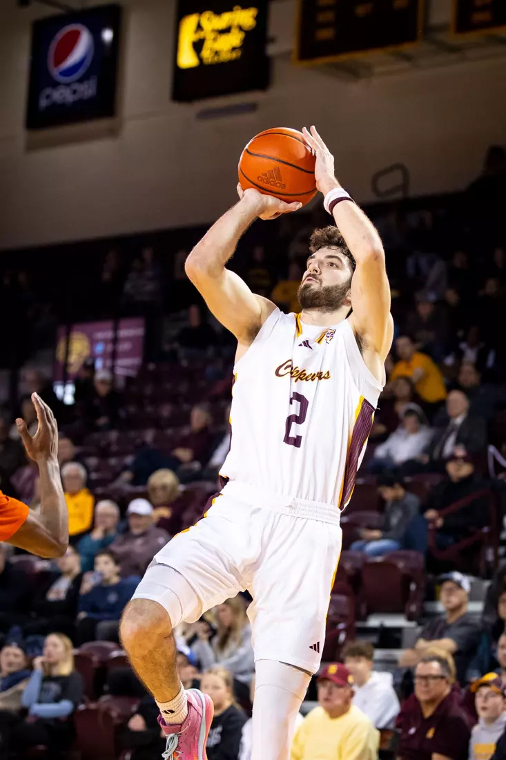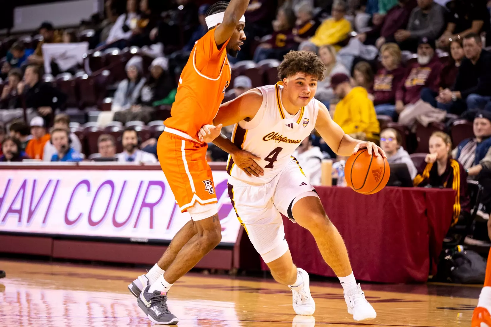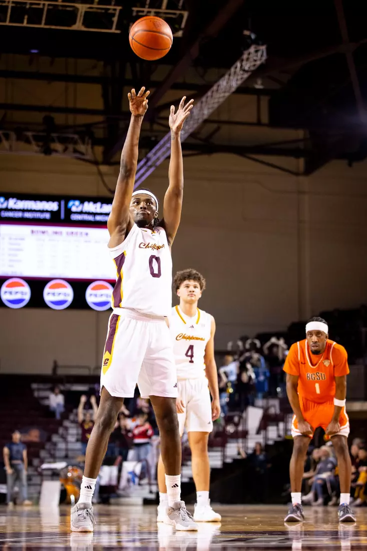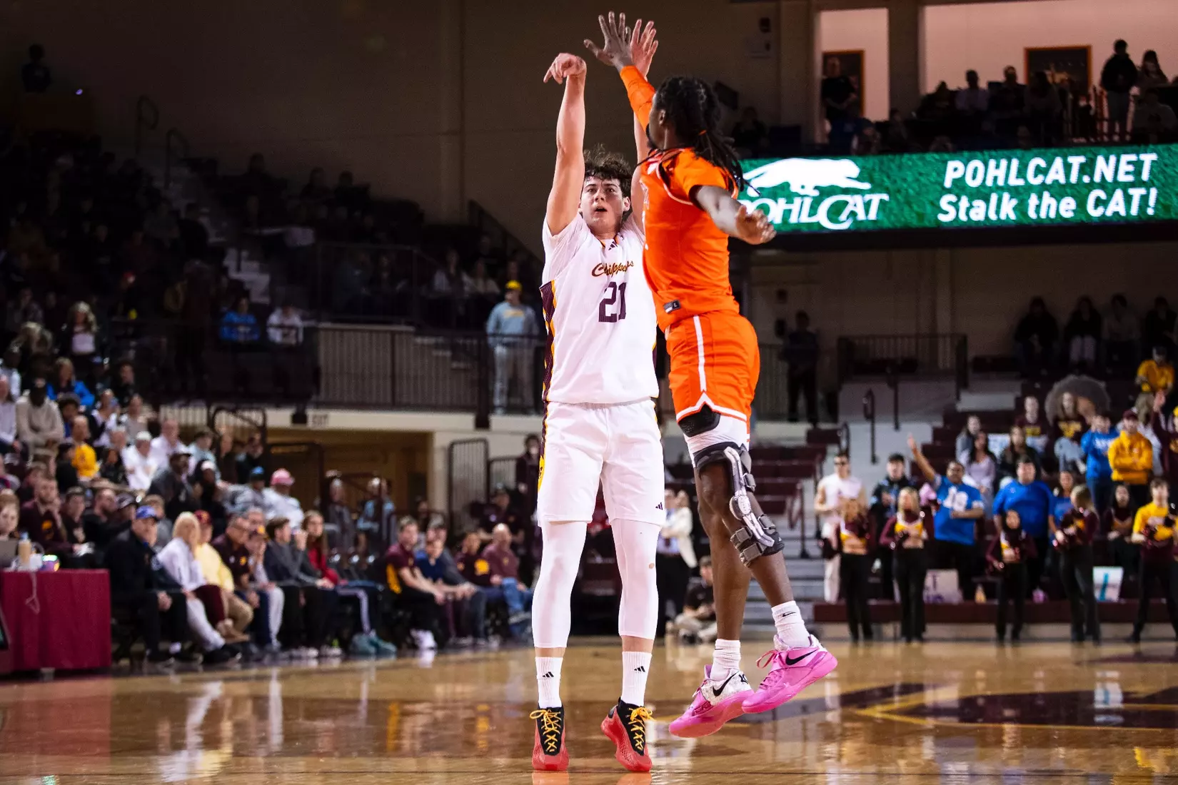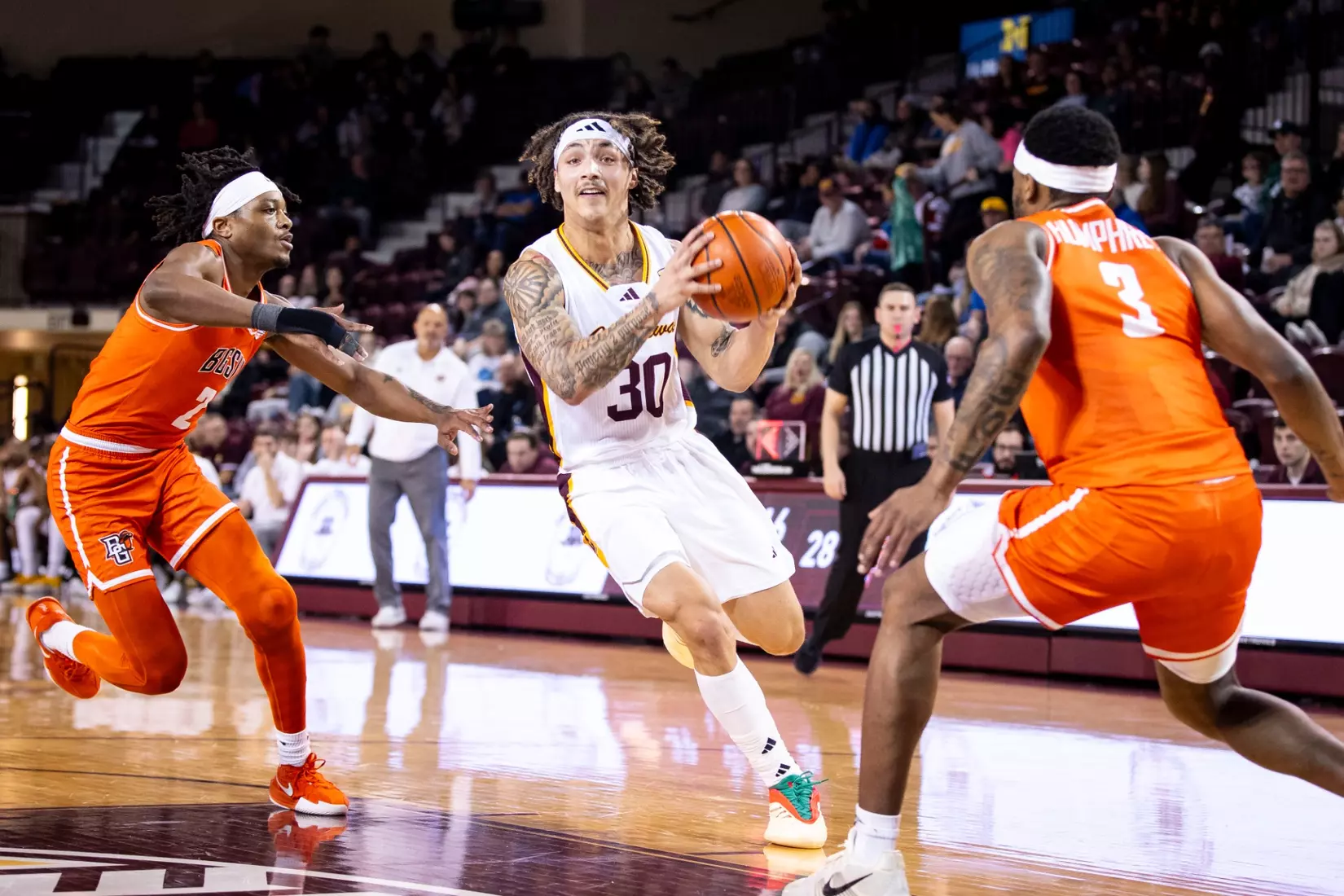 After a back-and-forth first 10 minutes, Central Michigan took the lead for the rest of the half and built a commanding 49-33 halftime lead while shooting 60 percent from the floor. CMU used an 8-0 run to take a 20-12 lead at the 11:28 mark. Cayden Vasko drained a 3-pointer for a 17-12 lead with 12:42 left in the first half, then Quentin Heady finished off a 3-ponit play. The Chippewas pushed their lead back to eight points at 23-15 on a 3-pointer by Kyler VanderJagt.