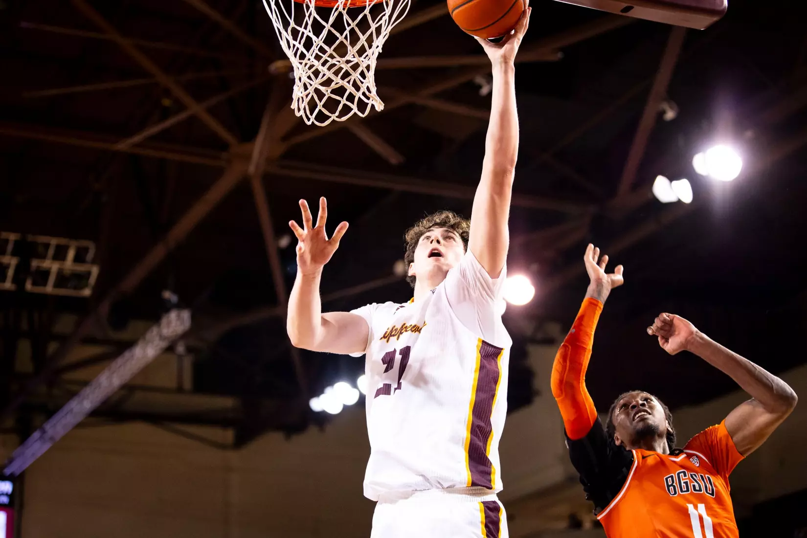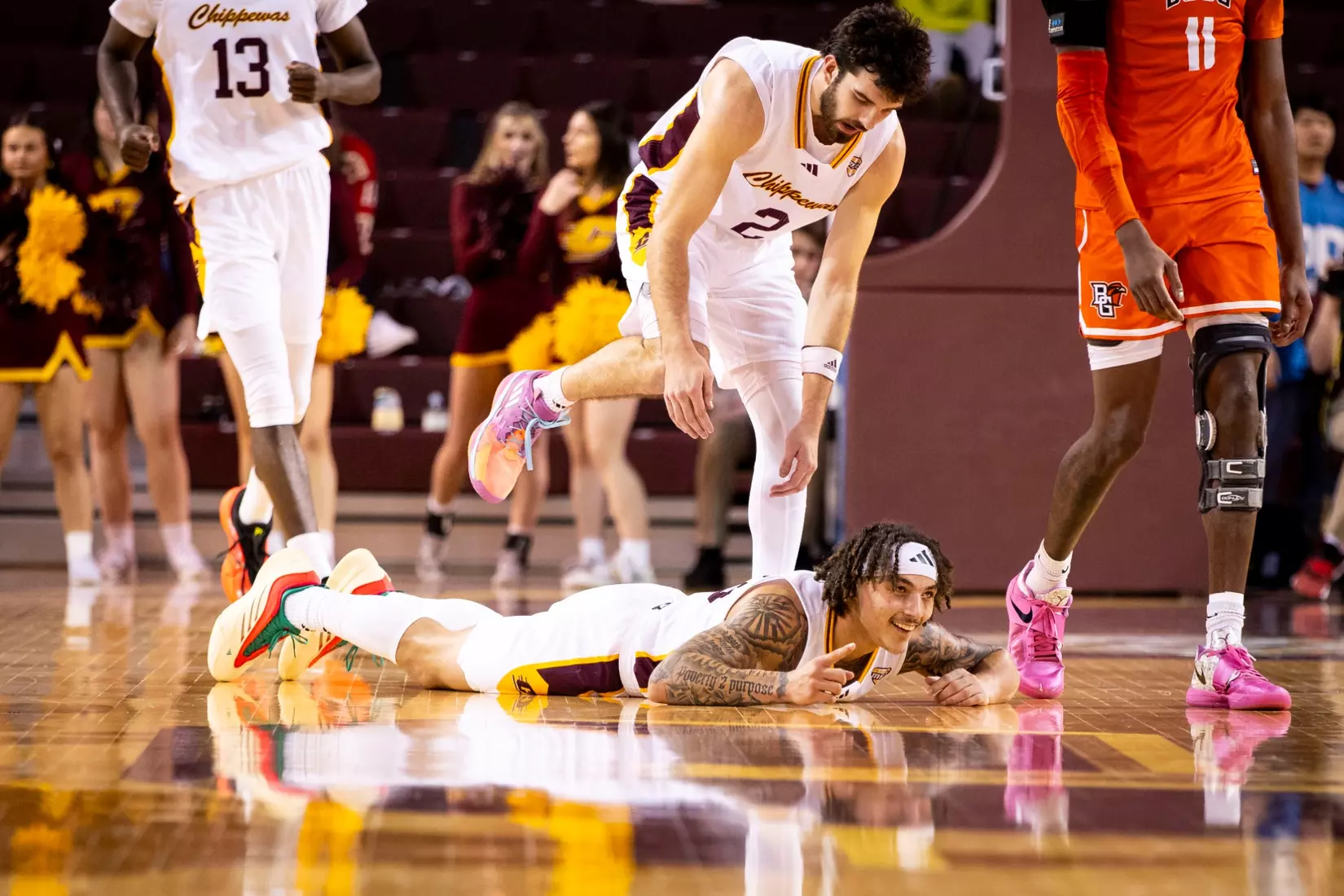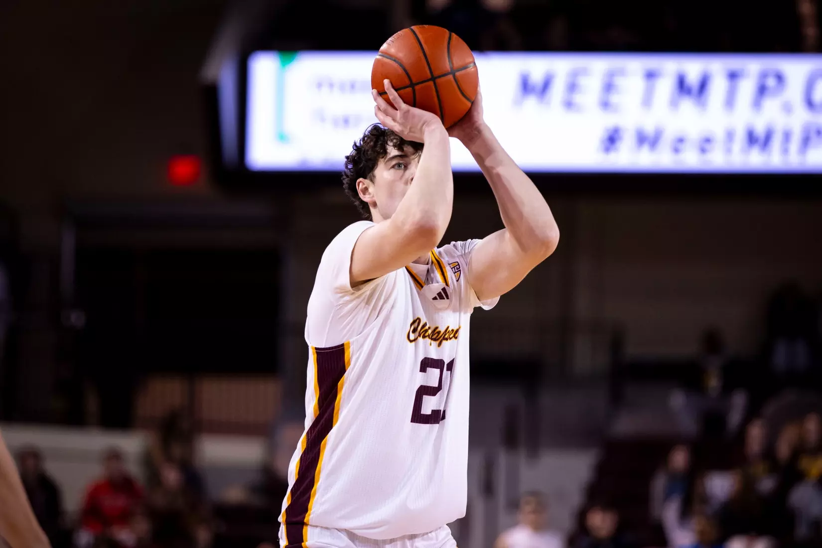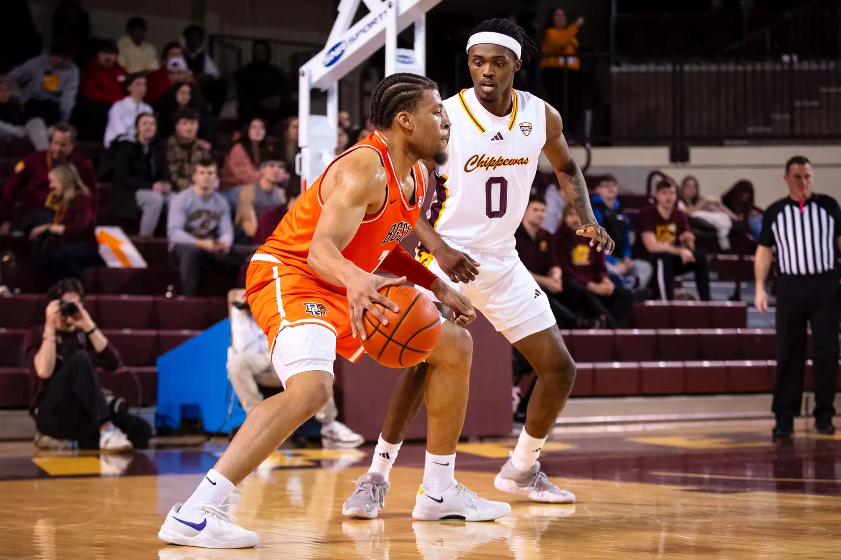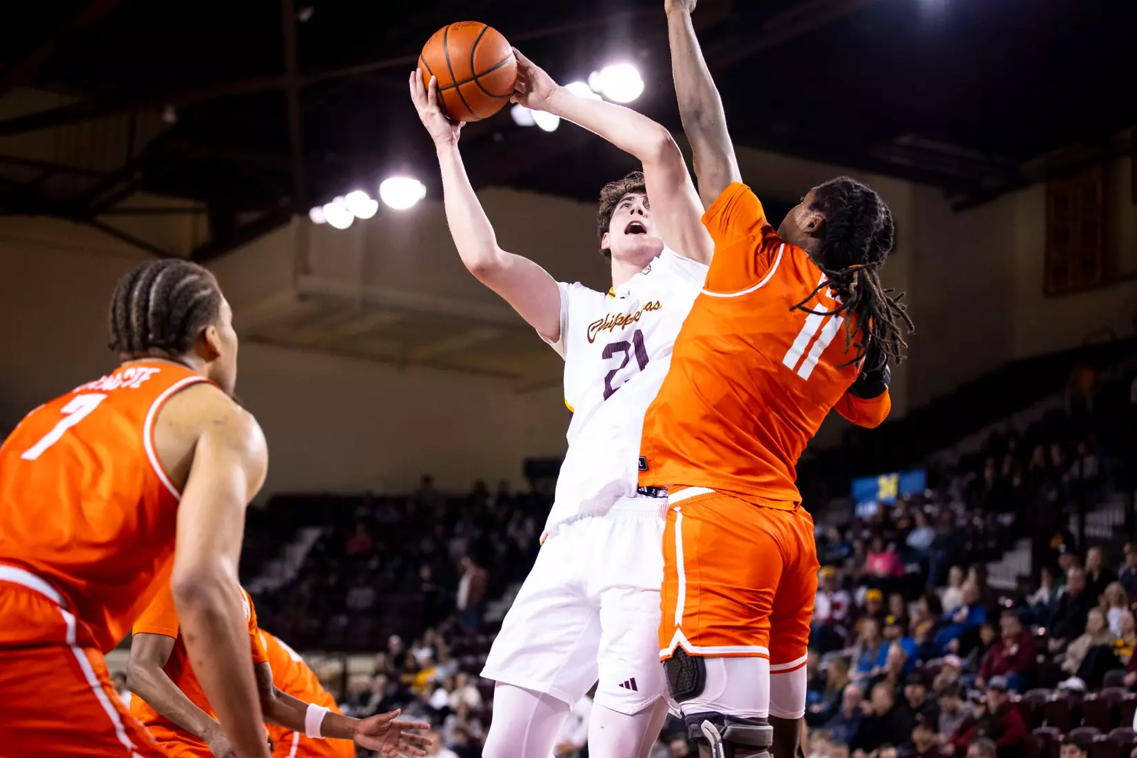 After a back-and-forth first 10 minutes, Central Michigan took the lead for the rest of the half and built a commanding 49-33 halftime lead while shooting 60 percent from the floor. CMU used an 8-0 run to take a 20-12 lead at the 11:28 mark. Cayden Vasko drained a 3-pointer for a 17-12 lead with 12:42 left in the first half, then Quentin Heady finished off a 3-ponit play. The Chippewas pushed their lead back to eight points at 23-15 on a 3-pointer by Kyler VanderJagt.