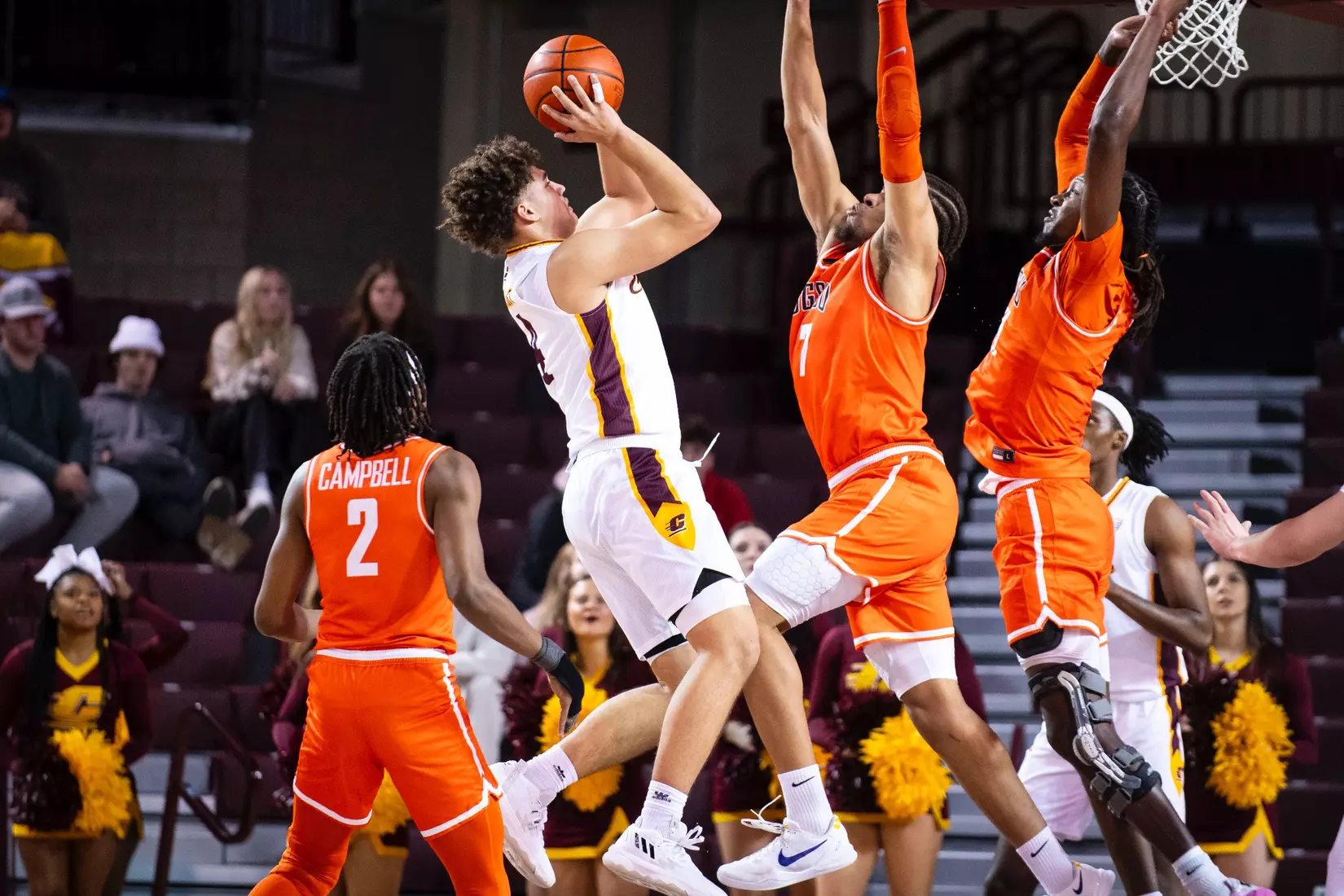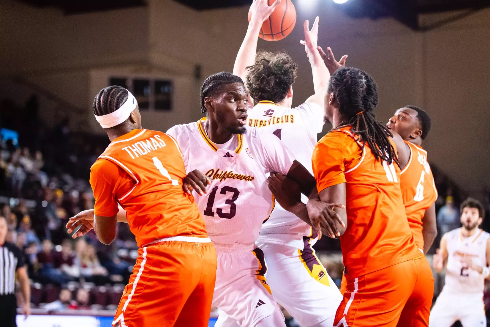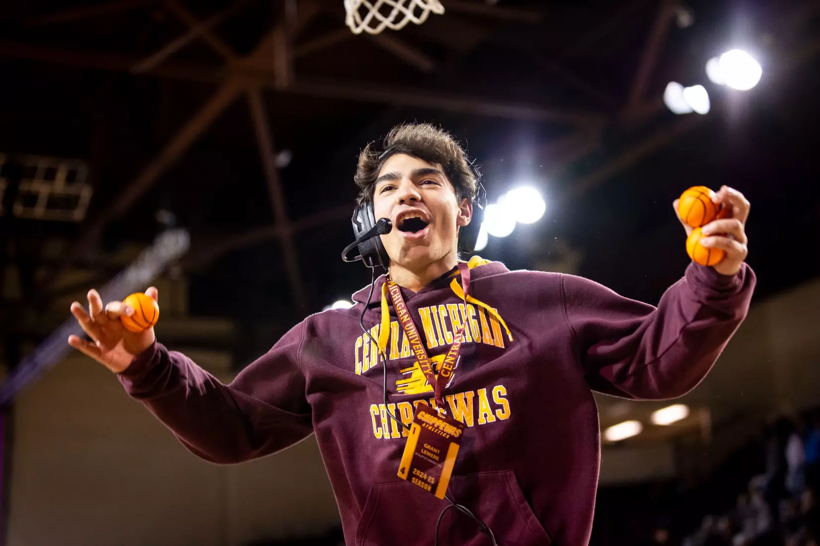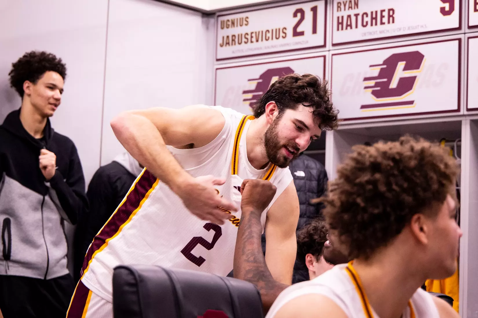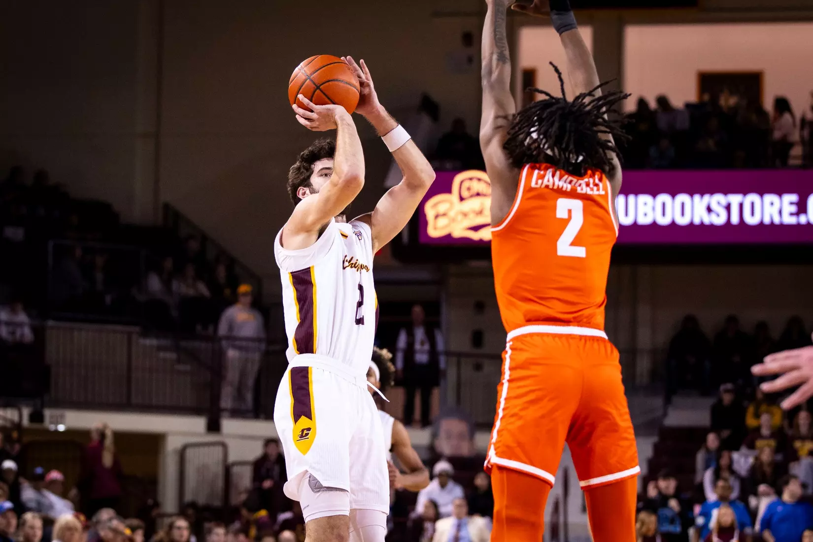 After a back-and-forth first 10 minutes, Central Michigan took the lead for the rest of the half and built a commanding 49-33 halftime lead while shooting 60 percent from the floor. CMU used an 8-0 run to take a 20-12 lead at the 11:28 mark. Cayden Vasko drained a 3-pointer for a 17-12 lead with 12:42 left in the first half, then Quentin Heady finished off a 3-ponit play. The Chippewas pushed their lead back to eight points at 23-15 on a 3-pointer by Kyler VanderJagt.