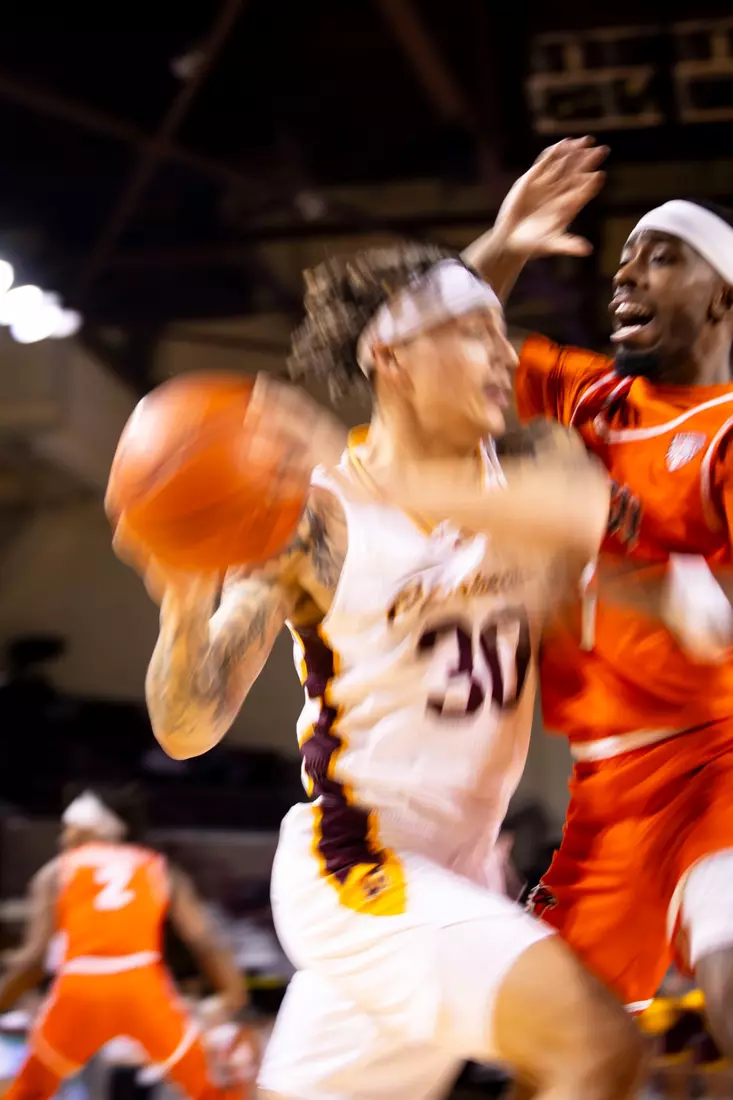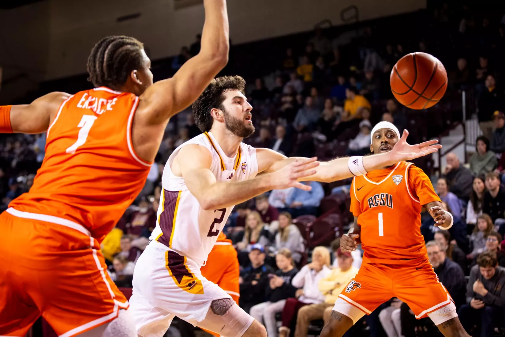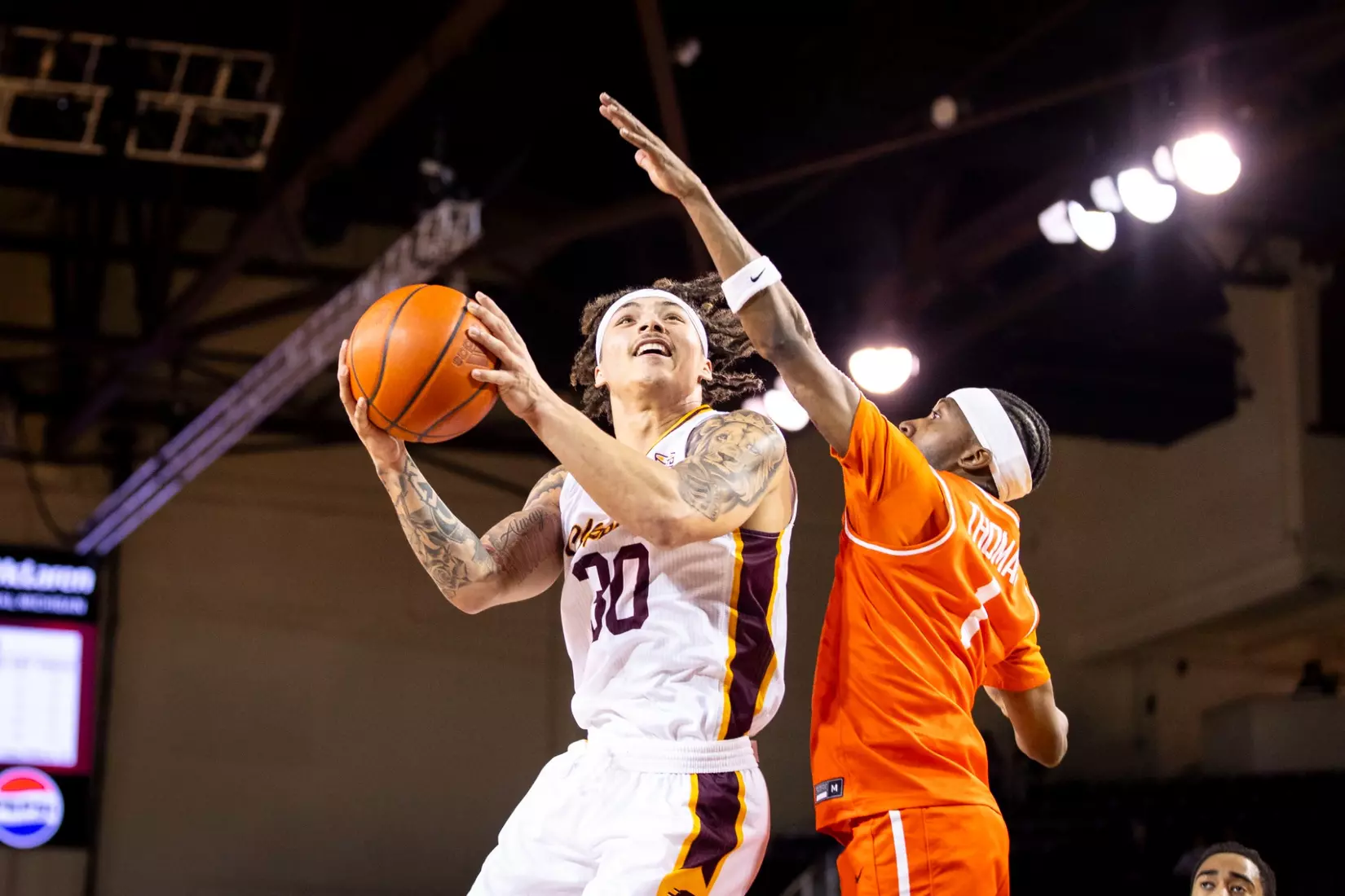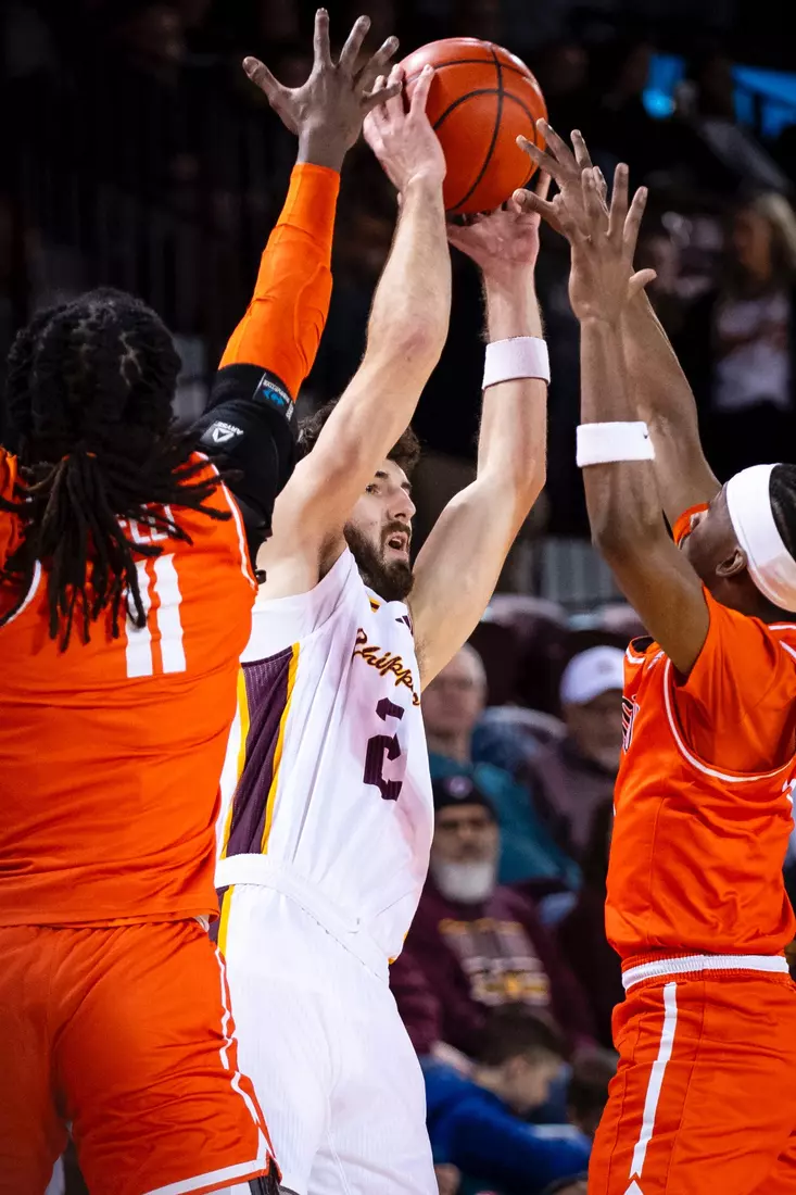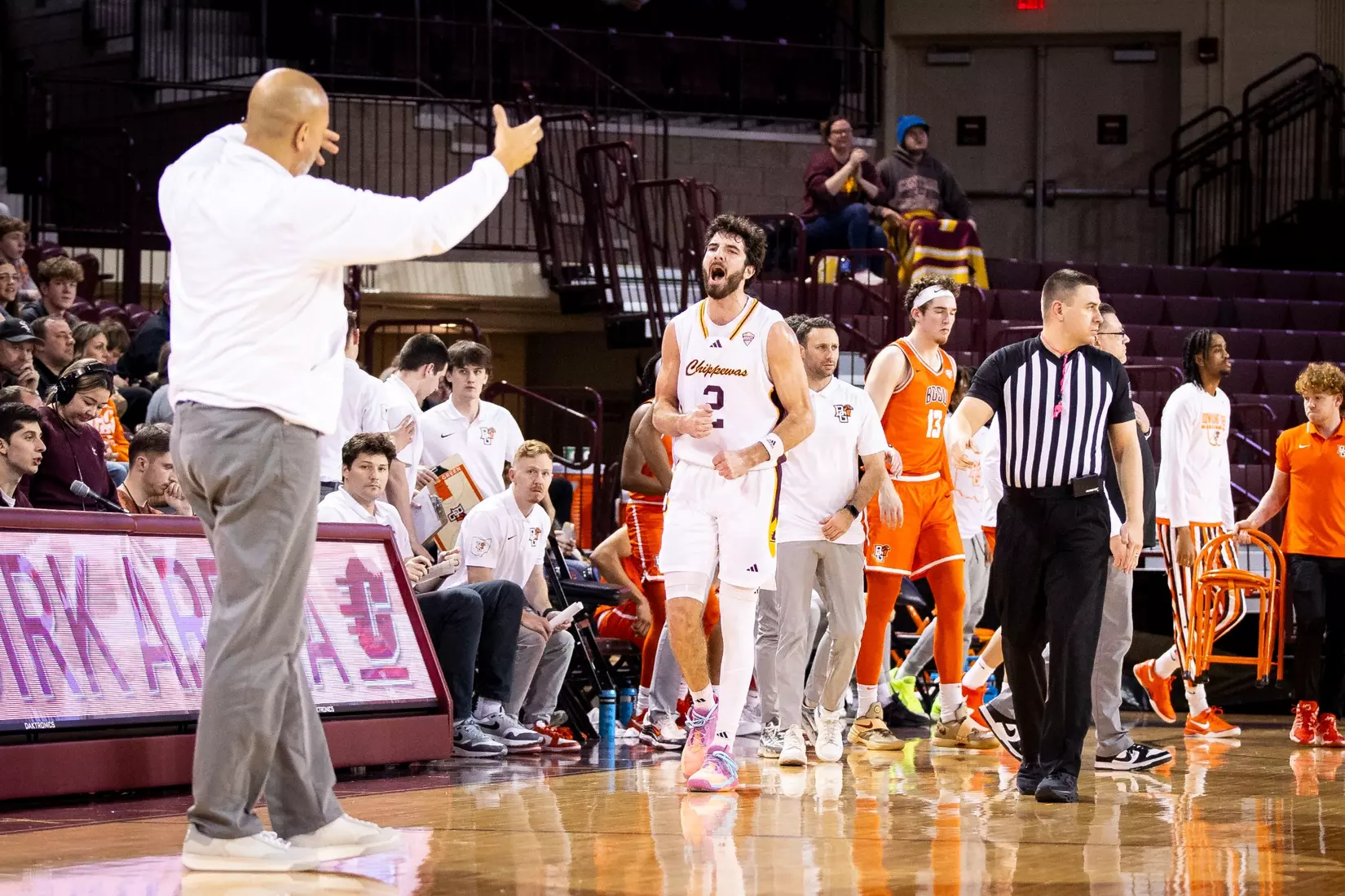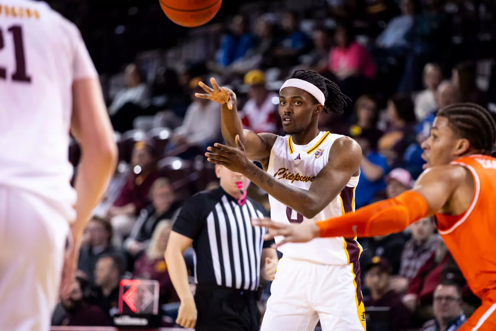 After a back-and-forth first 10 minutes, Central Michigan took the lead for the rest of the half and built a commanding 49-33 halftime lead while shooting 60 percent from the floor. CMU used an 8-0 run to take a 20-12 lead at the 11:28 mark. Cayden Vasko drained a 3-pointer for a 17-12 lead with 12:42 left in the first half, then Quentin Heady finished off a 3-ponit play. The Chippewas pushed their lead back to eight points at 23-15 on a 3-pointer by Kyler VanderJagt.
