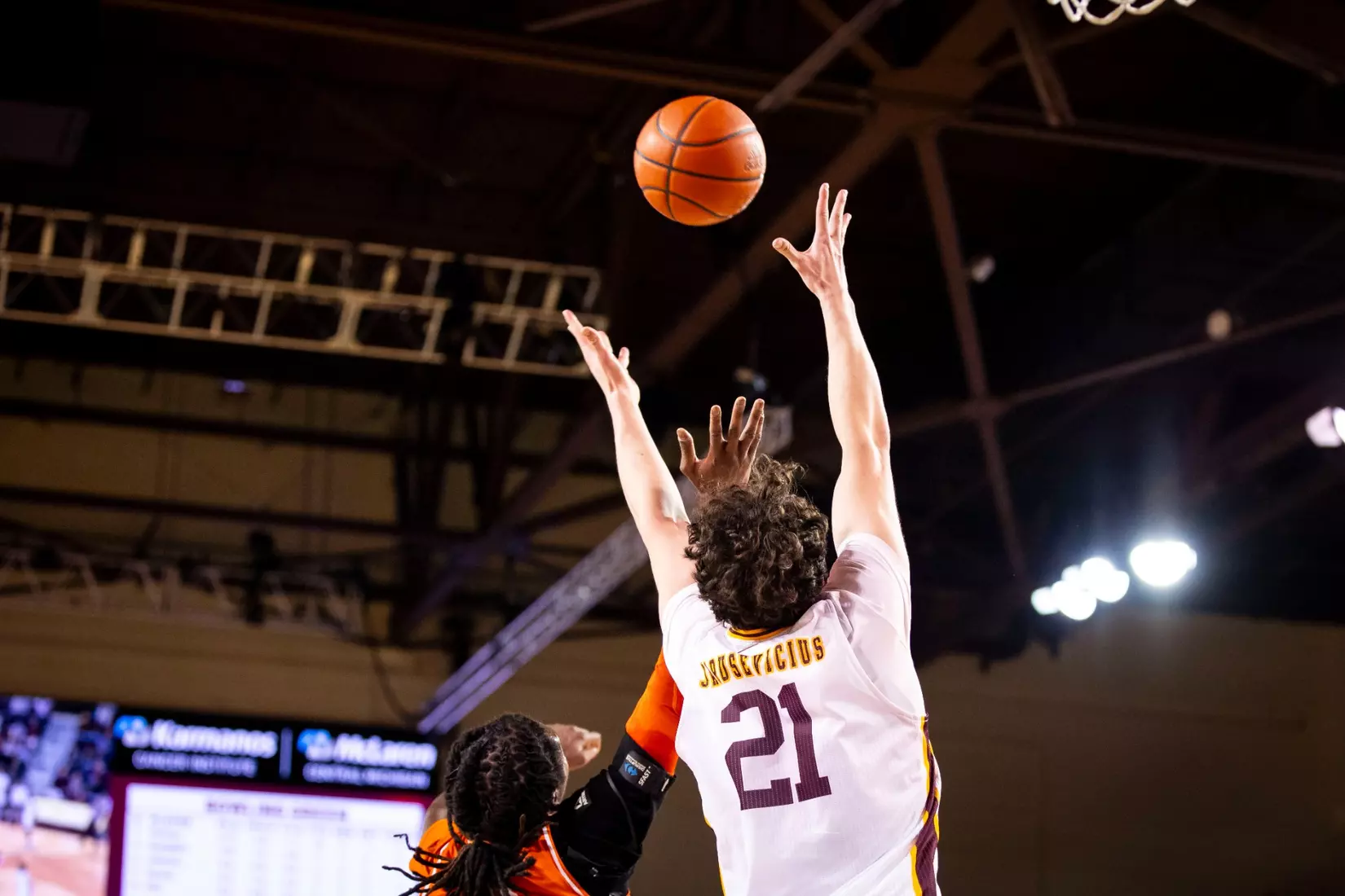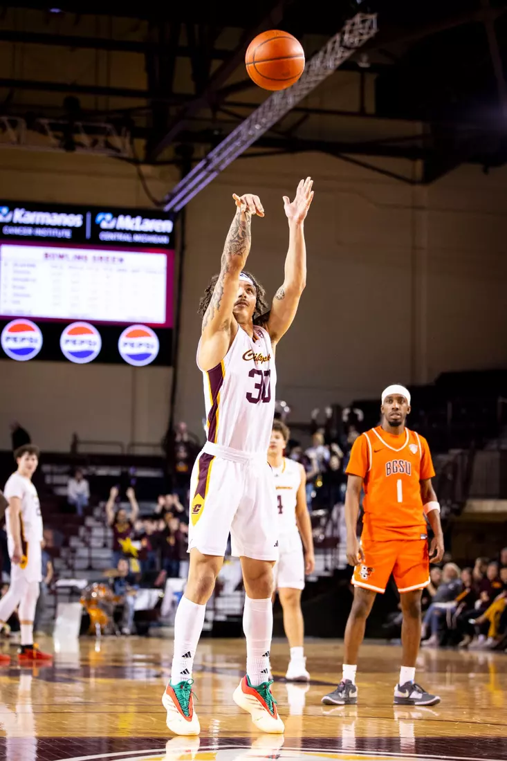 MOUNT PLEASANT, Mich.—Kyler VanderJagt registered career-highs for scoring (25 points) and 3-pointers made (six) and Ugnius Jarusevicius returned to the lineup and notched his fourth double-double of the season with 21 points and a game-high 12 rebounds as Central Michigan rolled to a 90-71 men's basketball win over Bowling Green Saturday evening at McGuirk Arena.