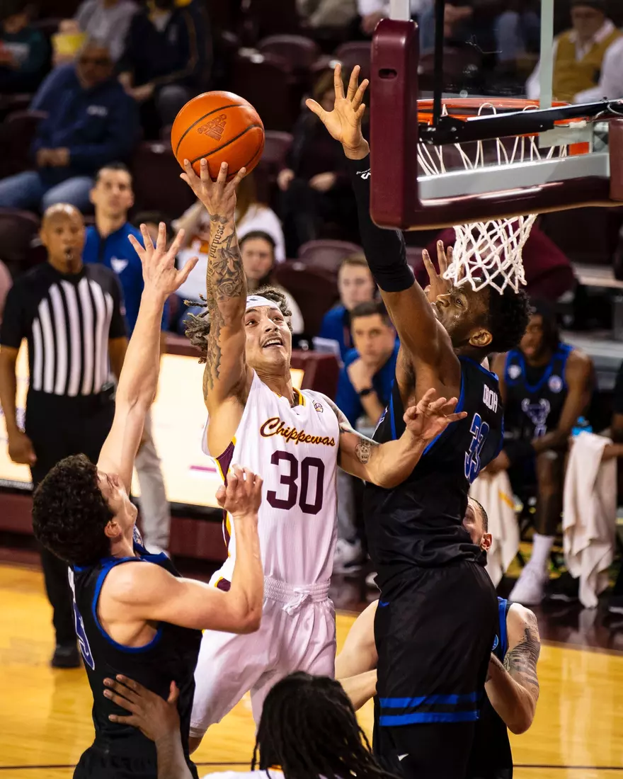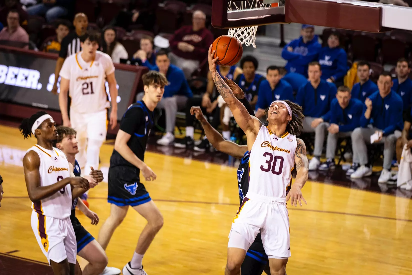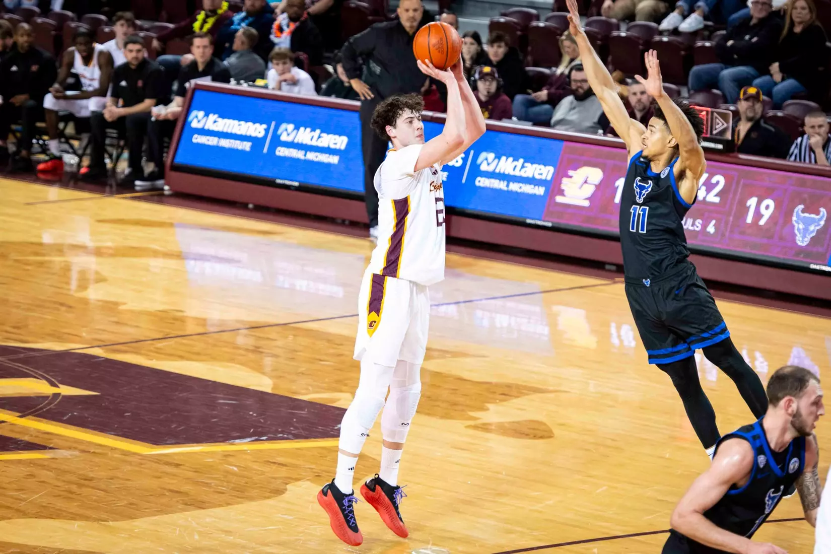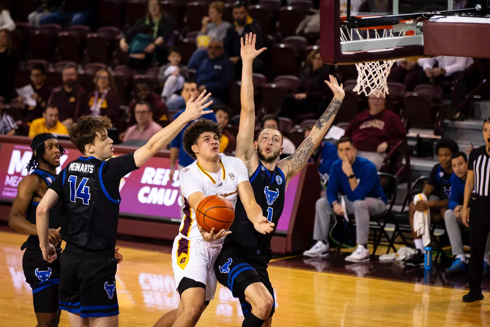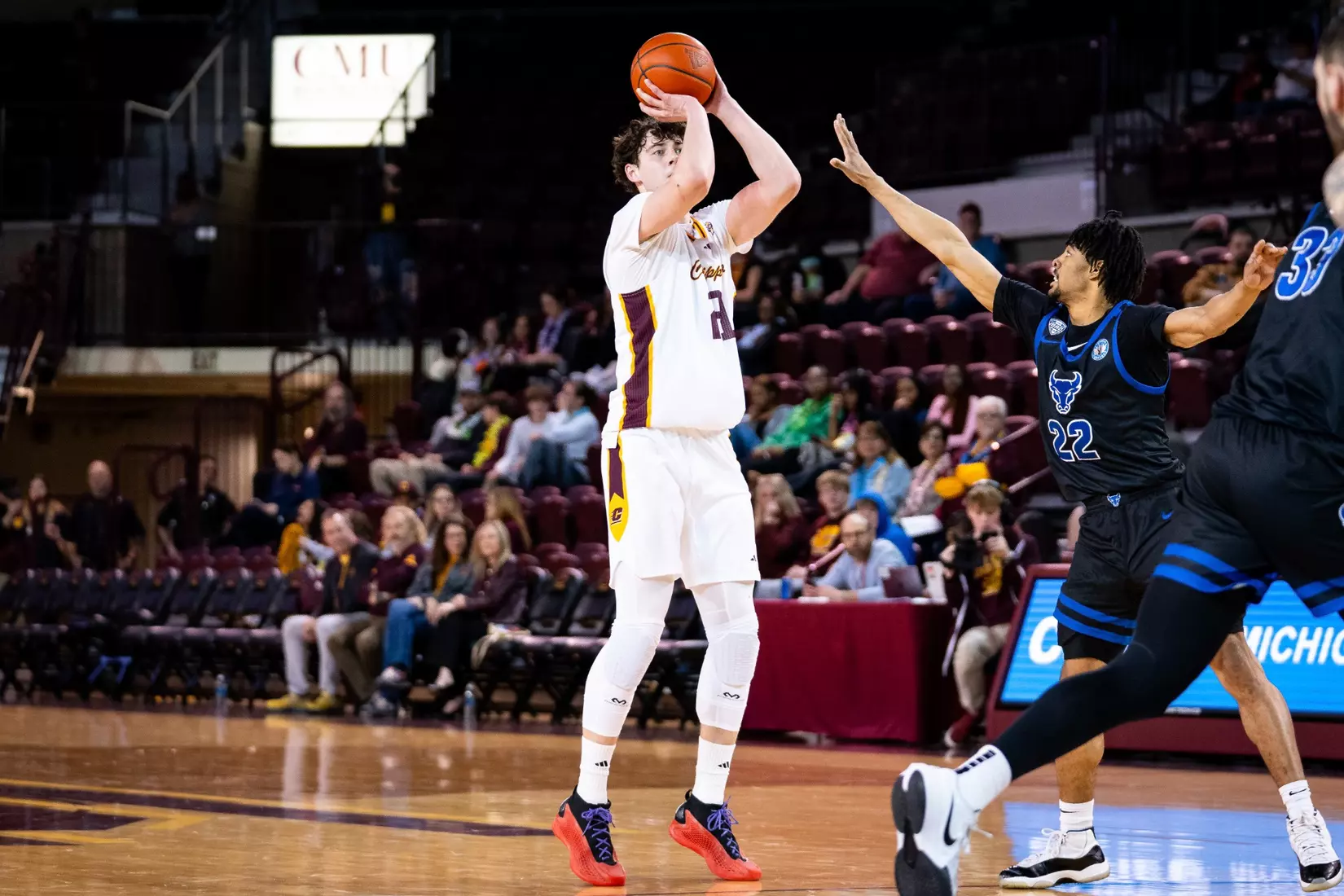 After trailing for the majority of the game and Buffalo leading by its largest margin of the game, eight points (50-42) with 11:13 to go, Central Michigan outscored the Bulls 11-2 over a three-minute second half span to tie the game at 52-52 with 8:22 to play on a Pritchard layup. Minutes later, the Chippewas finally took the lead at 57-55 when Cayden Vasko hit a 3-pointer.