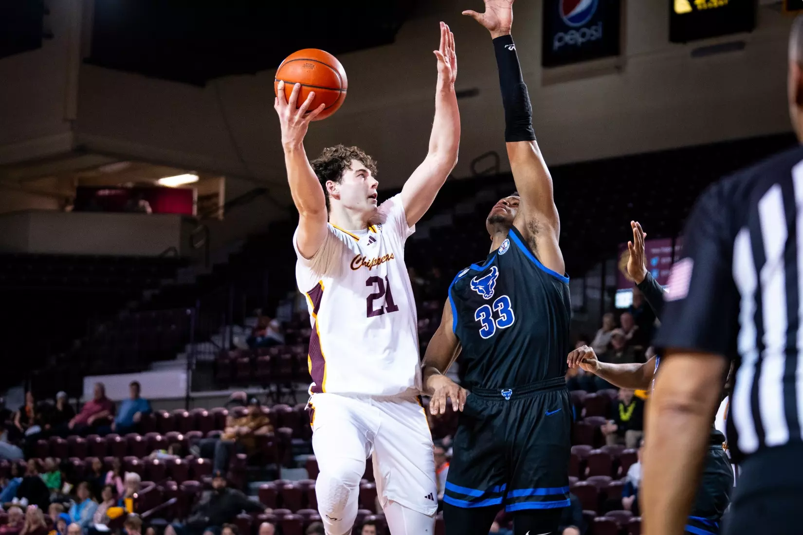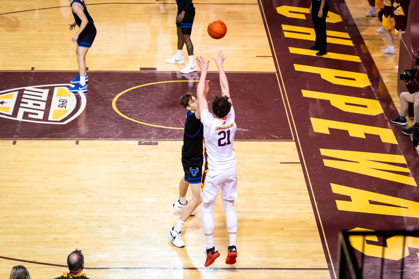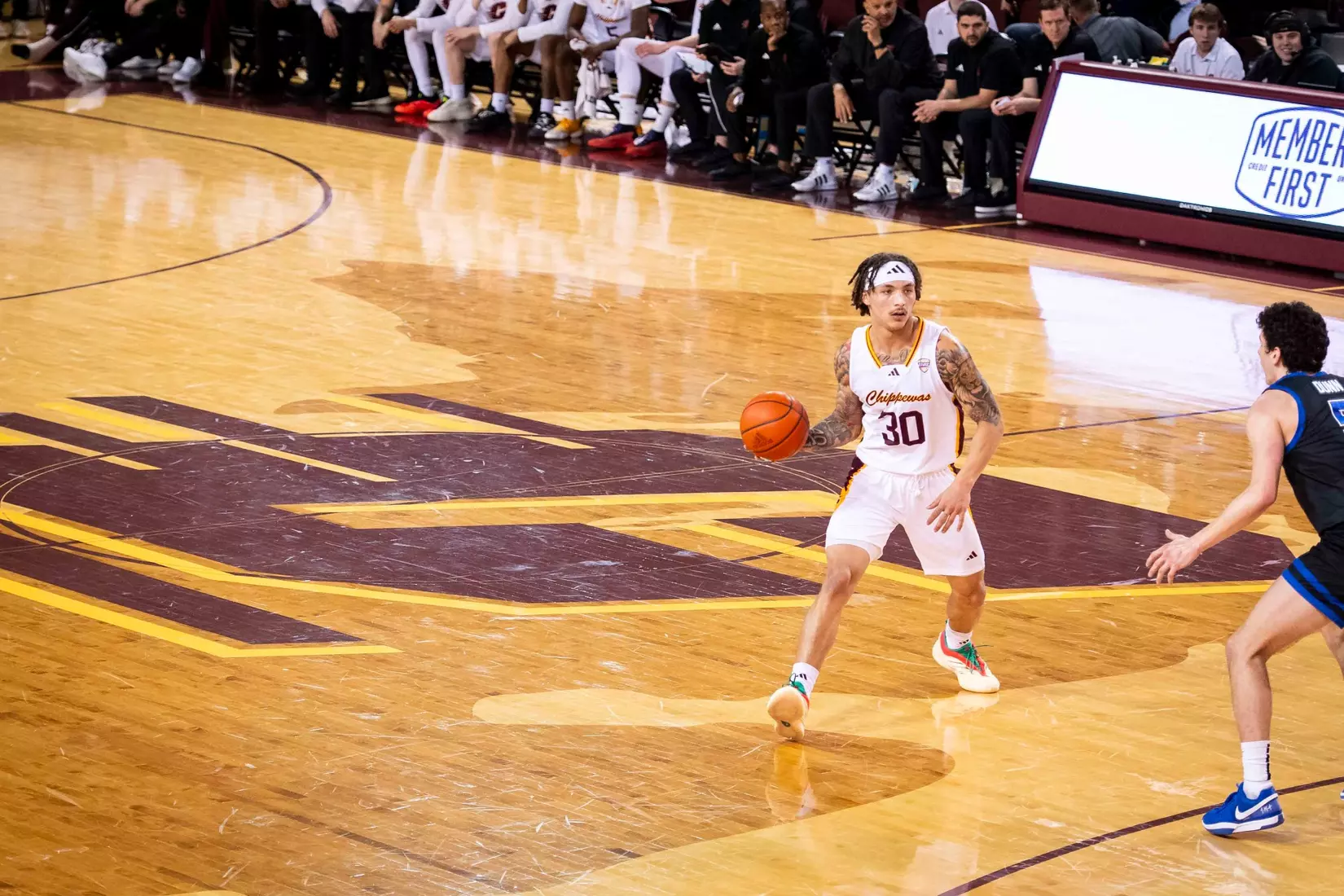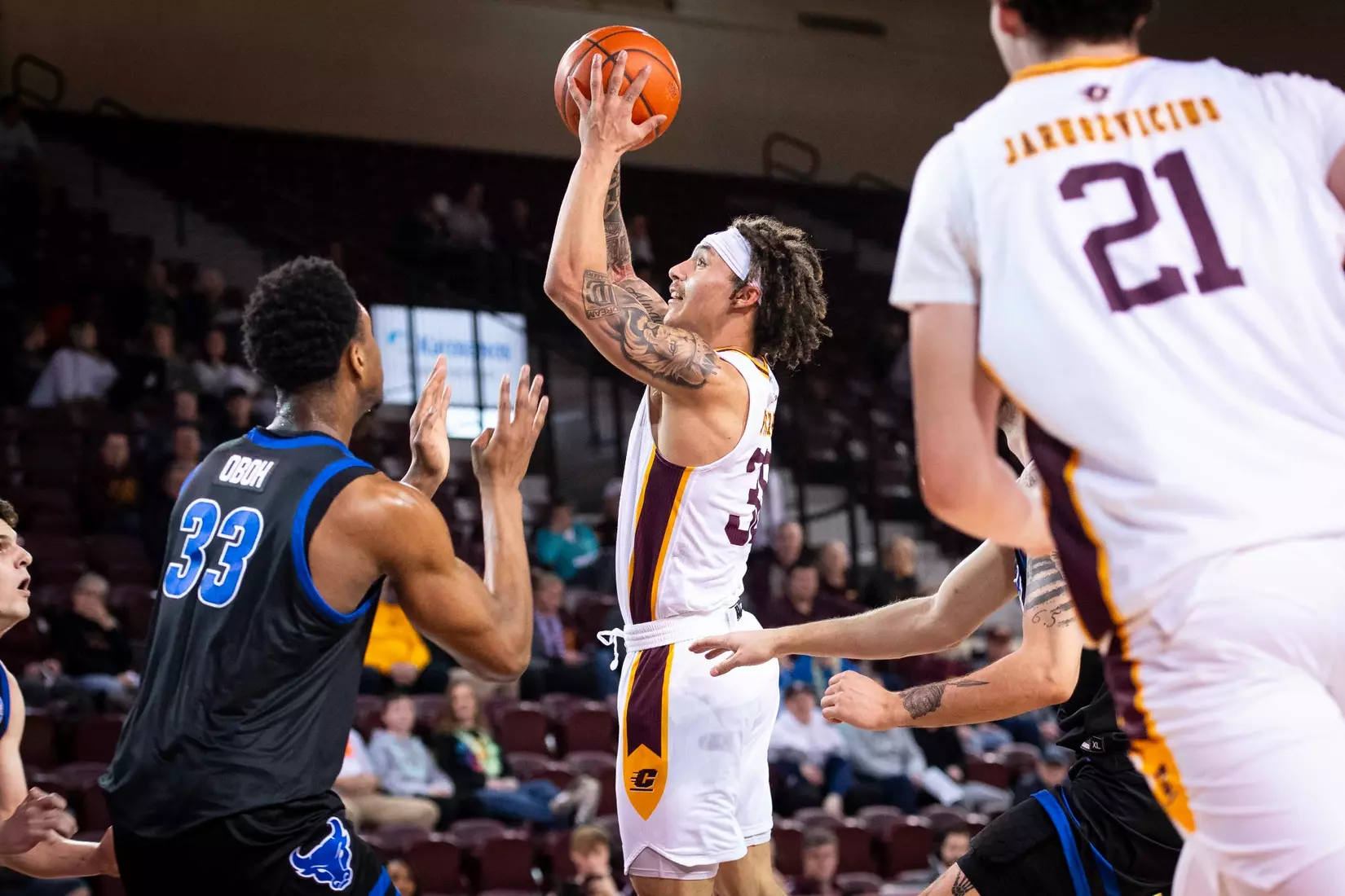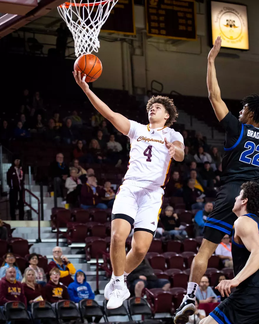 After trailing for the majority of the game and Buffalo leading by its largest margin of the game, eight points (50-42) with 11:13 to go, Central Michigan outscored the Bulls 11-2 over a three-minute second half span to tie the game at 52-52 with 8:22 to play on a Pritchard layup. Minutes later, the Chippewas finally took the lead at 57-55 when Cayden Vasko hit a 3-pointer.