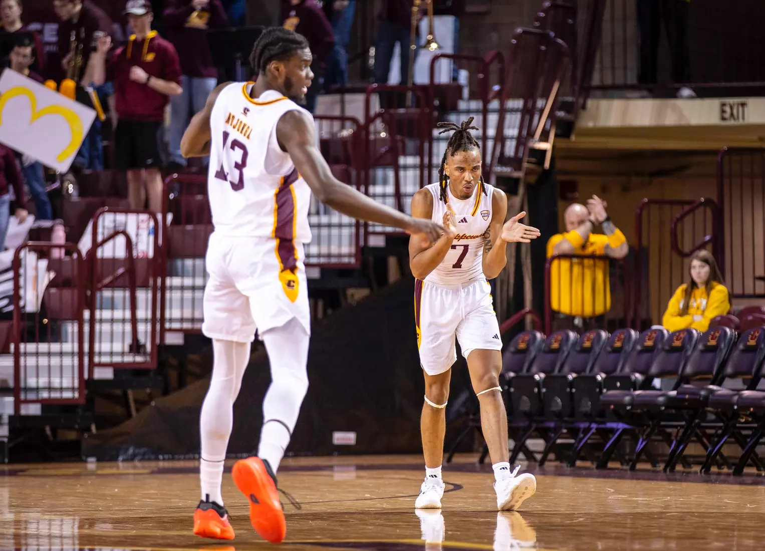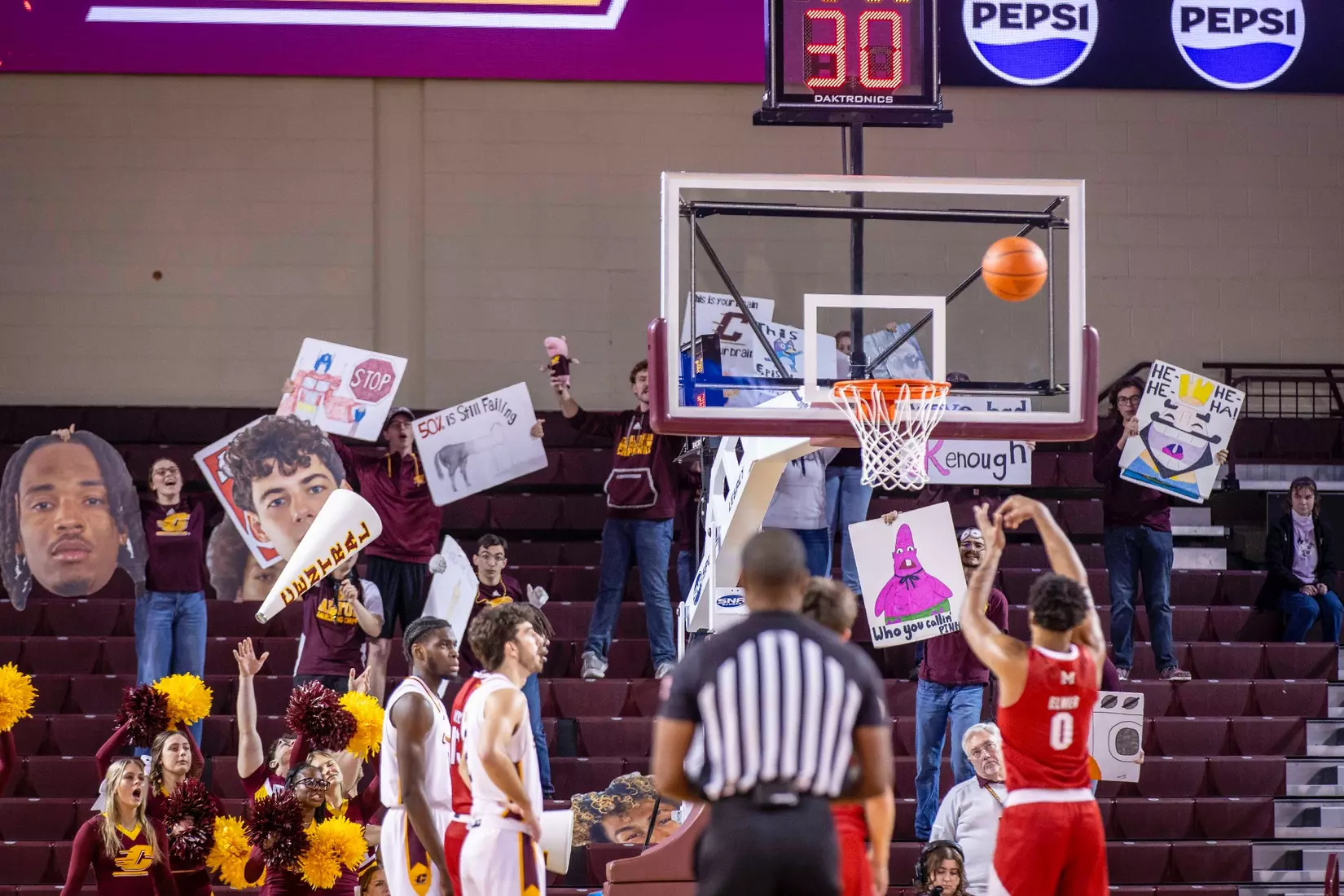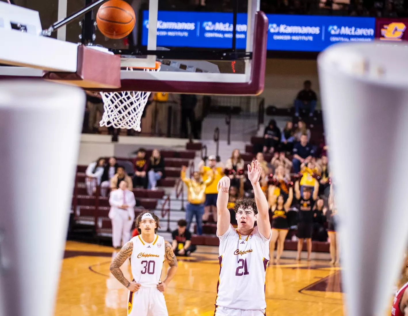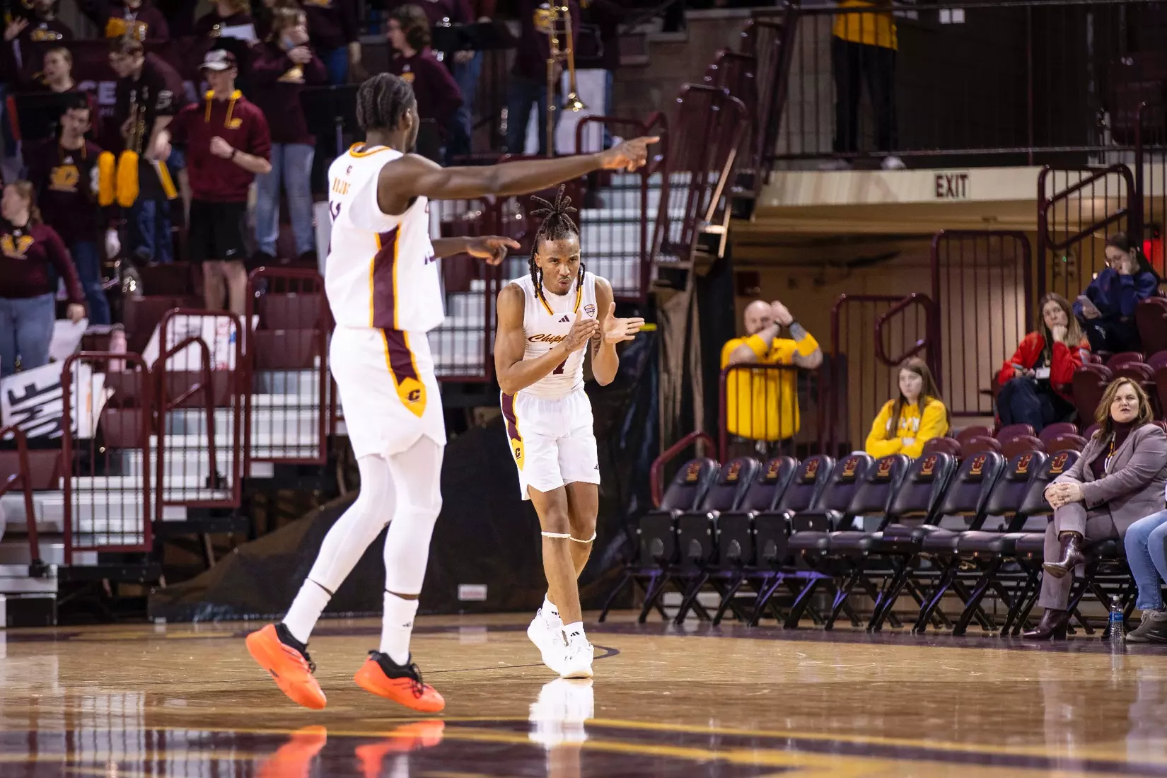 The second stretch was after Central Michigan battled back to tie the score at 68-68 with several 3-pointers by Damarion Bonds with 3:19 to play. Miami went on a 6-0 run to take a commanding 74-68 lead with 17 seconds to play. In the run, Brant Byers converted two free throws, and after a CMU turnover, Eian Elmer converted a free throw for a three-point lead. Following a CMU missed shot and turnover, Suder was fouled and hit two free throws for a five-point lead. After CMU missed another shot, Miami's Evan Ipsaro added another free throw for the 74-68 advantage.
