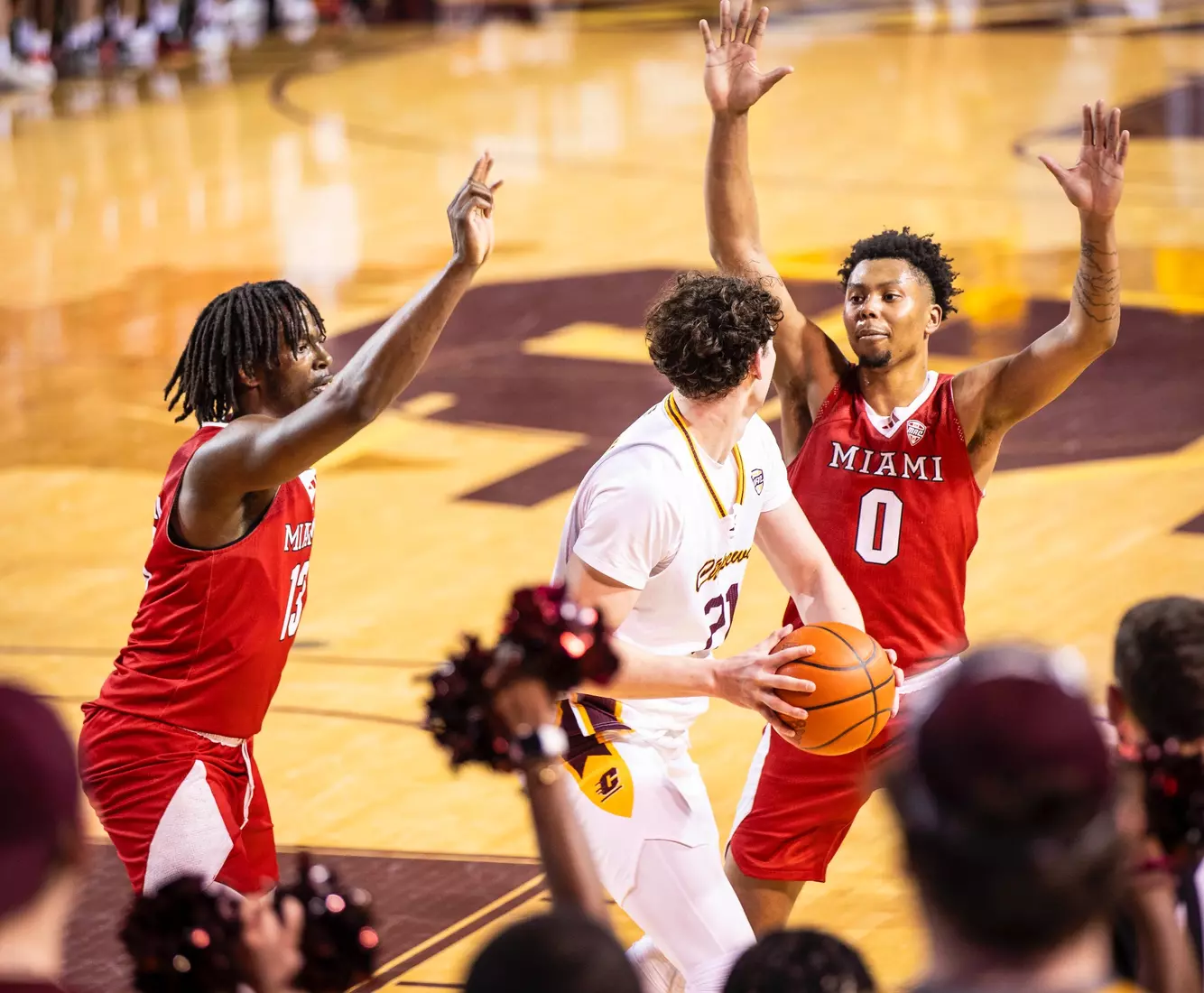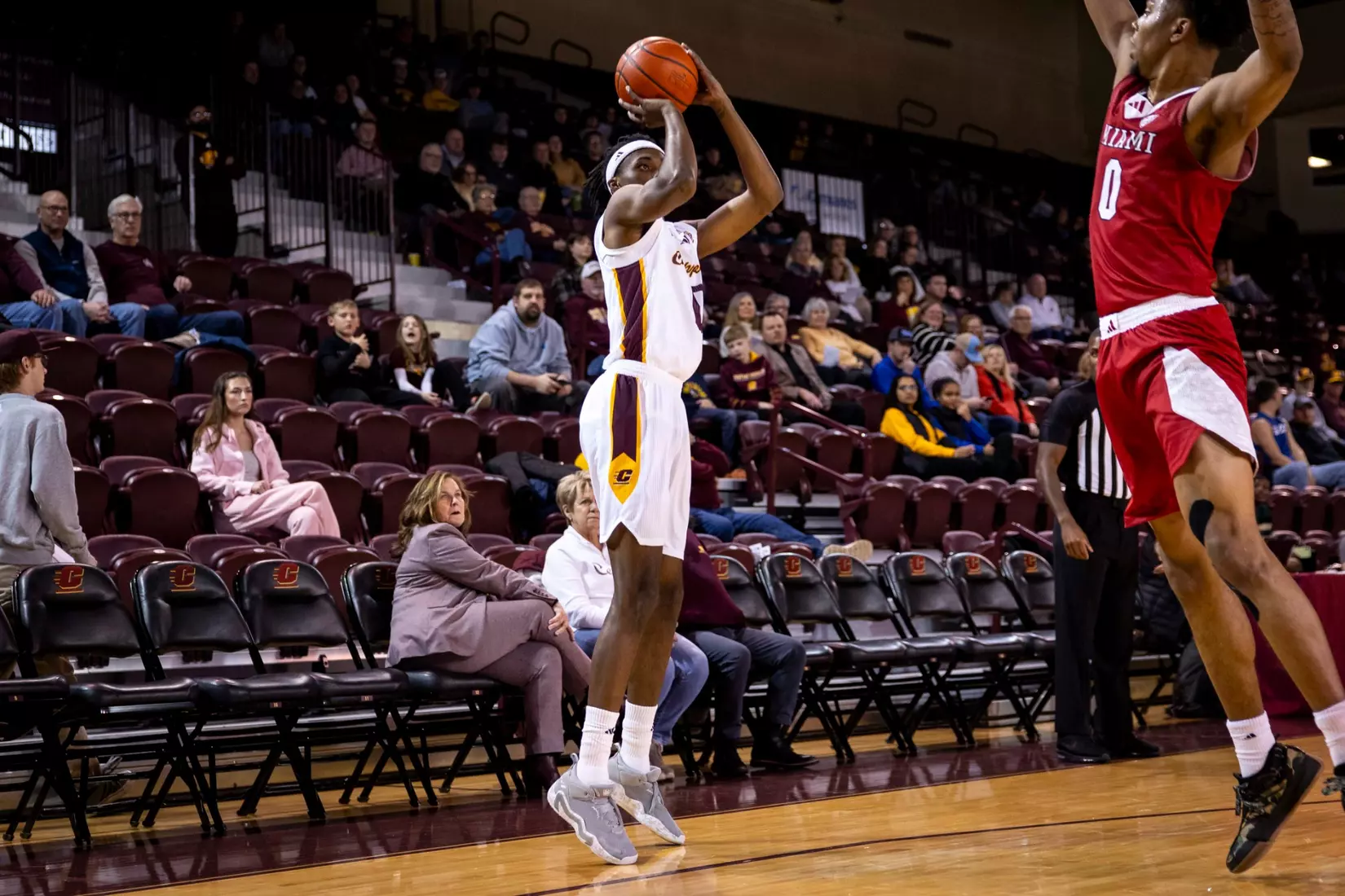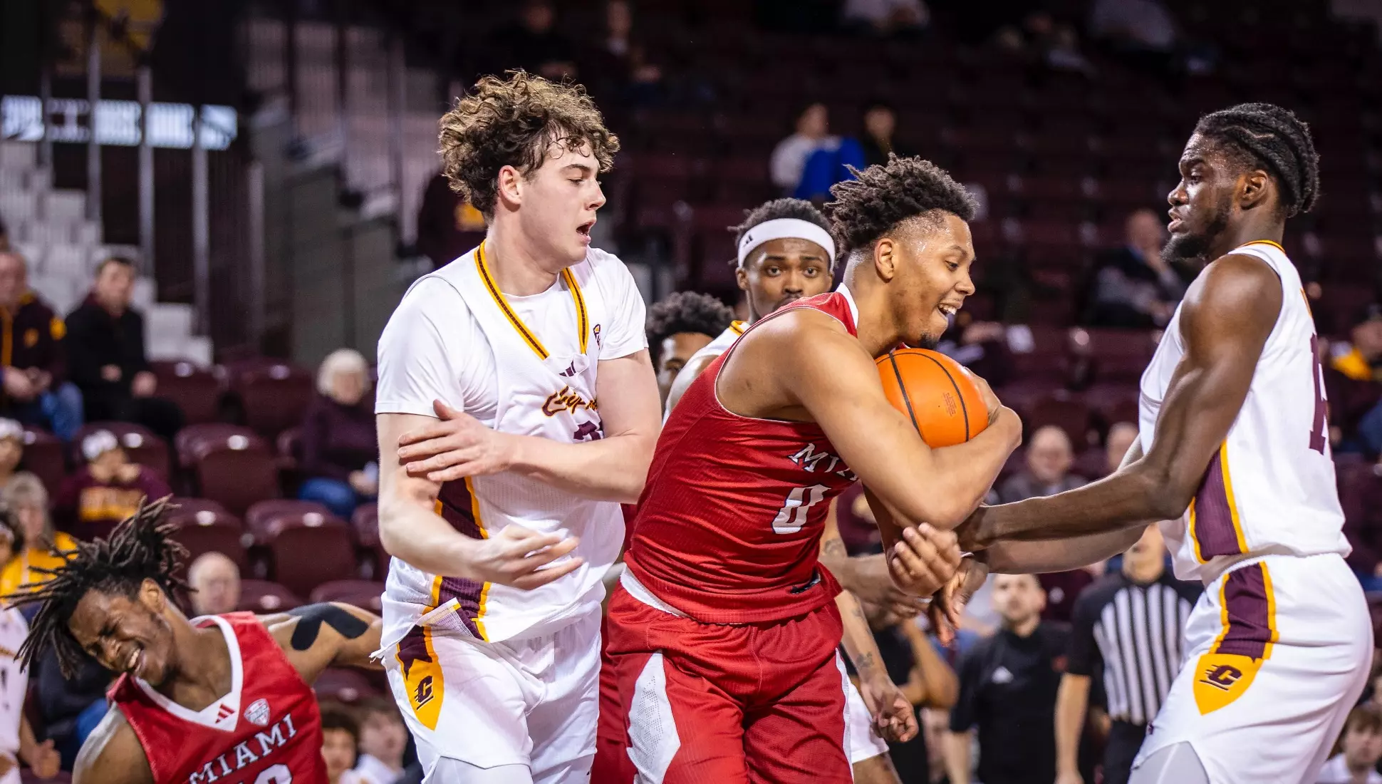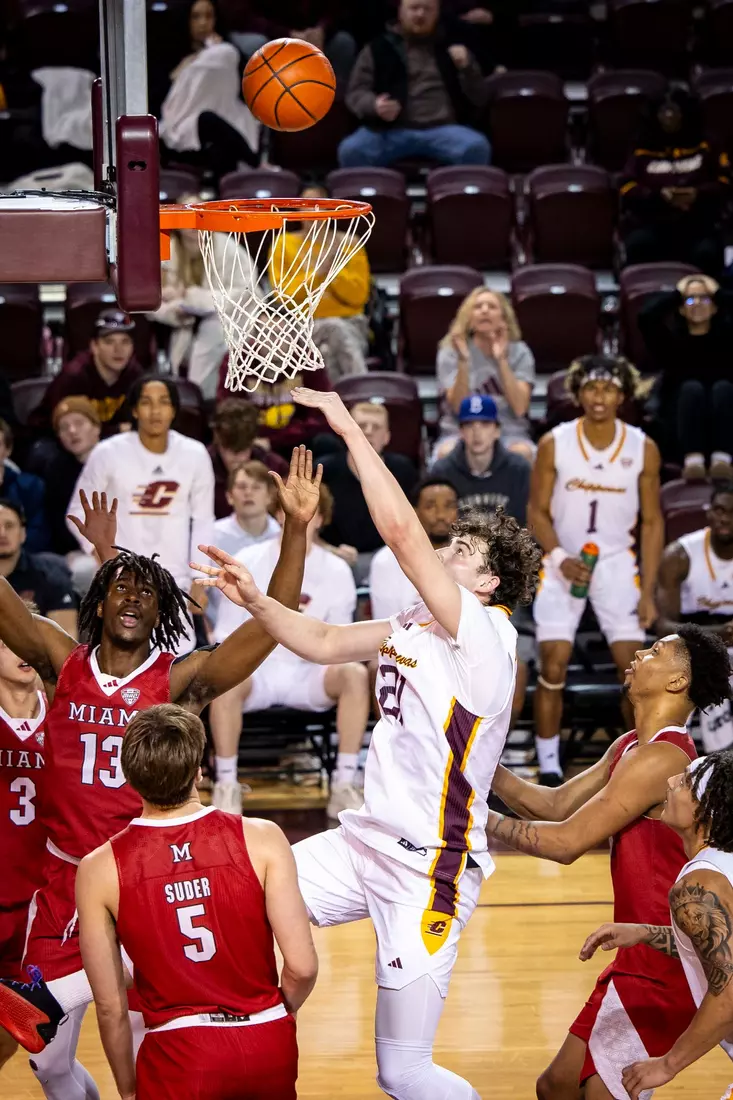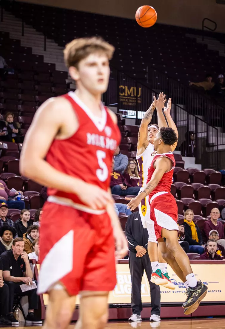 The first stretch was early in the second half when Central Michigan gained all the momentum with a 10-3 run to build a five-point lead at the 15:37 mark. But Miami forced the Chippewas into missing several shots and minutes later outscored CMU 9-2 with two 3-pointers from Luke Skaljac and a free throw to go back up by six points, 55-49 at the 10:28 mark.