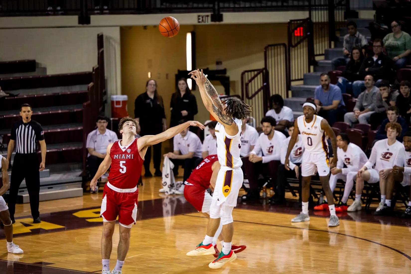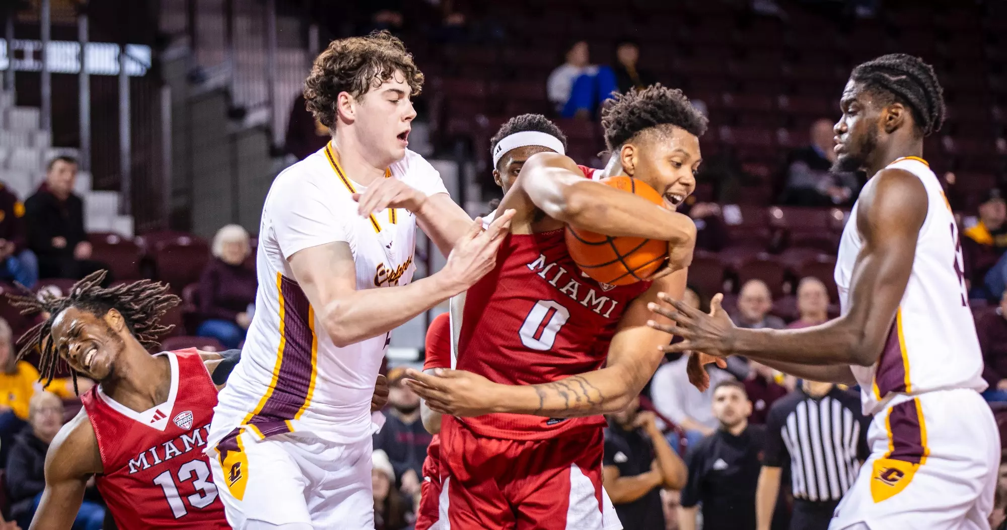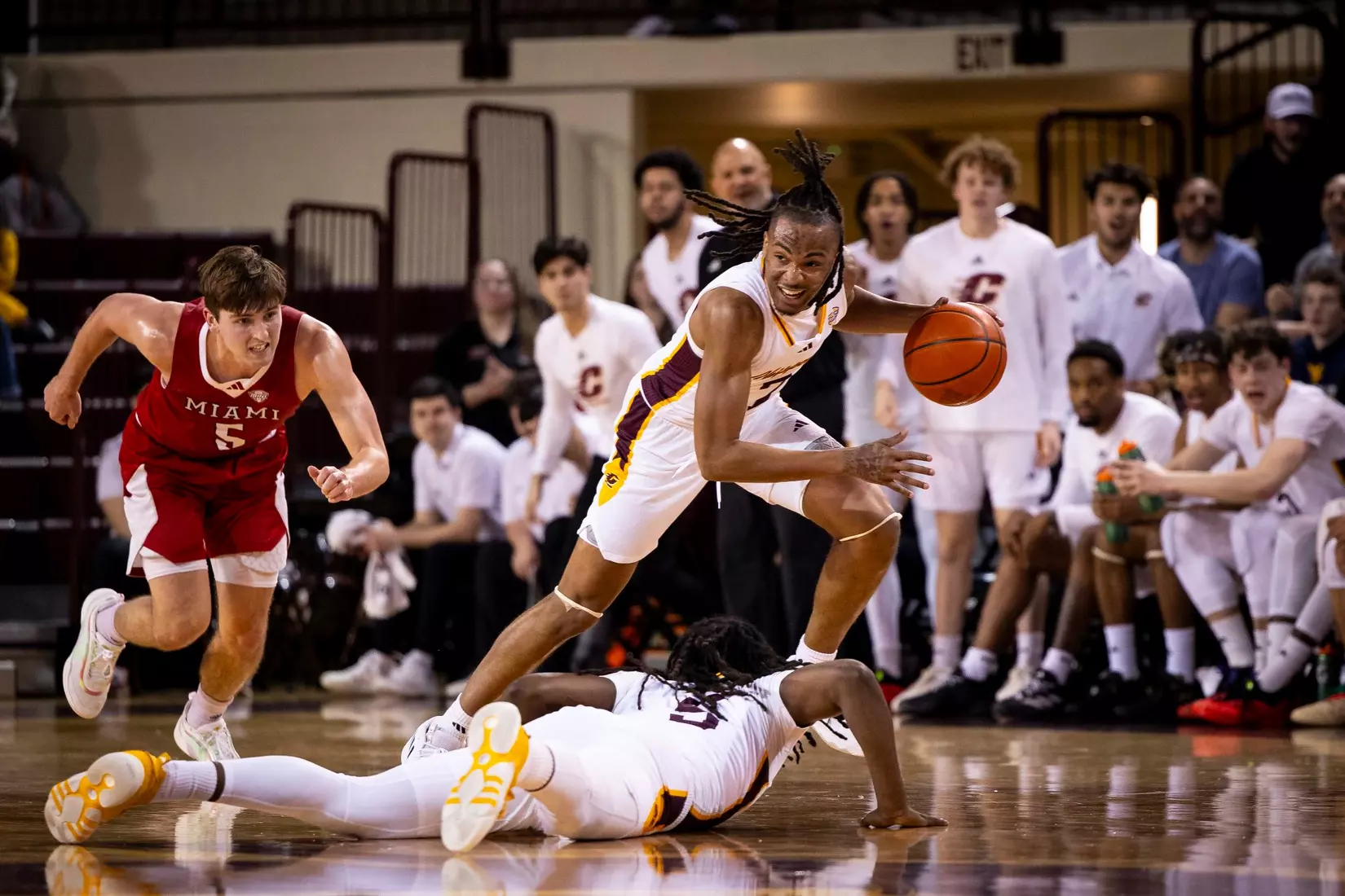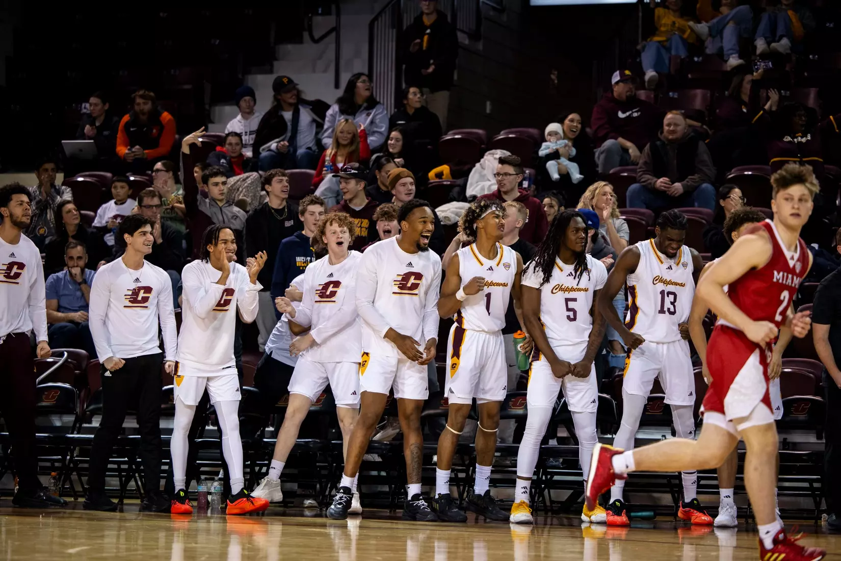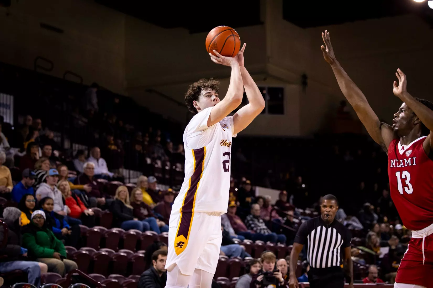The first stretch was early in the second half when Central Michigan gained all the momentum with a 10-3 run to build a five-point lead at the 15:37 mark. But Miami forced the Chippewas into missing several shots and minutes later outscored CMU 9-2 with two 3-pointers from Luke Skaljac and a free throw to go back up by six points, 55-49 at the 10:28 mark.