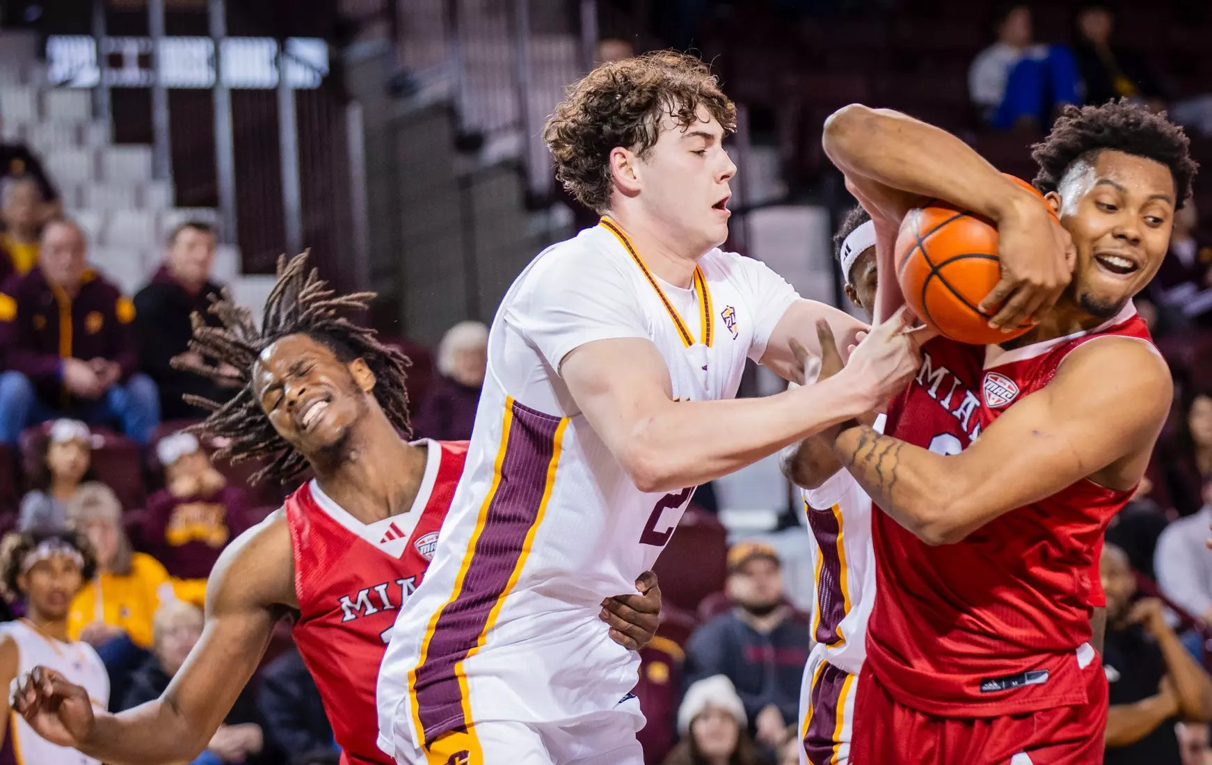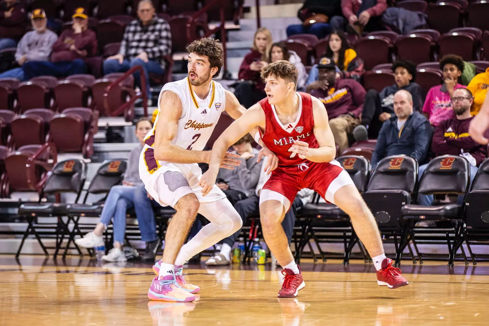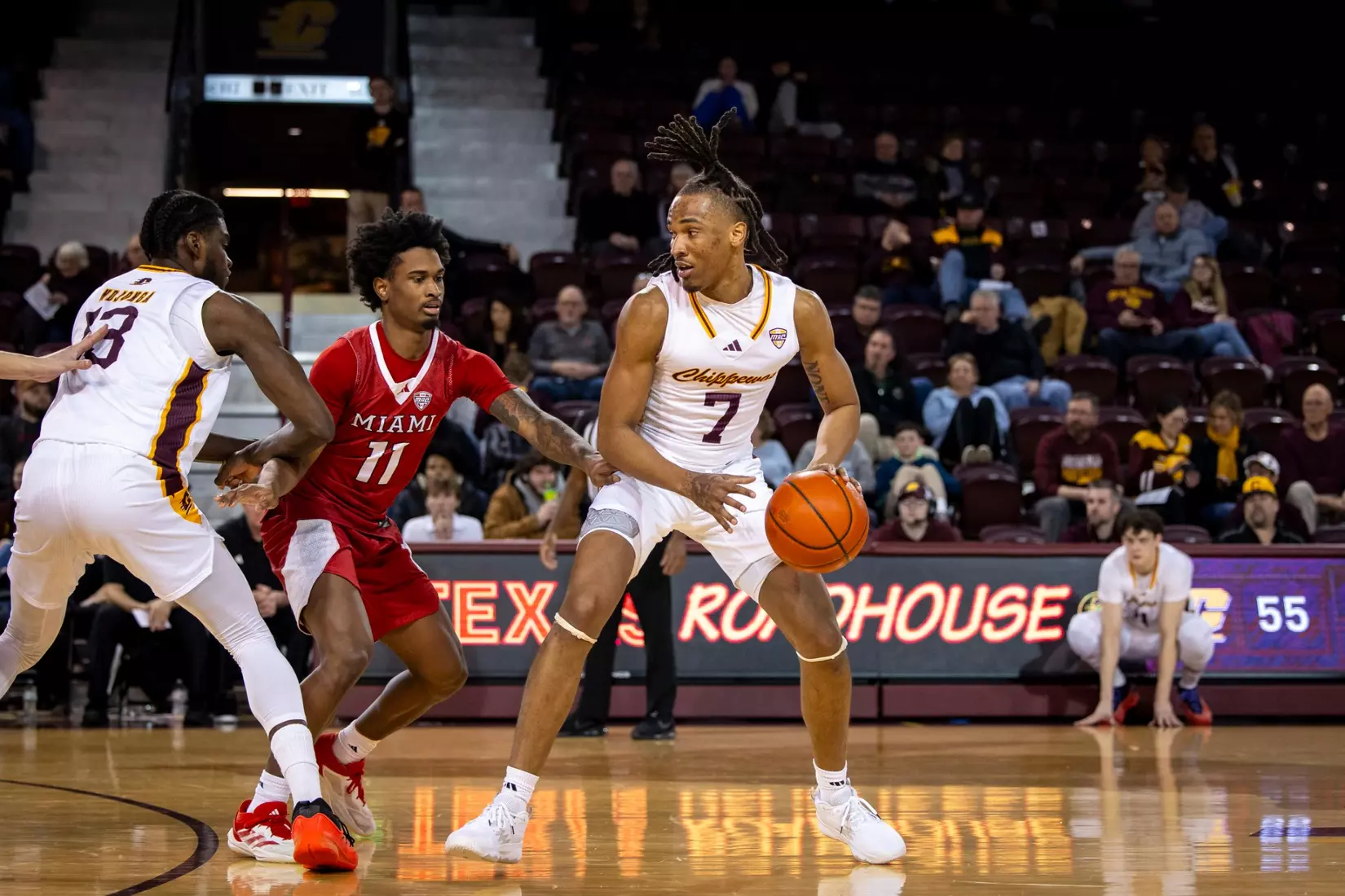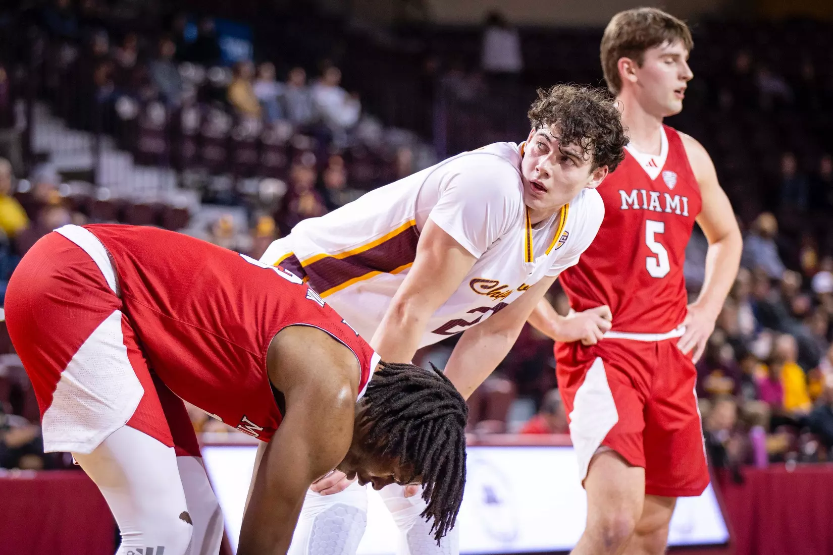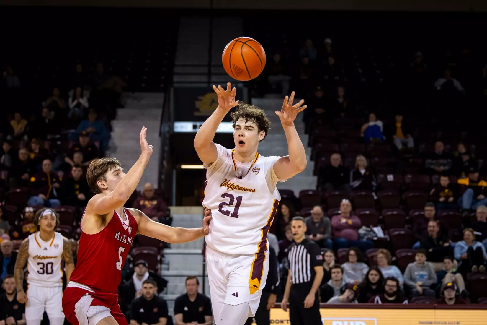 The first stretch was early in the second half when Central Michigan gained all the momentum with a 10-3 run to build a five-point lead at the 15:37 mark. But Miami forced the Chippewas into missing several shots and minutes later outscored CMU 9-2 with two 3-pointers from Luke Skaljac and a free throw to go back up by six points, 55-49 at the 10:28 mark.