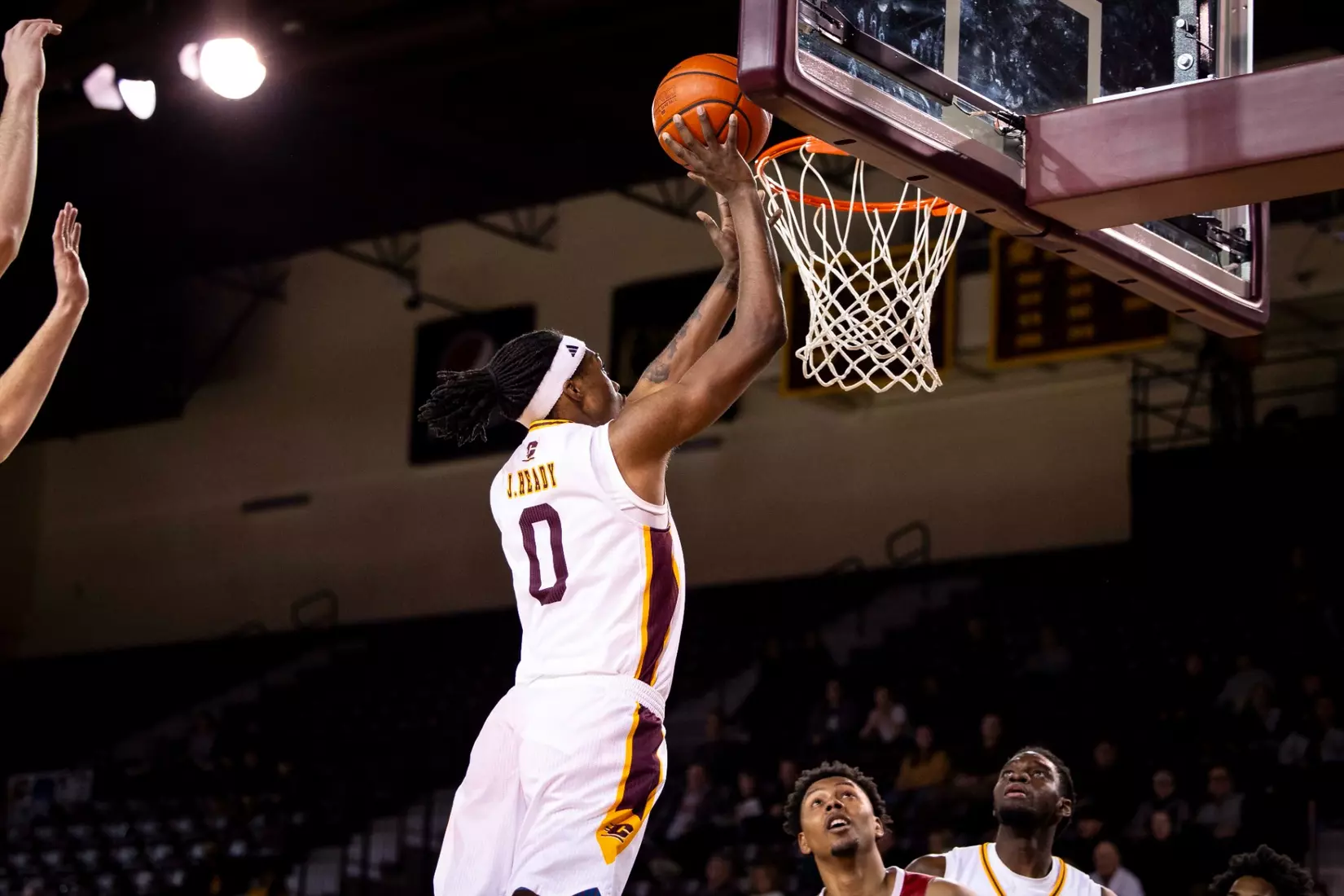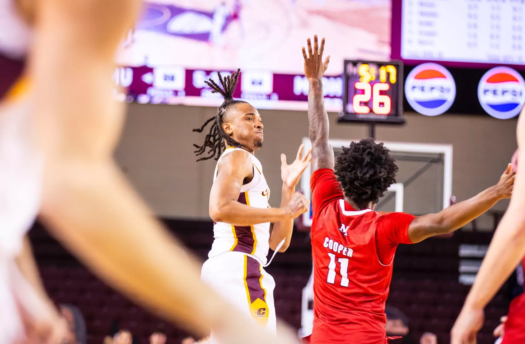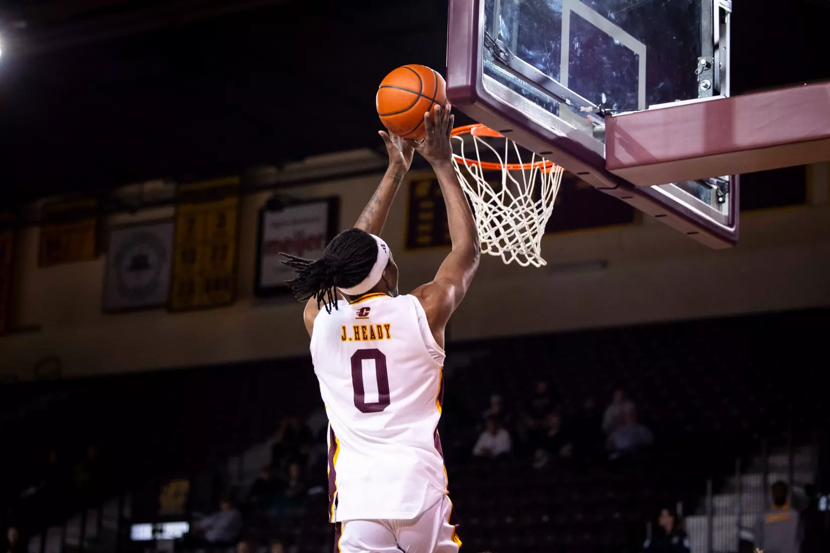 Trailing 37-34 at halftime, Central Michigan outscored Miami 10-3 to take a commanding 45-40 lead on a Jakobi Heady 3-pointer at the top of the key at the 15:30 mark. The Chippewas scored the second half's first four points to take its first lead of the game, 38-37, just two minutes into the second half. Later, Pritchard completed a behind-the-back pass to Jarusevicius for 42-40 lead with 16:52 to play. Then Heady made it 45-40.