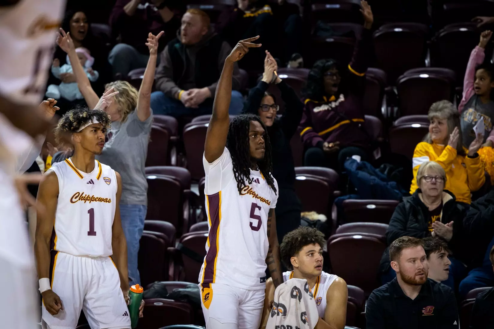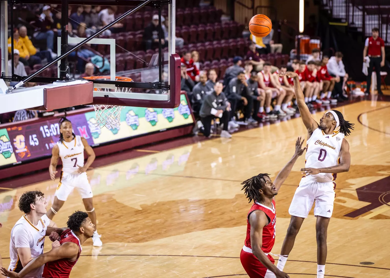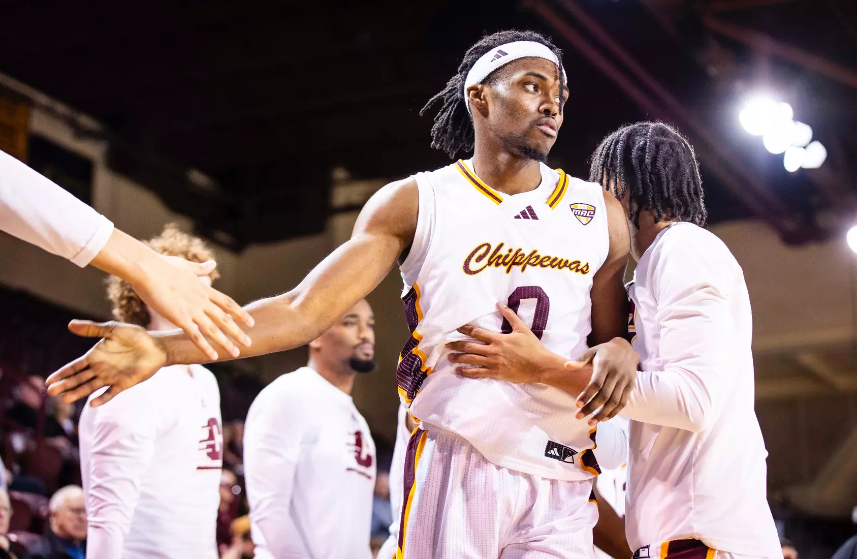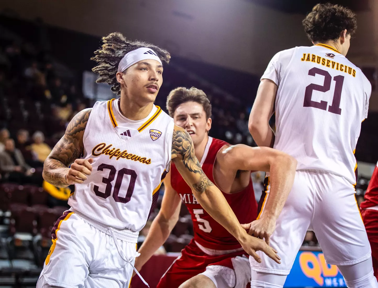 Damarion Bonds leads Chippewas with 17 points, hits 5-8 3-pointers, Jakobi Heady finishes with 16 points, Ugnius Jarusevicius adds 15.