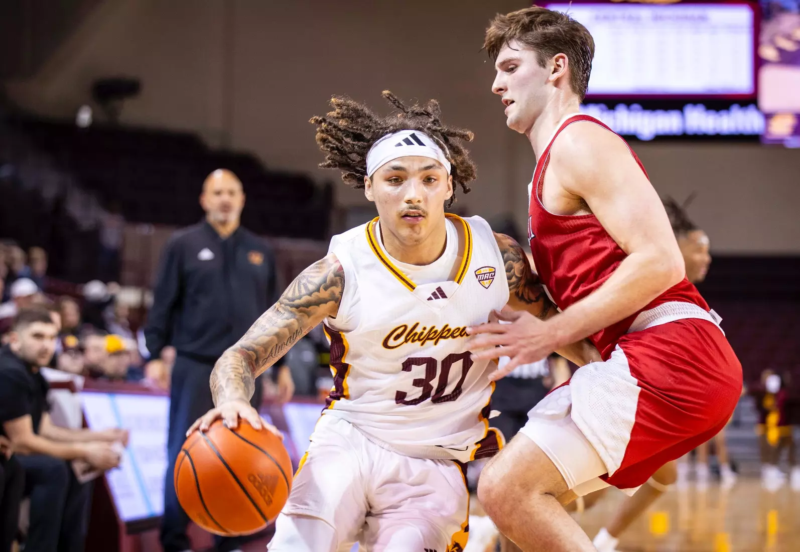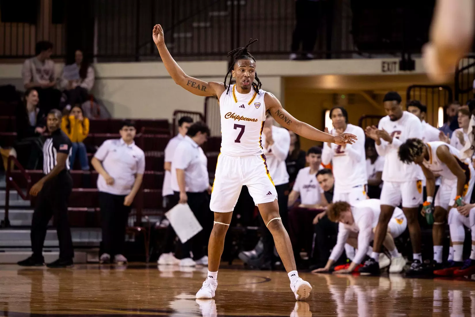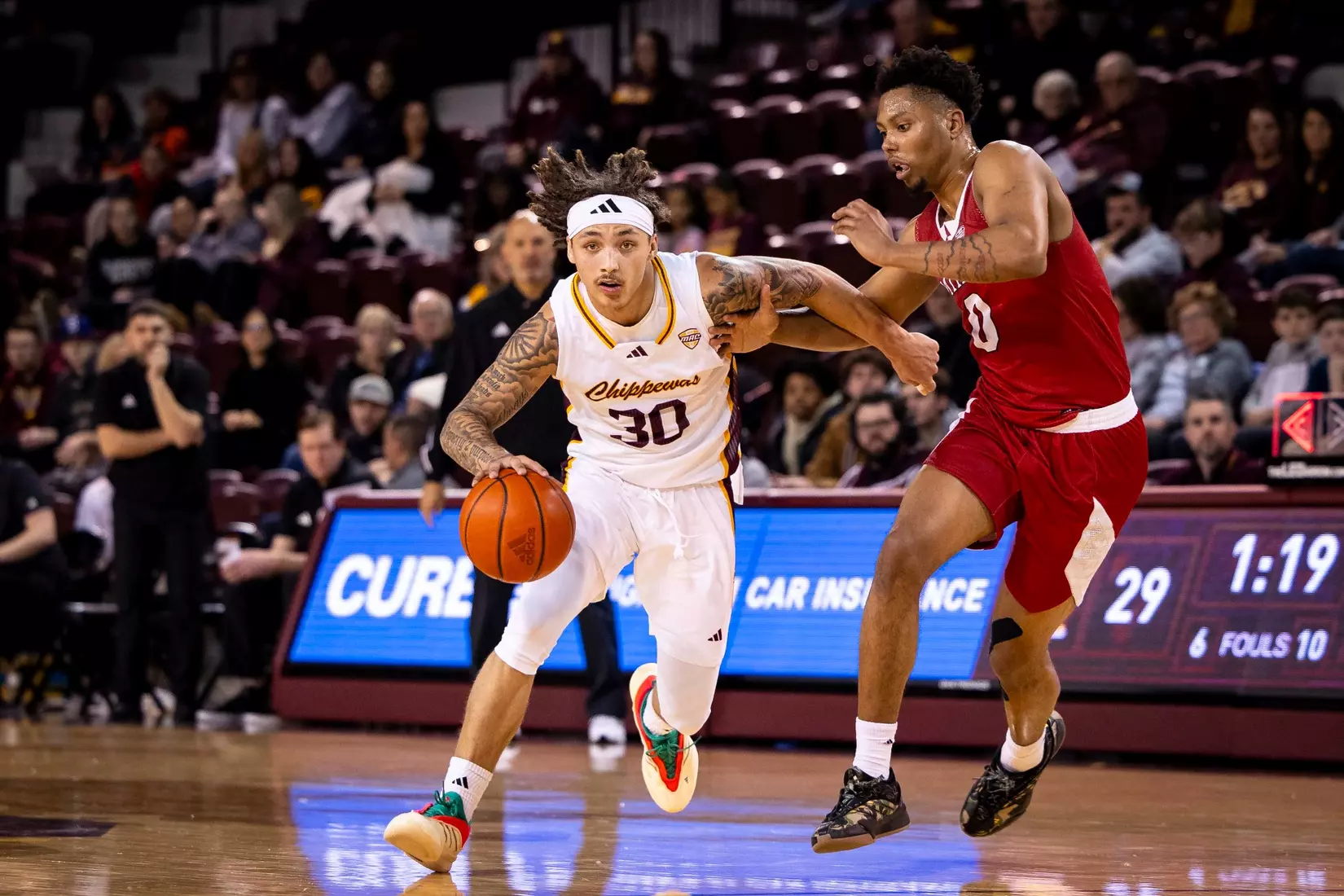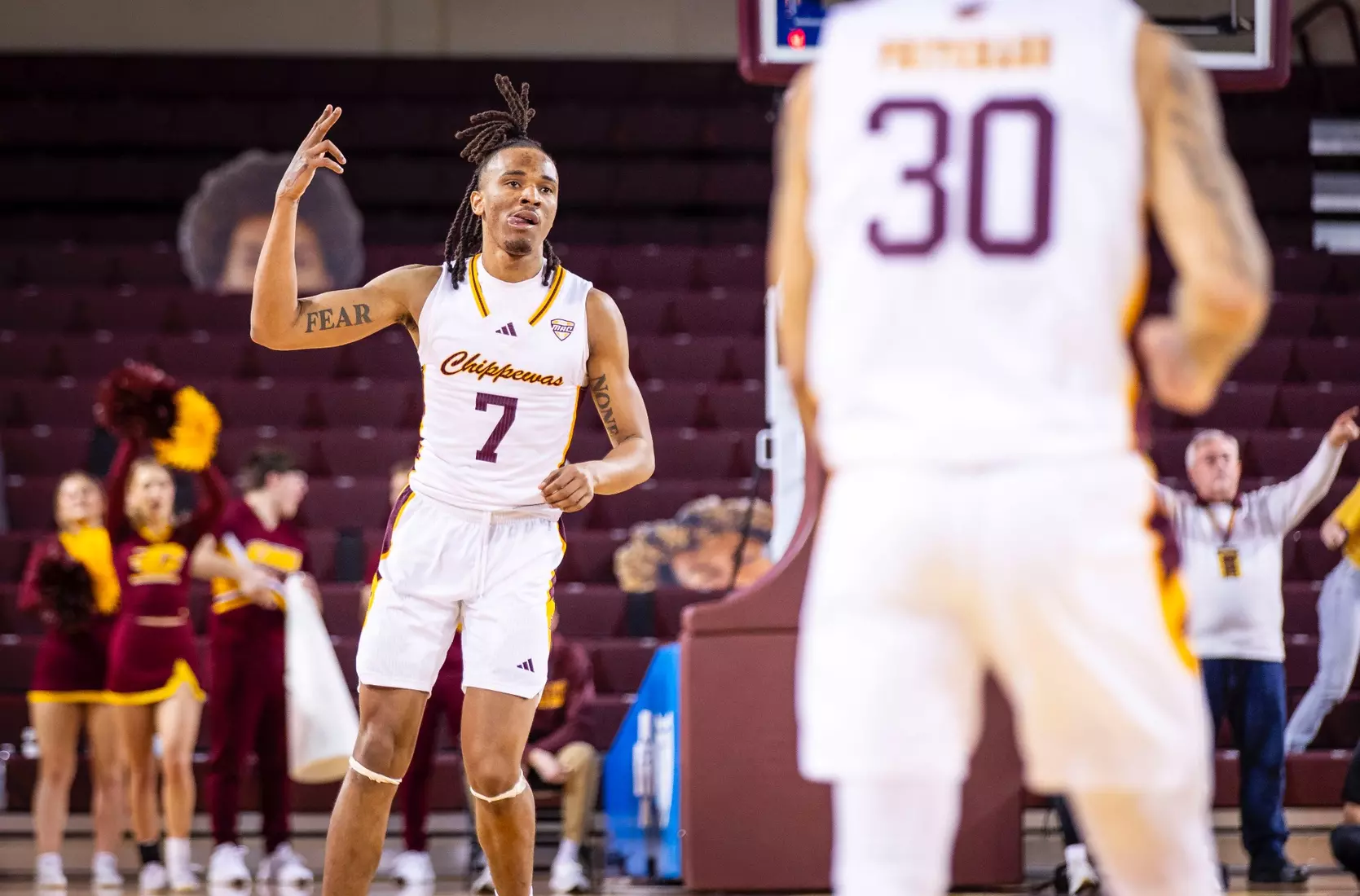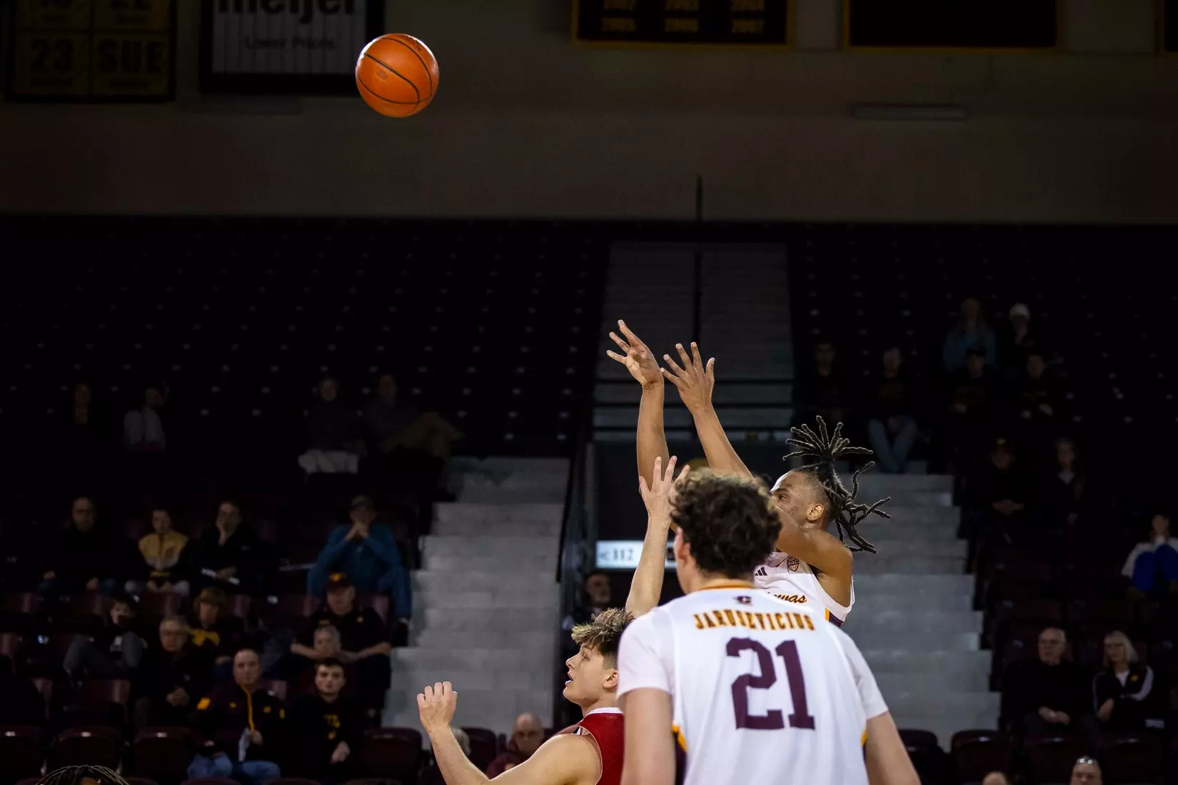 Damarion Bonds leads Chippewas with 17 points, hits 5-8 3-pointers, Jakobi Heady finishes with 16 points, Ugnius Jarusevicius adds 15.