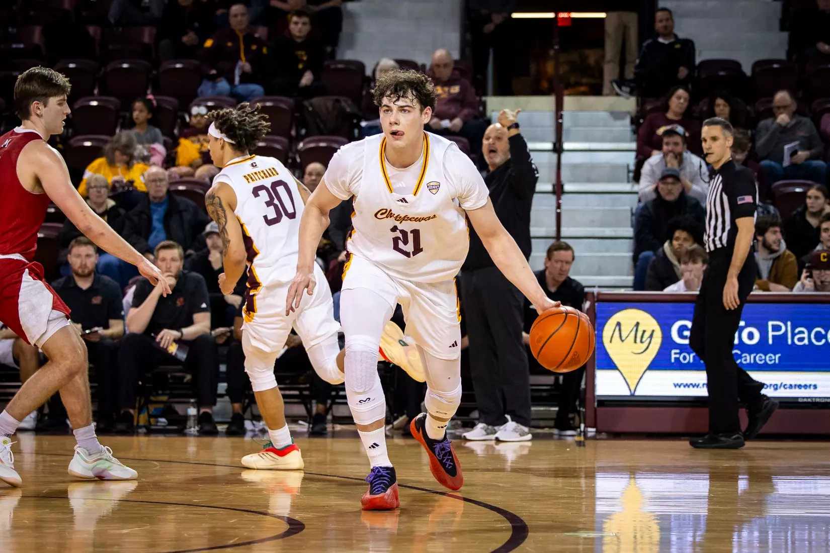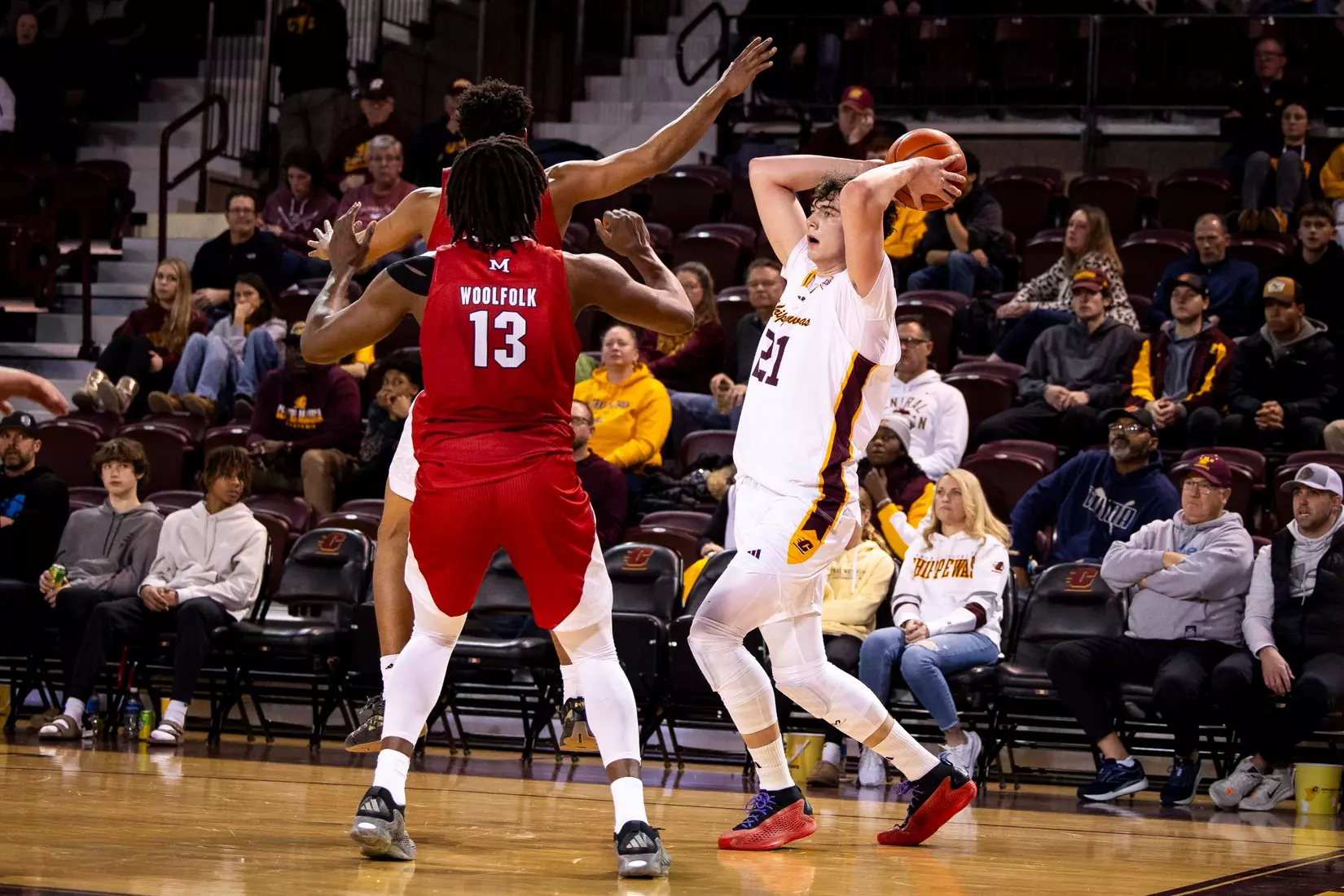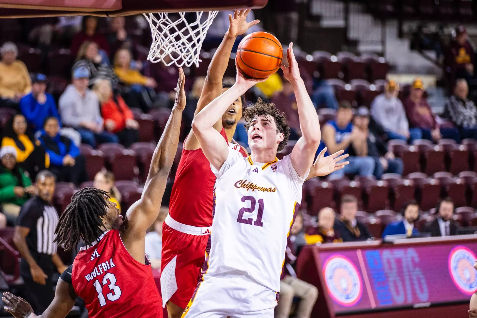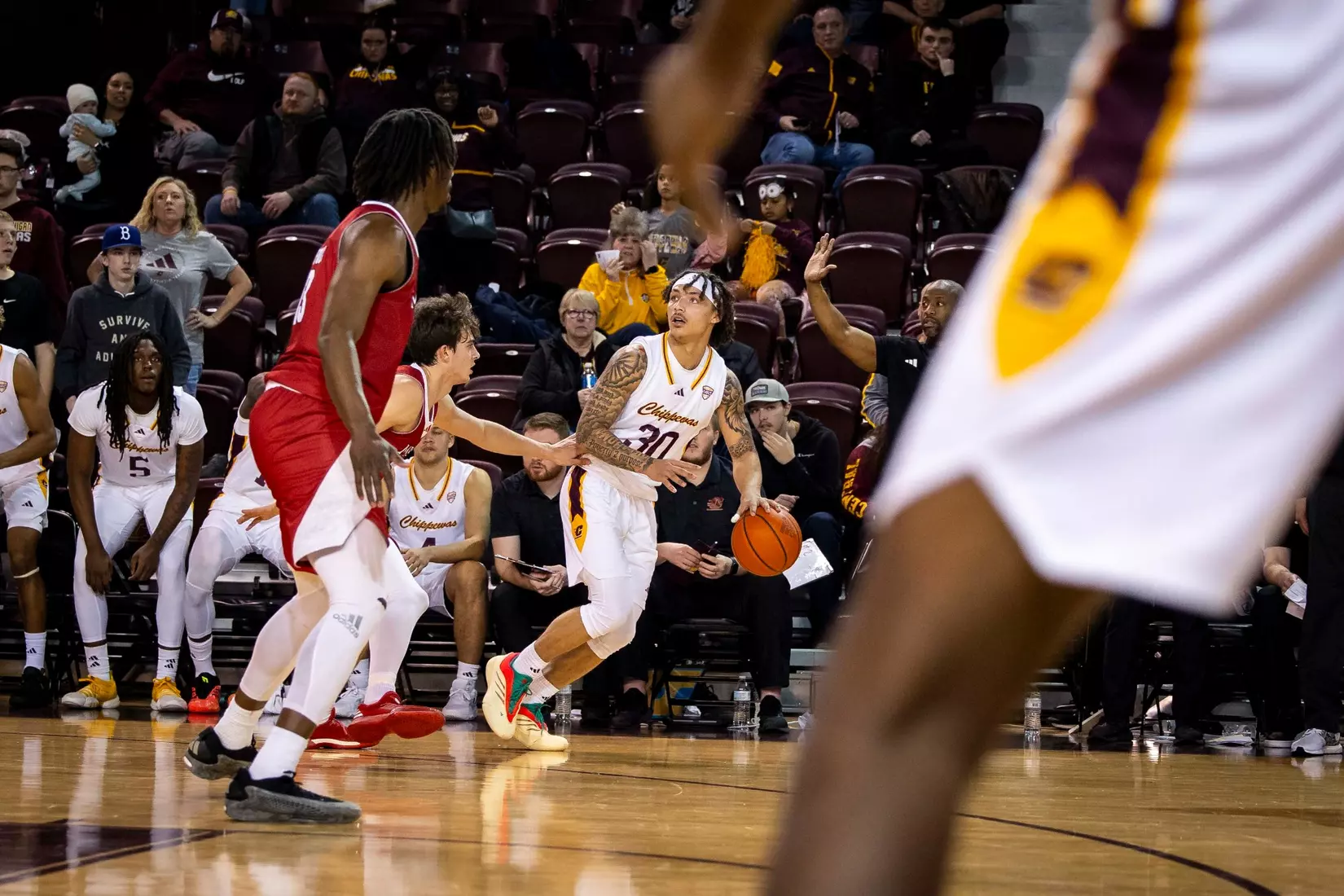 Damarion Bonds leads Chippewas with 17 points, hits 5-8 3-pointers, Jakobi Heady finishes with 16 points, Ugnius Jarusevicius adds 15.