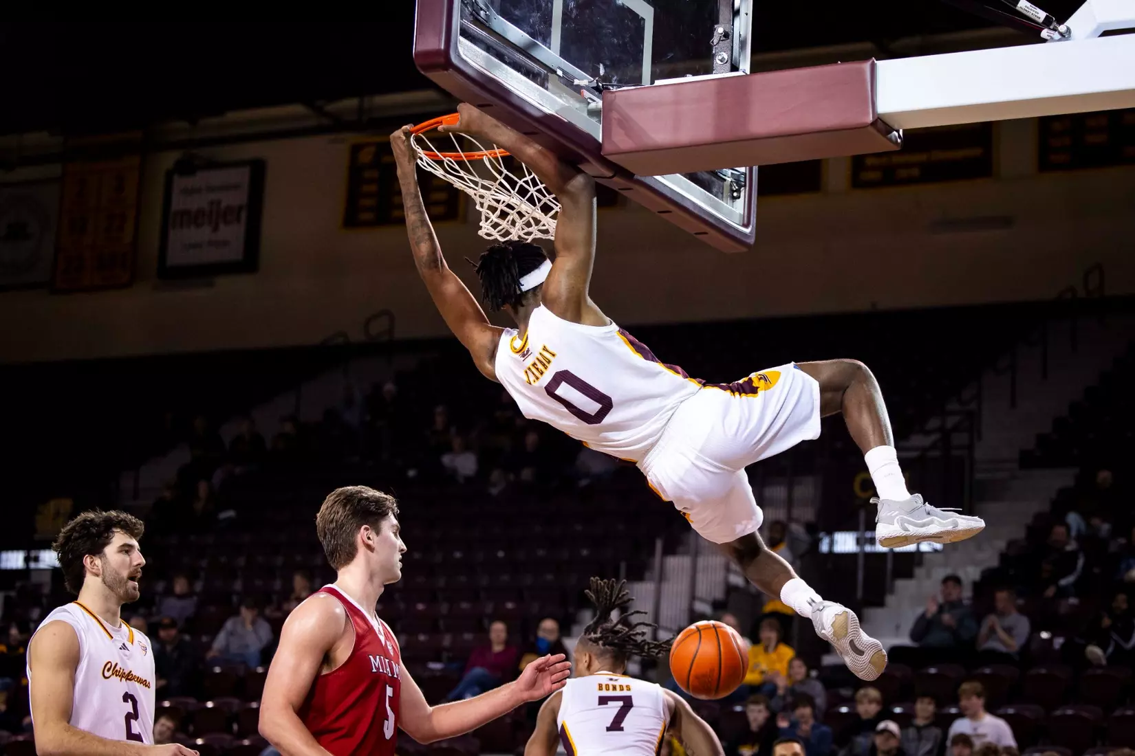 The Chippewas rallied back from a 10-point deficit (62-52) with 7:11 to go in the game. The Chippewas outscored Miami 16-6 over a four minute span which included a 3-point play from VanderJagt, three 3-pointers by Bonds, and three points from Jakobi Heady.