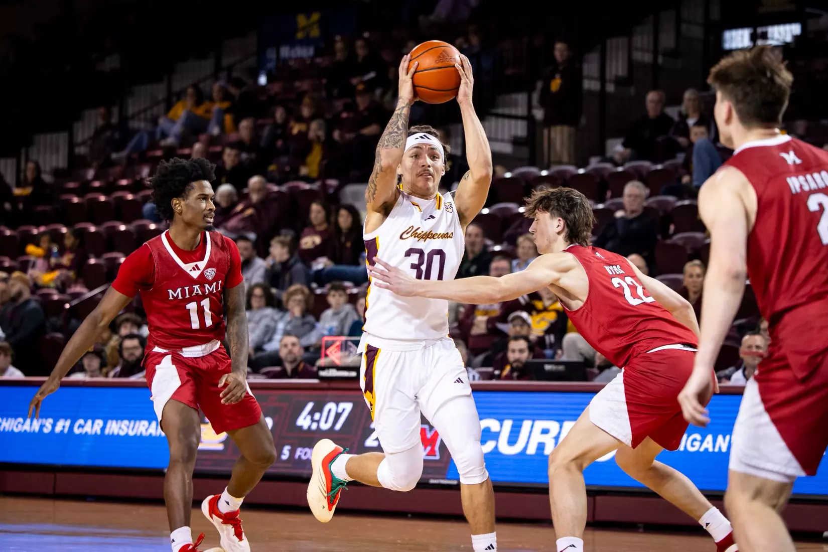 In the second half, Miami converted 13 of its 22 field goal attempts and 4-7 3-point attempts. The Redhawks fended off every Central Michigan comeback attempt down the stretch.