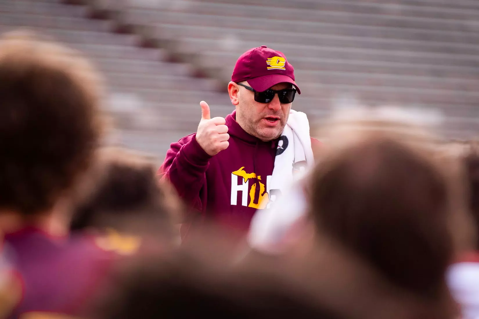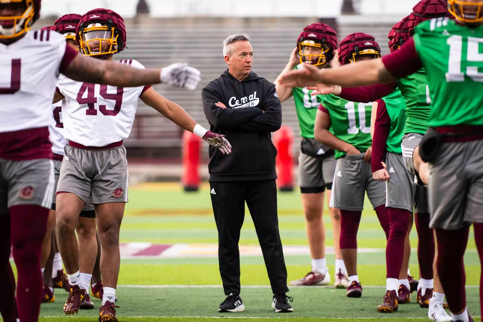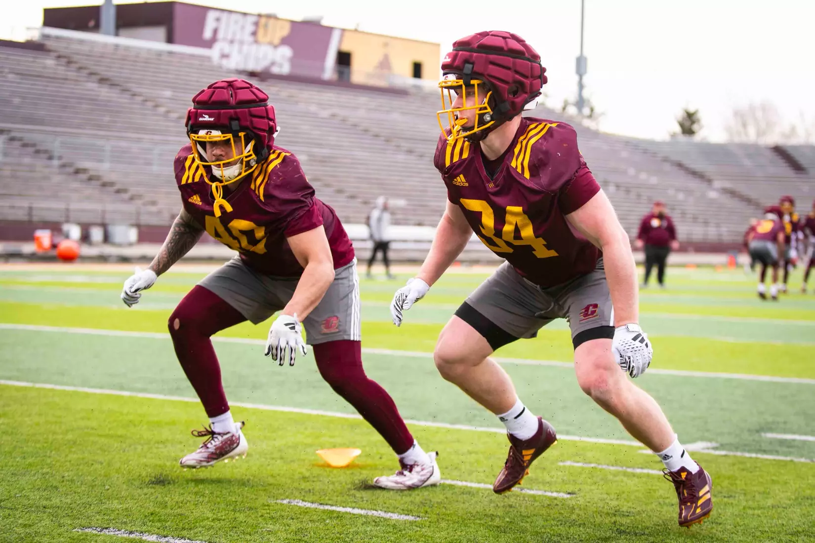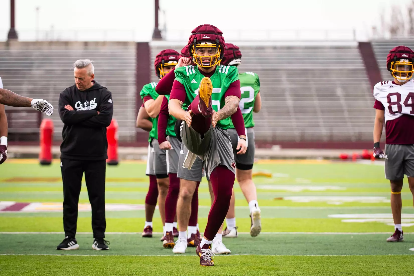 MOUNT PLEASANT, Mich.—The Central Michigan Football program completed a spirited first spring ball practice on Tuesday morning at Kramer/Deromedi Field at Kelly/Shorts Stadium.
