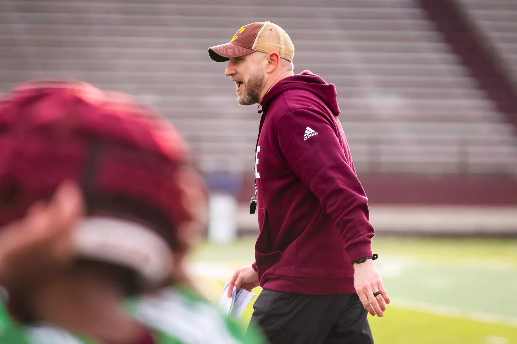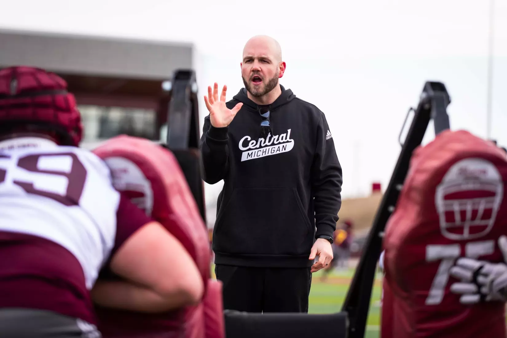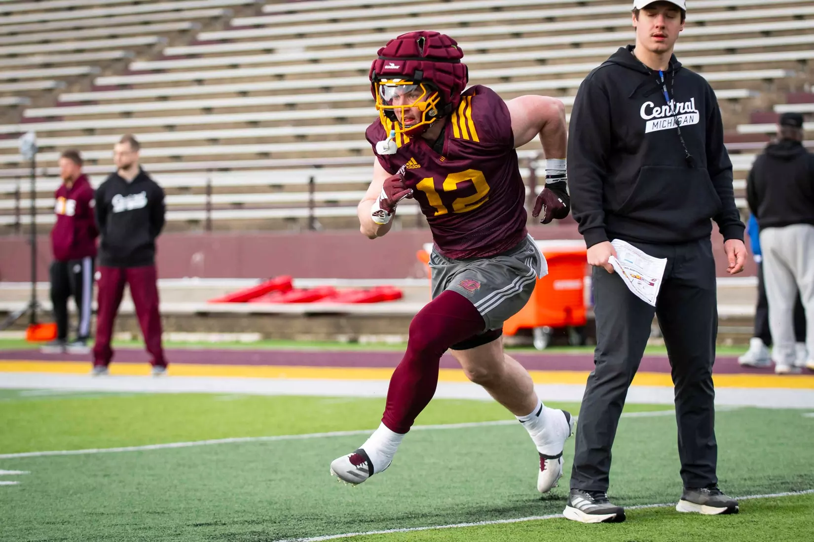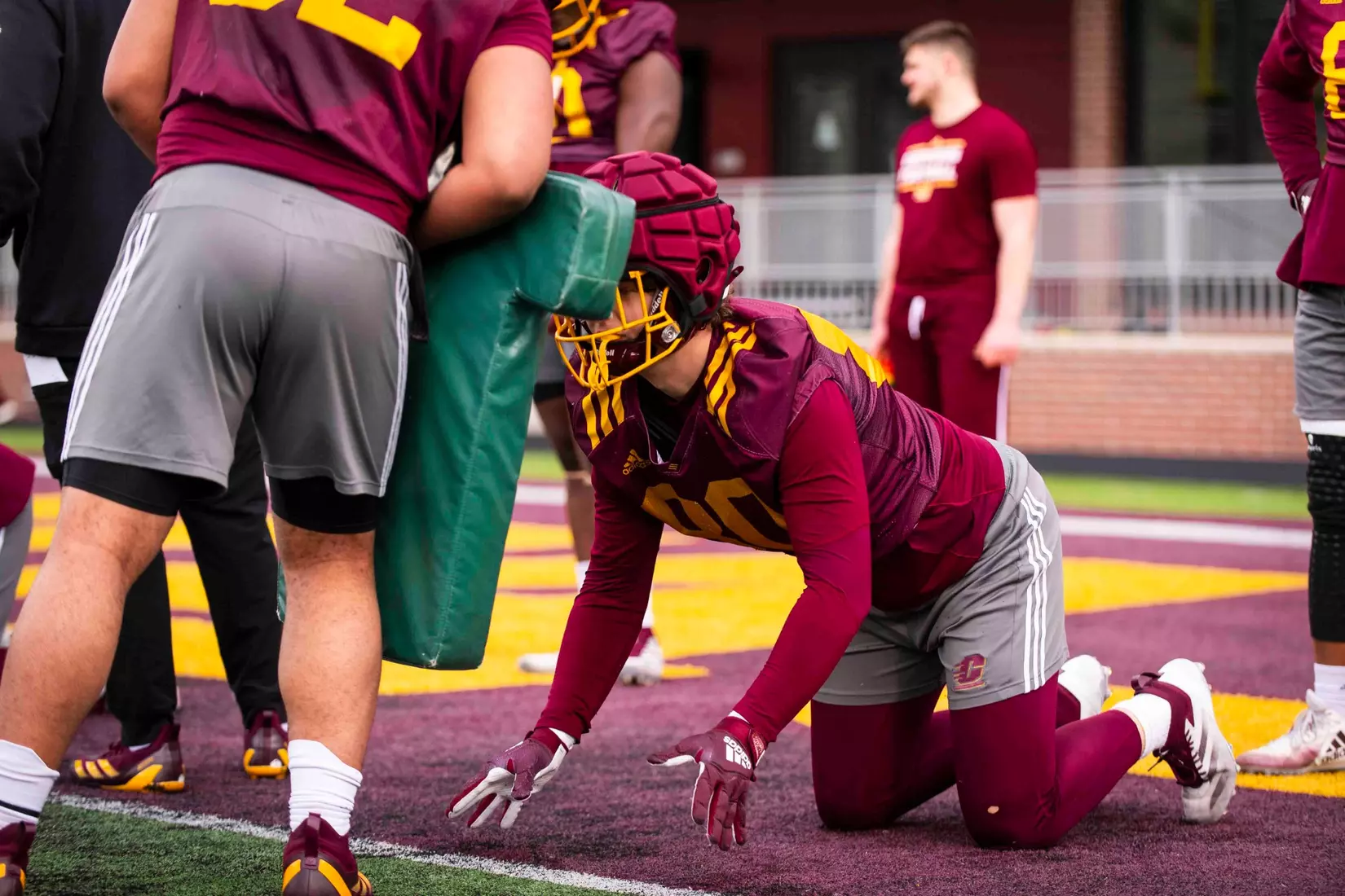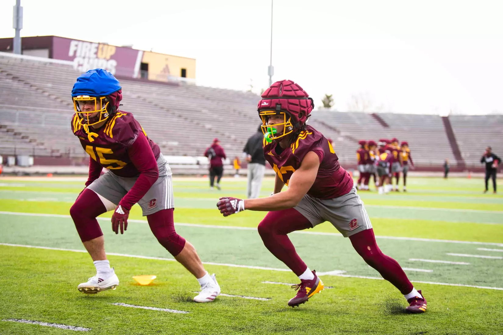MOUNT PLEASANT, Mich.—The Central Michigan Football program completed a spirited first spring ball practice on Tuesday morning at Kramer/Deromedi Field at Kelly/Shorts Stadium.
