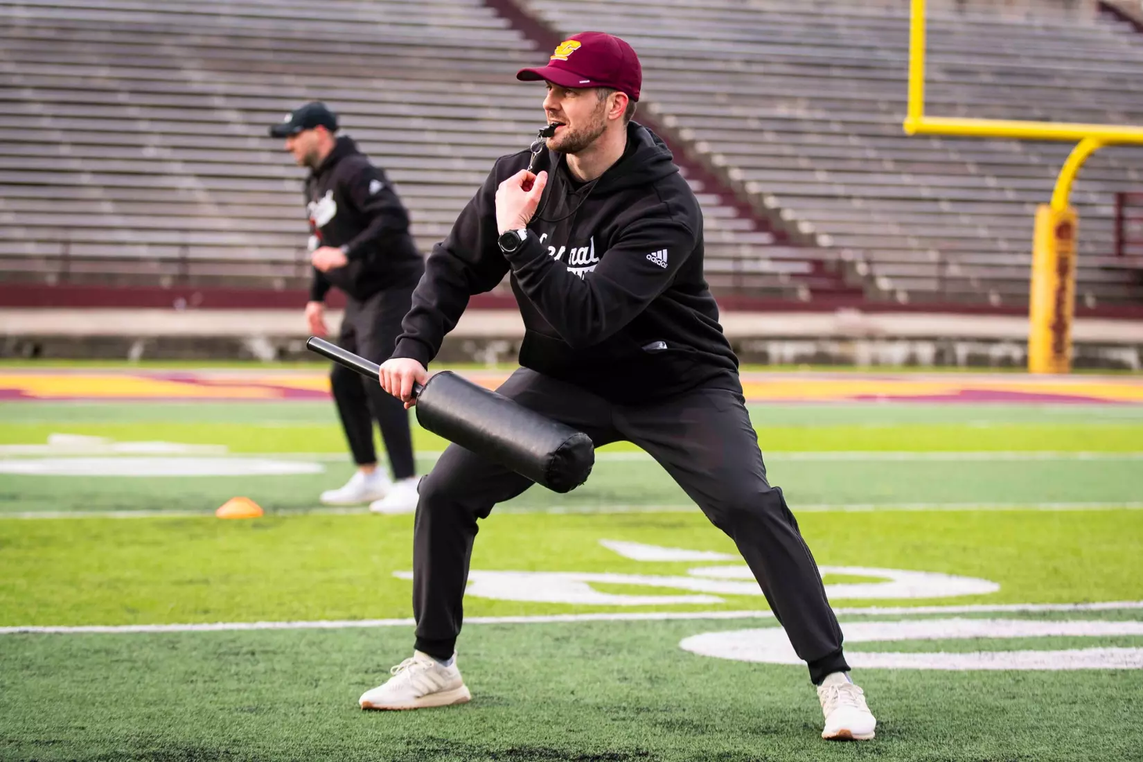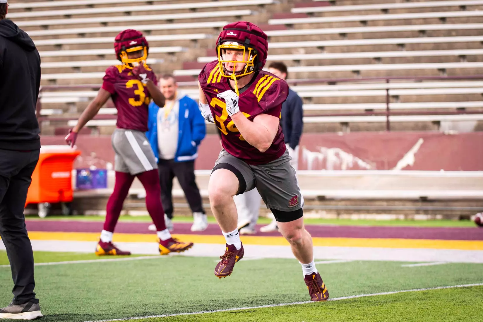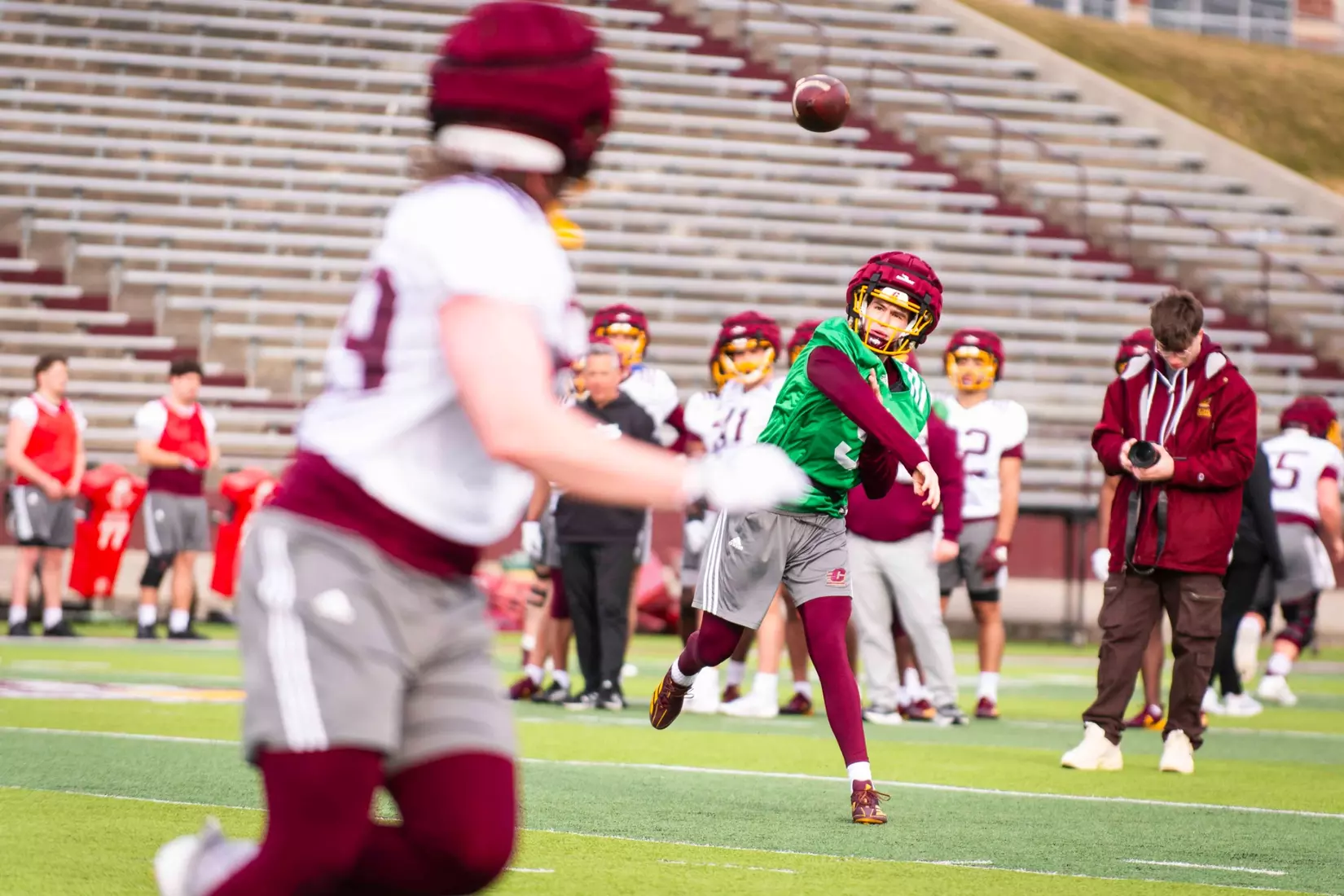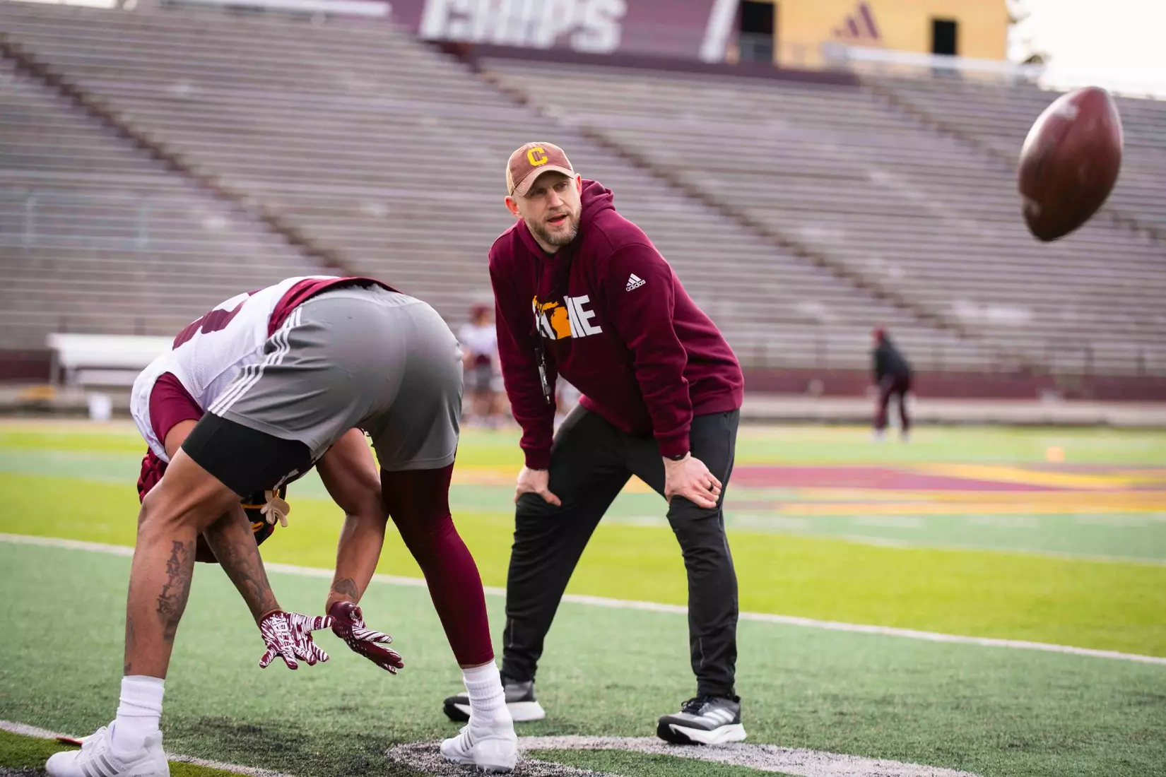 MOUNT PLEASANT, Mich.—The Central Michigan Football program completed a spirited first spring ball practice on Tuesday morning at Kramer/Deromedi Field at Kelly/Shorts Stadium.