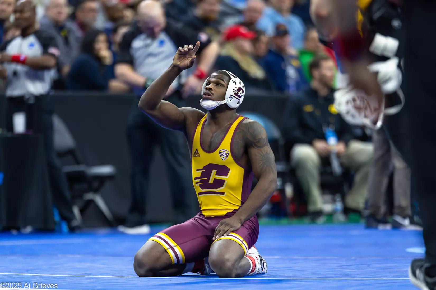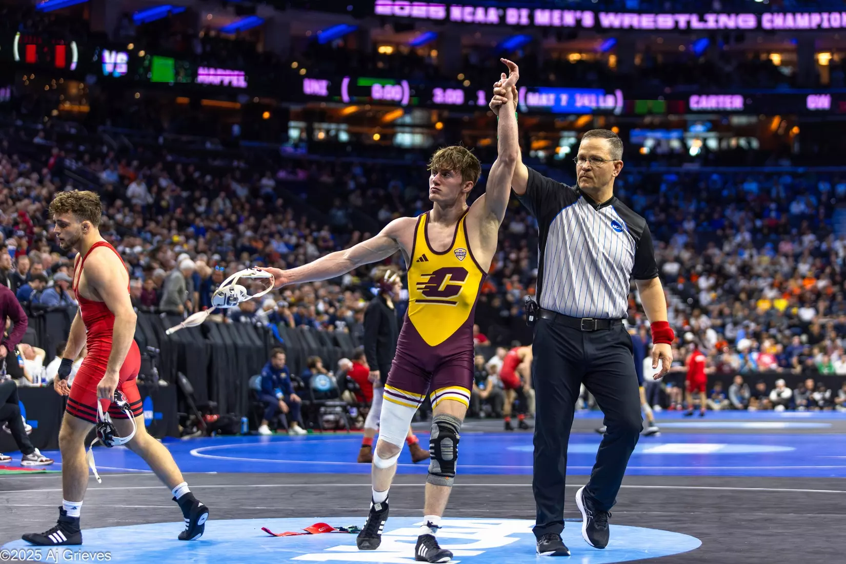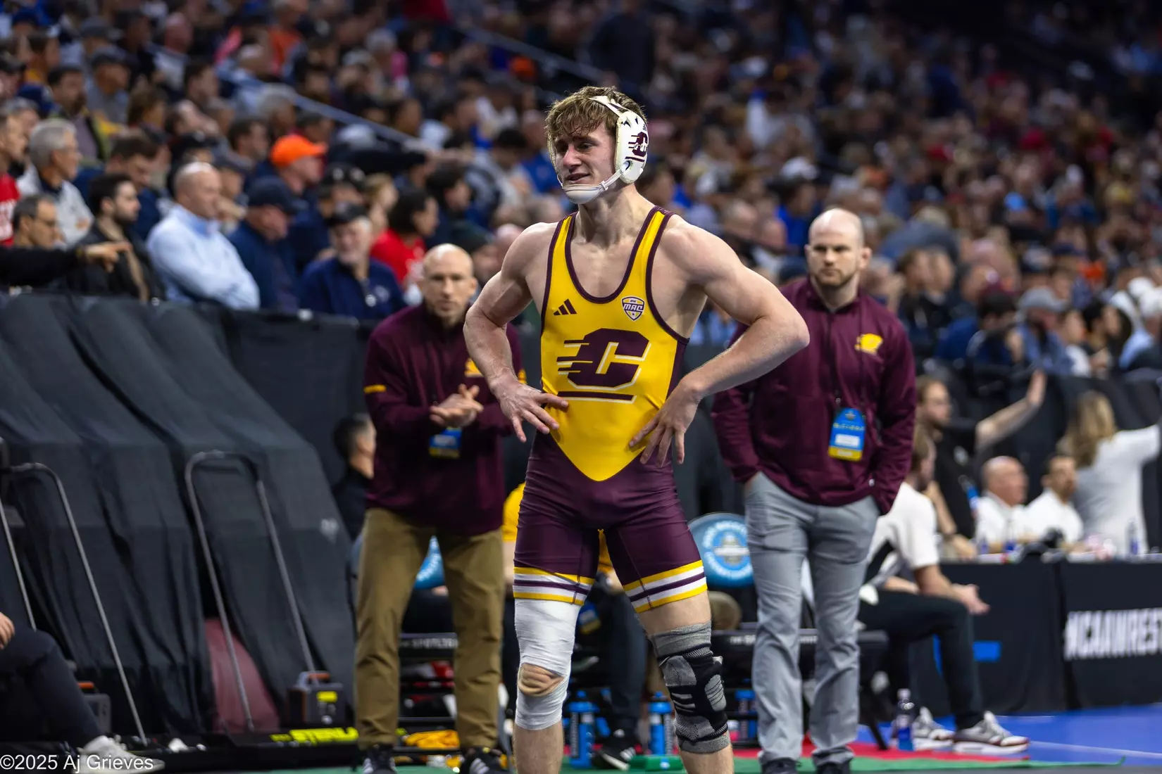 PHILADELPHIA – Two Central Michigan wrestlers are alive in the championship bracket and three others are in the consolation bracket after Session 1 at the NCAA Championships on Thursday afternoon at the Wells Fargo Center.
