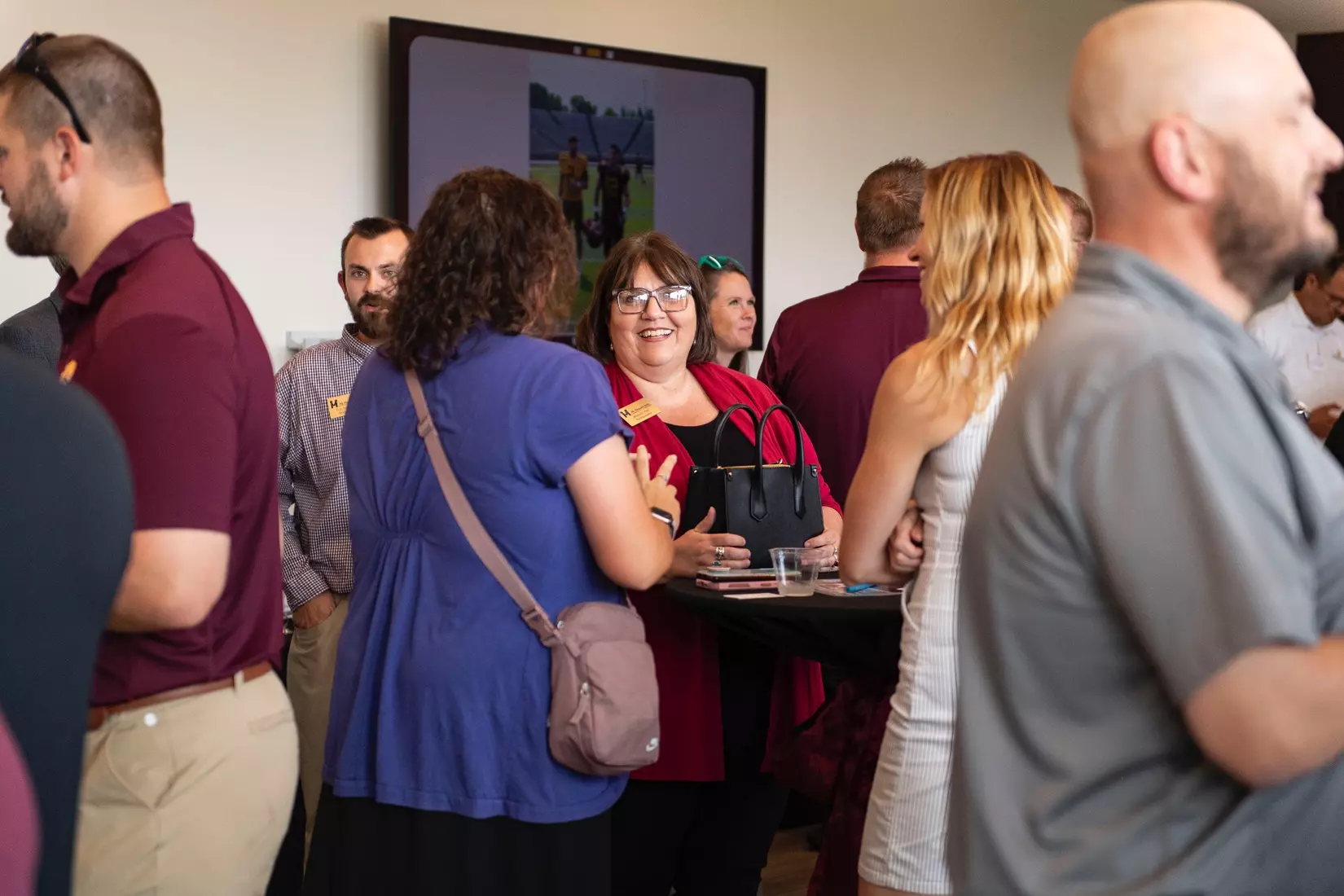 MOUNT PLEASANT, Mich.—Central Michigan Athletics held its annual Mount Pleasant Chamber Meet the Coaches event Tuesday evening in the Chippewa Champions Center VIP Lounge. Hosted by Central Michigan Athletics, the Chippewa Athletics Fund, and the Mount Pleasant Chamber of Commerce, the event provided those in attendance an opportunity to meet and greet members of the CMU Athletics administration and coaching staff.