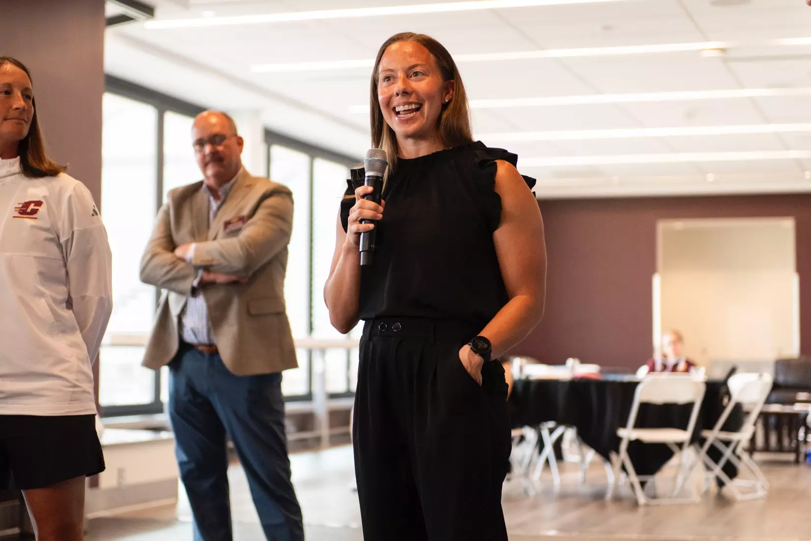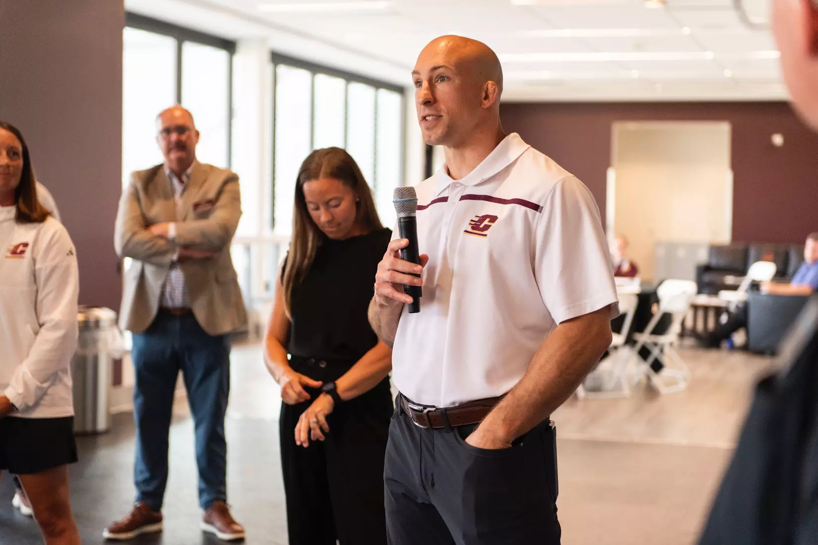 Other CMU coaches who spoke to the crowd included softball coach McCall Salmon, cross country/track & field coach Jenny Swieton, gymnastics assistant Katie Ordway, and wrestling coach Ben Bennett.