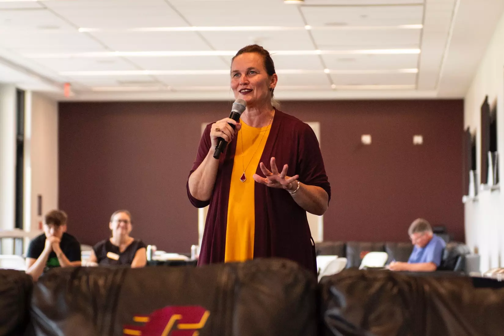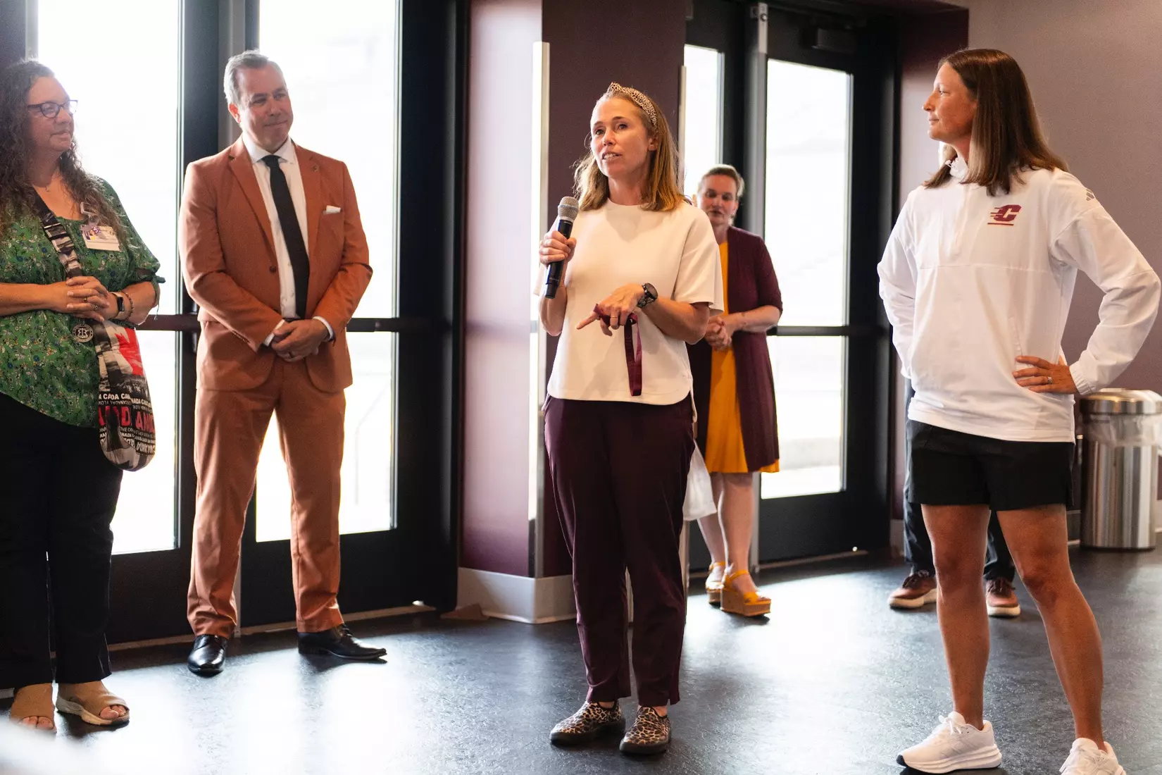 Zyzelewski Family Vice President/Director of Athletics Amy Folan spoke about the importance of the community's support for CMU Athletics.