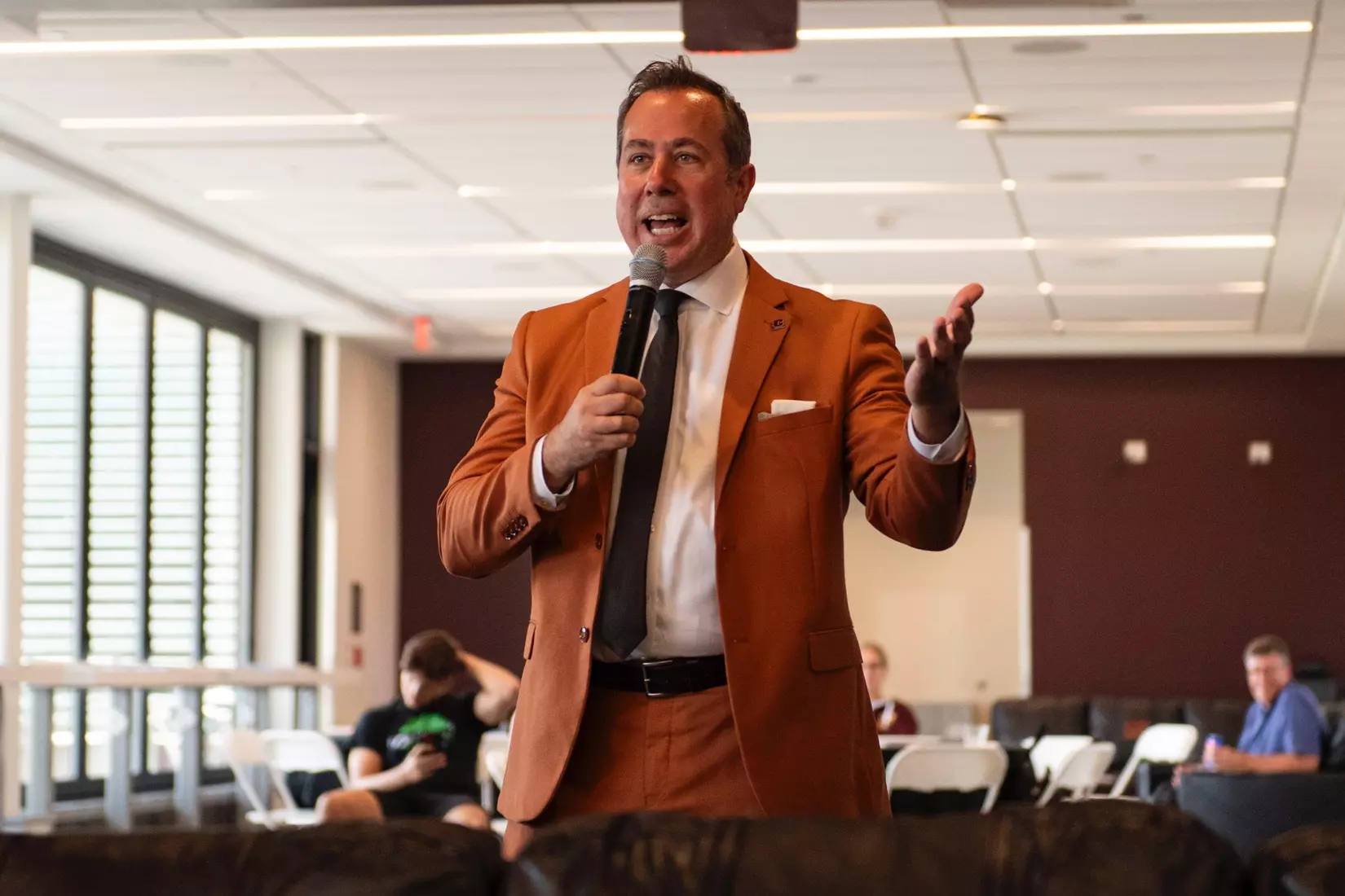 Central Michigan head football coach Matt Drinkall then spoke to the audience.