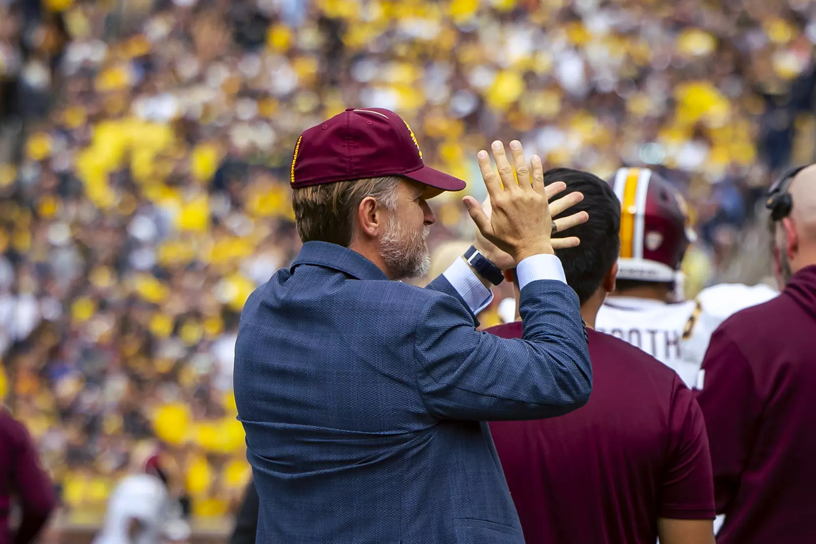 "Obviously our goal is to become a very, very good program and for the last two weeks, for us to see really good programs in the flesh – that are well coached, talented, good tradition – it's a smelling salt for our guys. It's 'They're giving you a blueprint for what we need to fix' to be able to compete at that level."