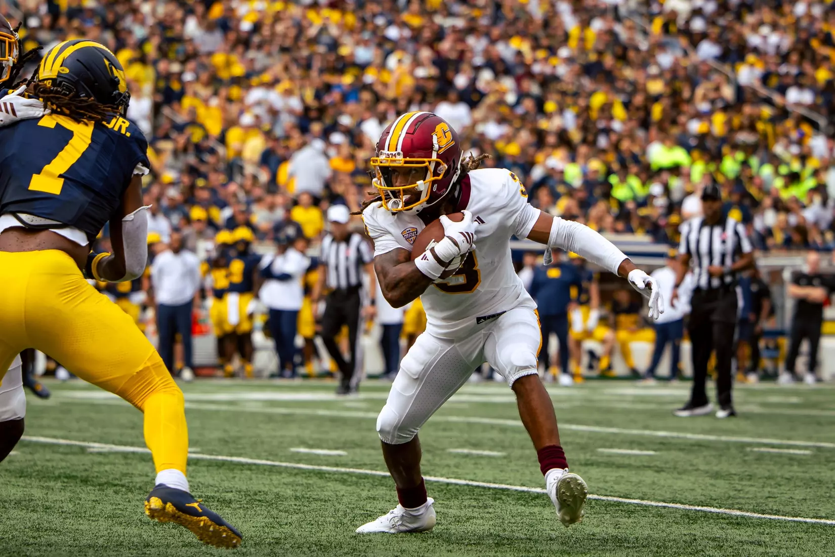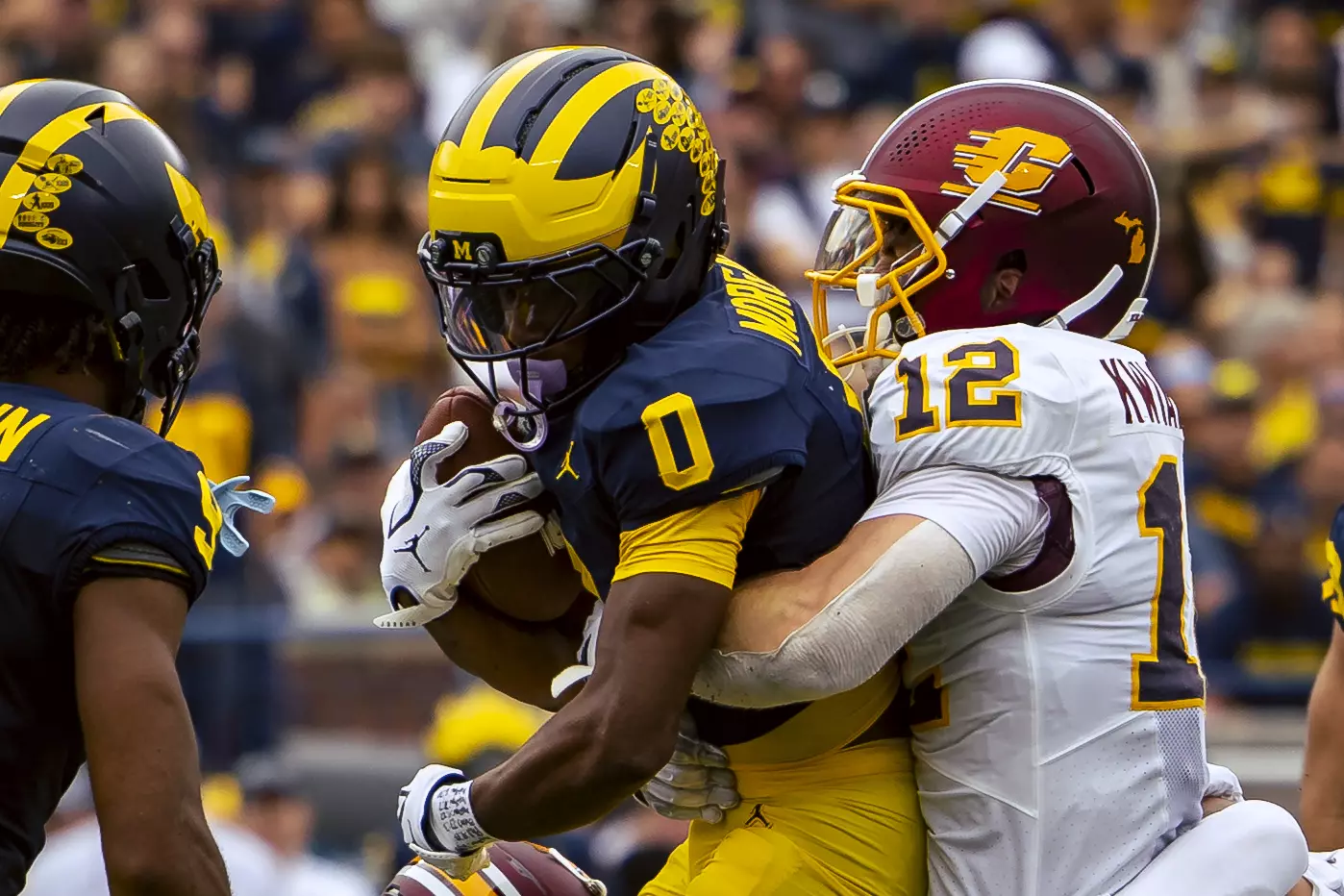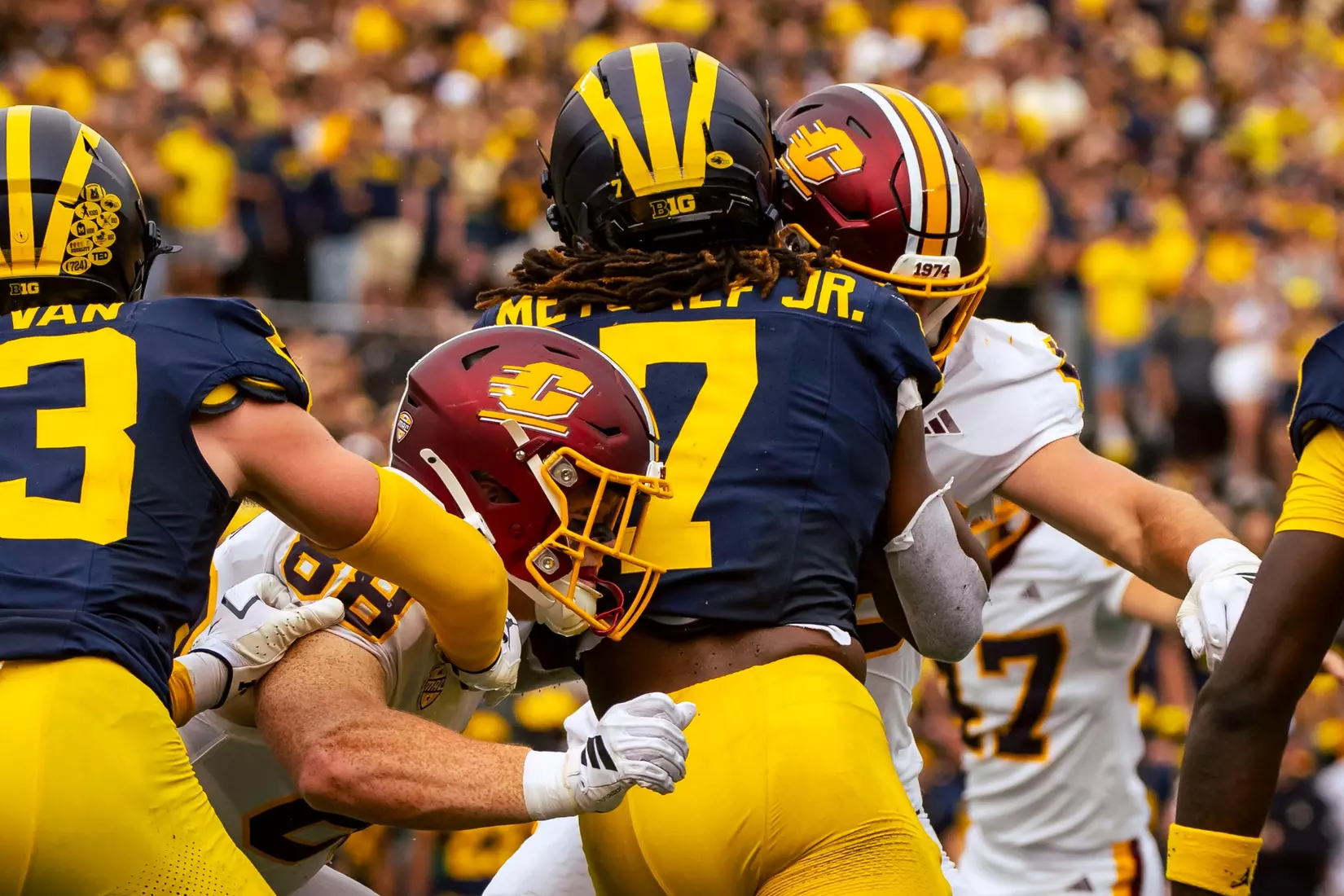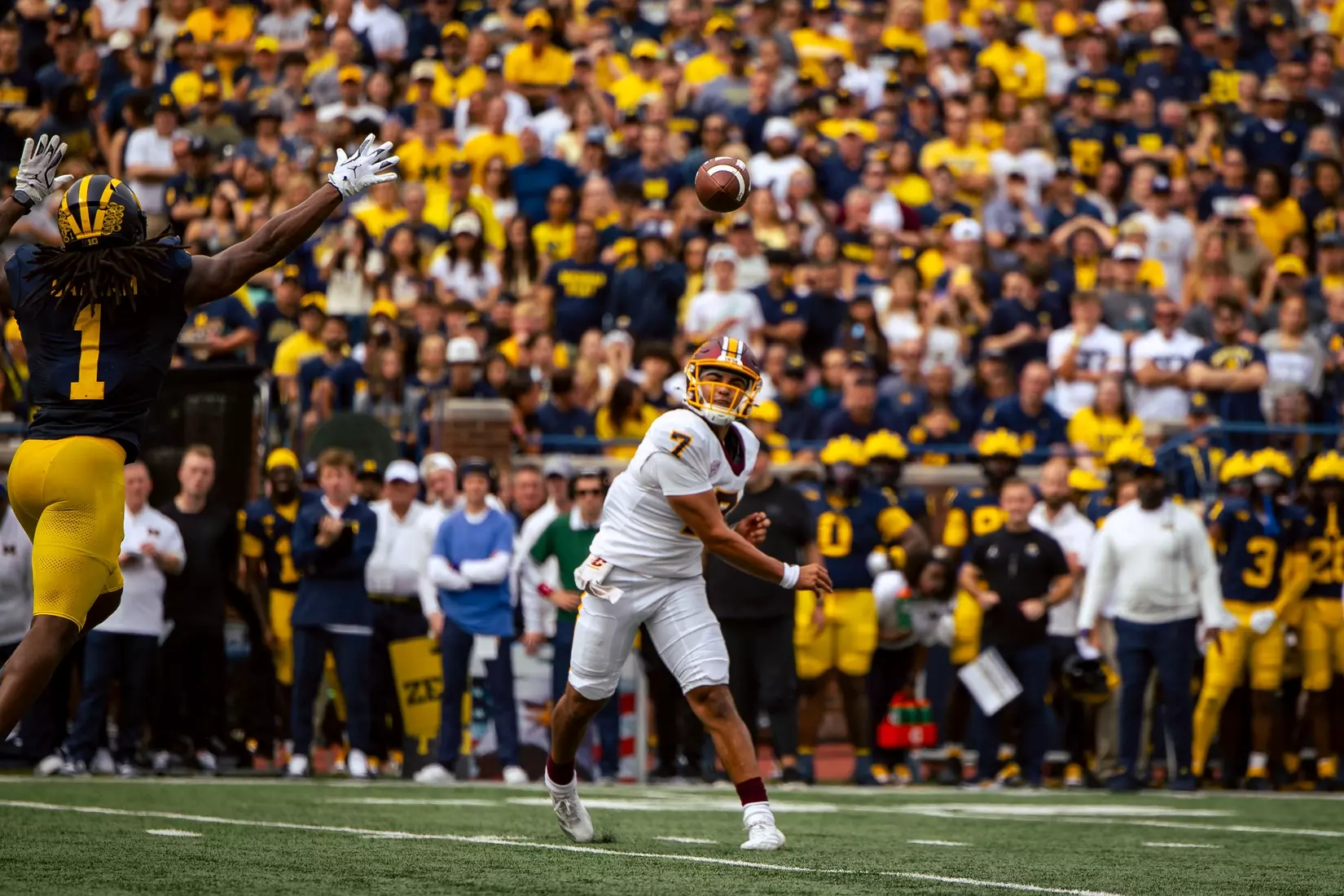 The No. 22-ranked Wolverines rolled up 616 yards of total offense on Saturday in handing Central Michigan a 63-3 nonconference loss before 110,740 at Michigan Stadium.