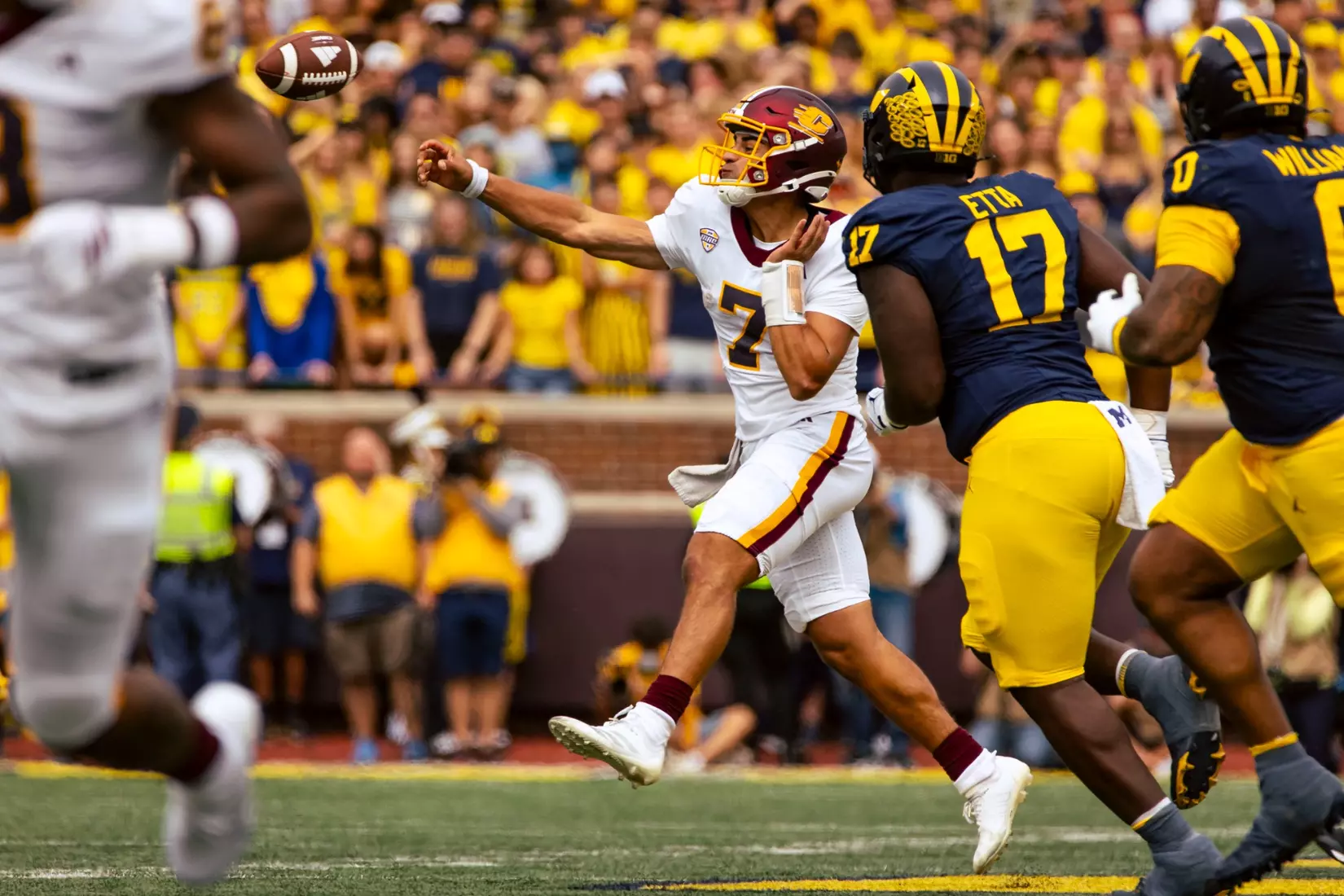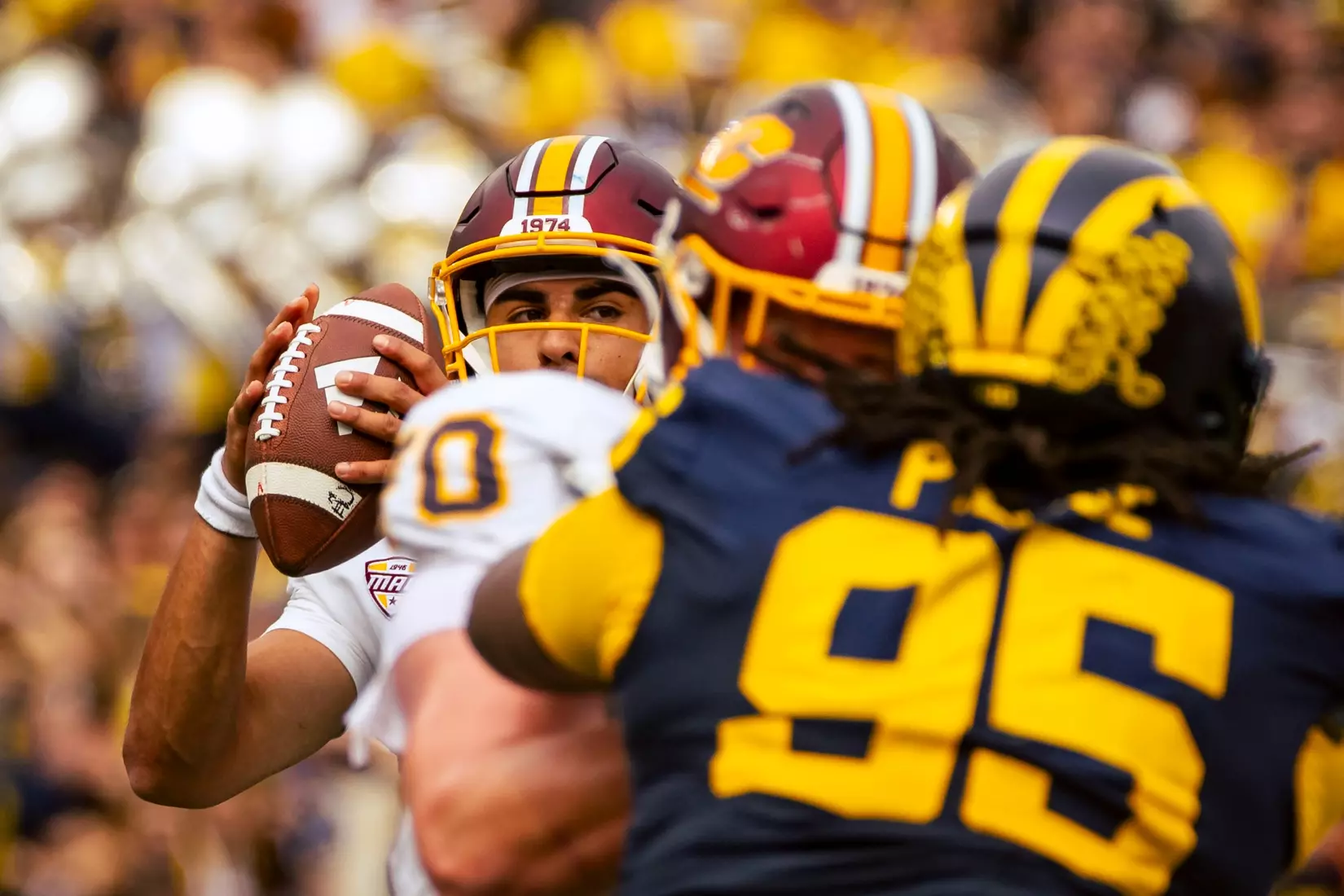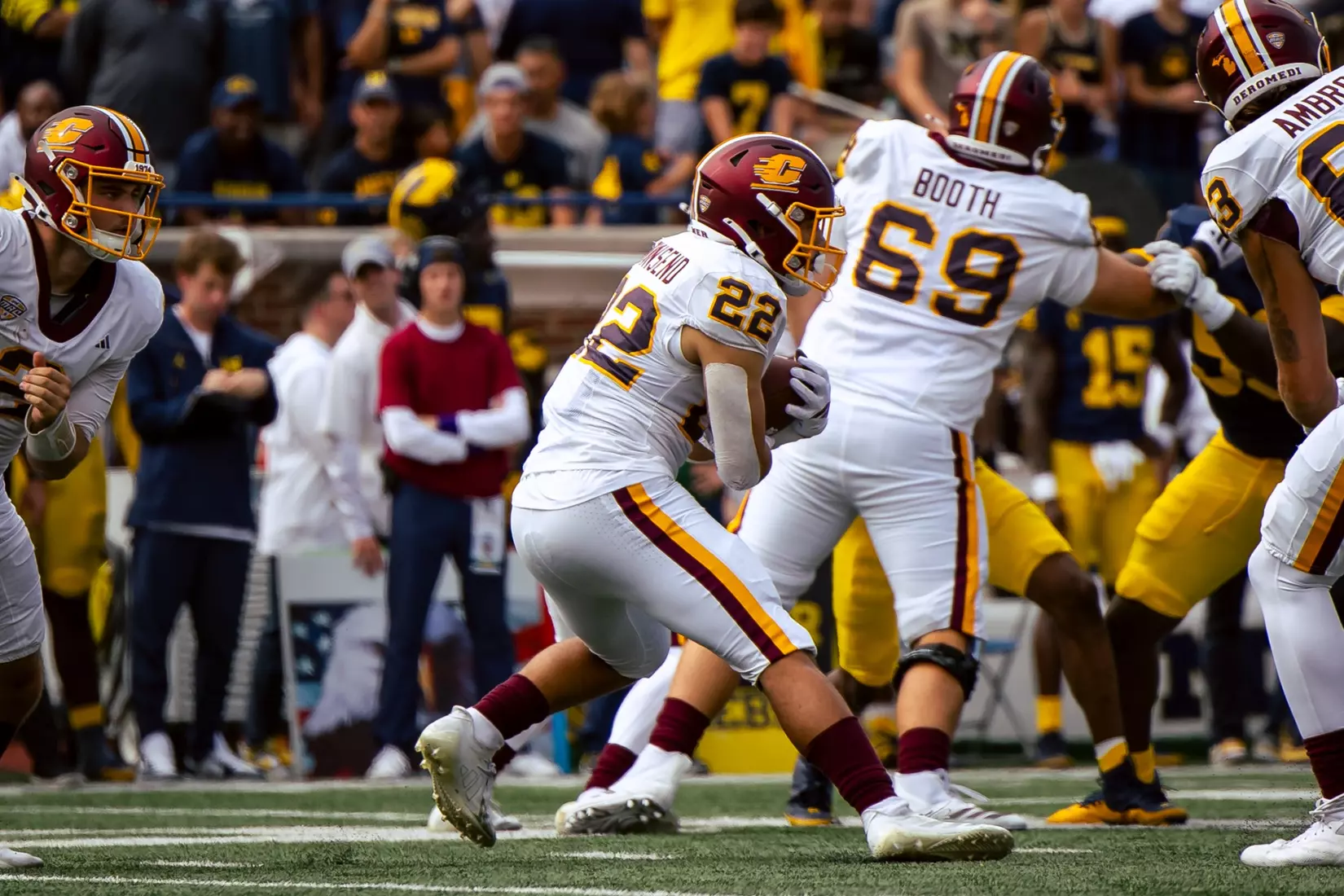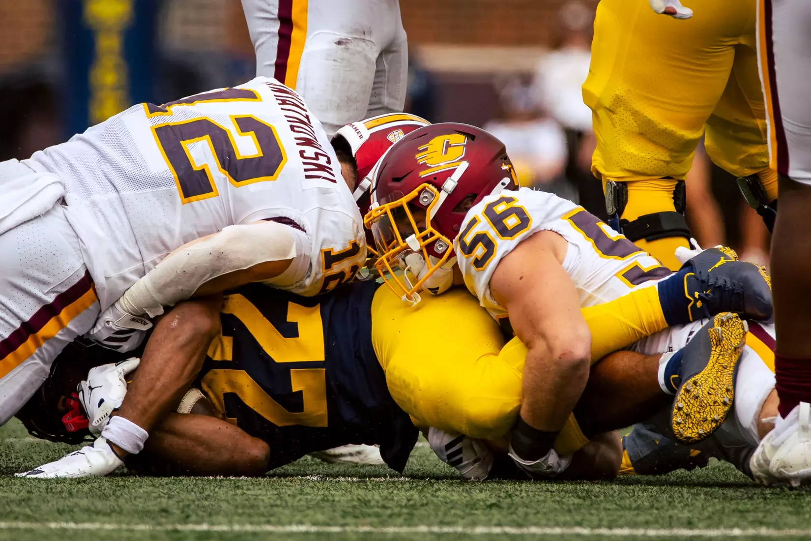 The No. 22-ranked Wolverines rolled up 616 yards of total offense on Saturday in handing Central Michigan a 63-3 nonconference loss before 110,740 at Michigan Stadium.